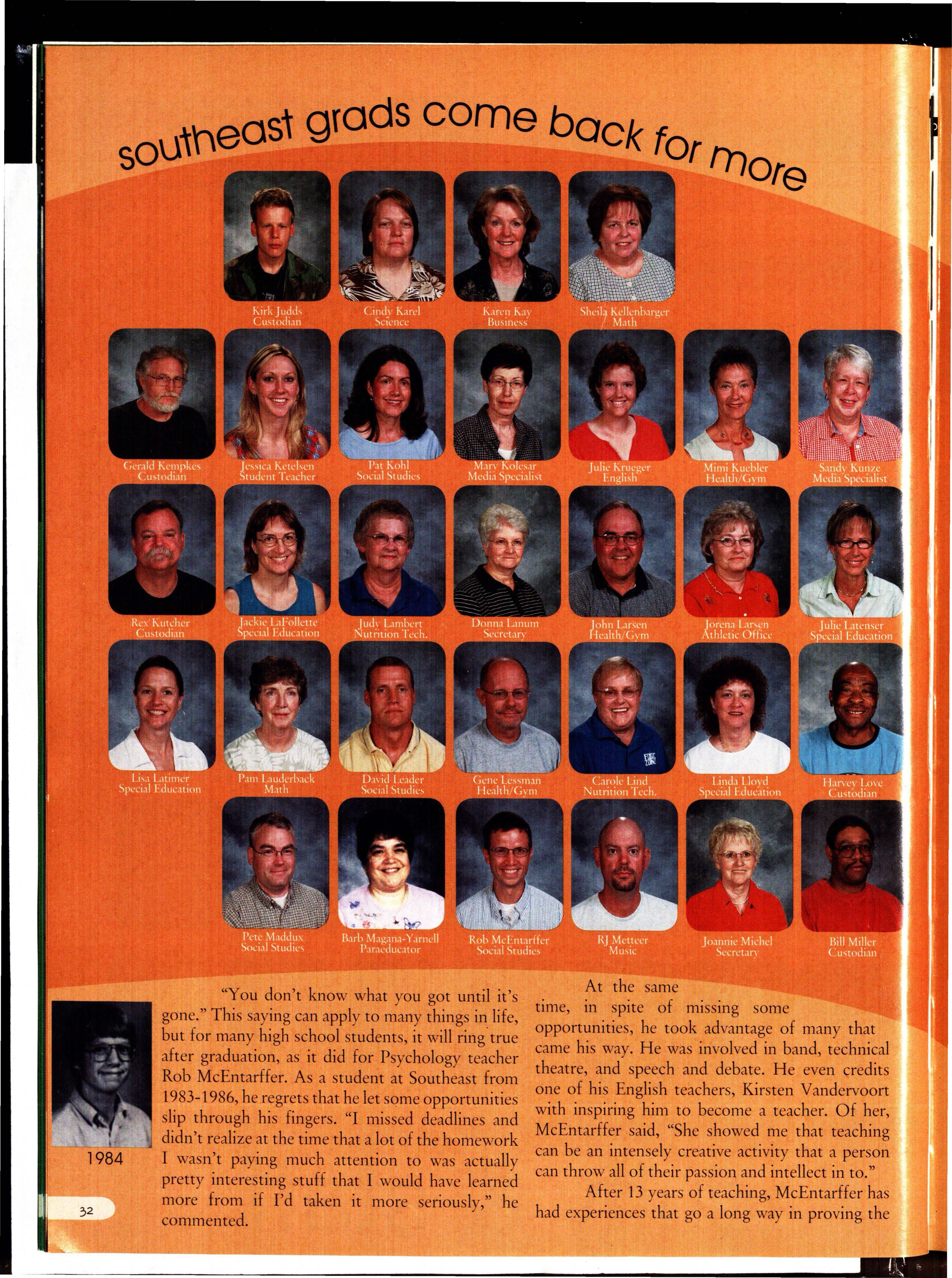 "You don't know what you got until it's gone." This saying can apply to man1 th_ing~ in_life, but for many high school students, It will nng true after graduation, as it did for Psychology teacher Rob McEntarffer. As a student at Southeast from 1983-1986, he regrets that he let sqme opportunities slip through his fingers. "I missed deadlines and didn't realize at the time that a lot of the homework I wasn't paying much attention to was actually pretty interesting stuff that I would have learned more from if I'd taken it more seriously," he commented.