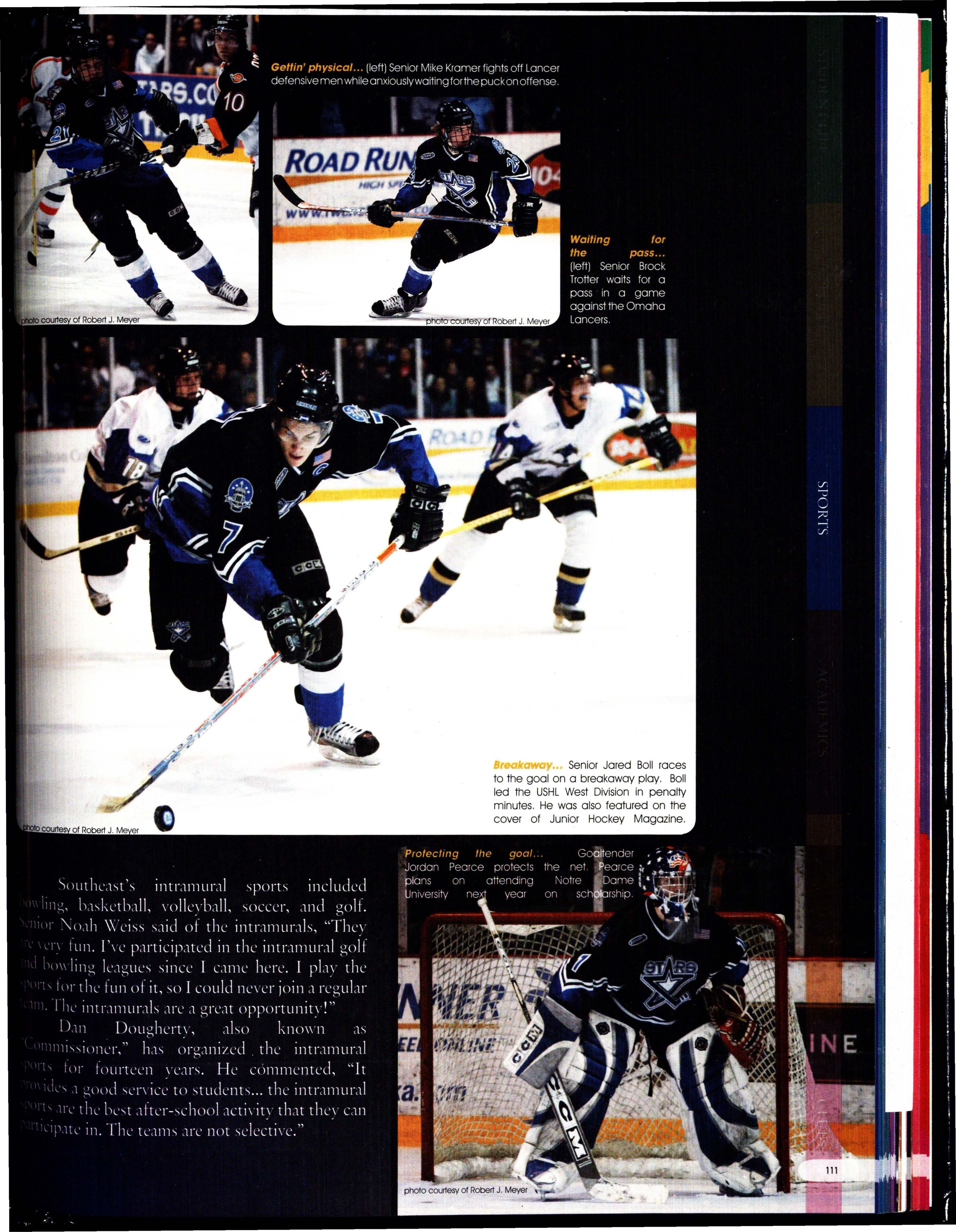 Senior Jared Boll races to the goal on a breakaway play Boll led the USHL West Division in penalty minutes He was also featured on the cover of Junior Hockey Magazine