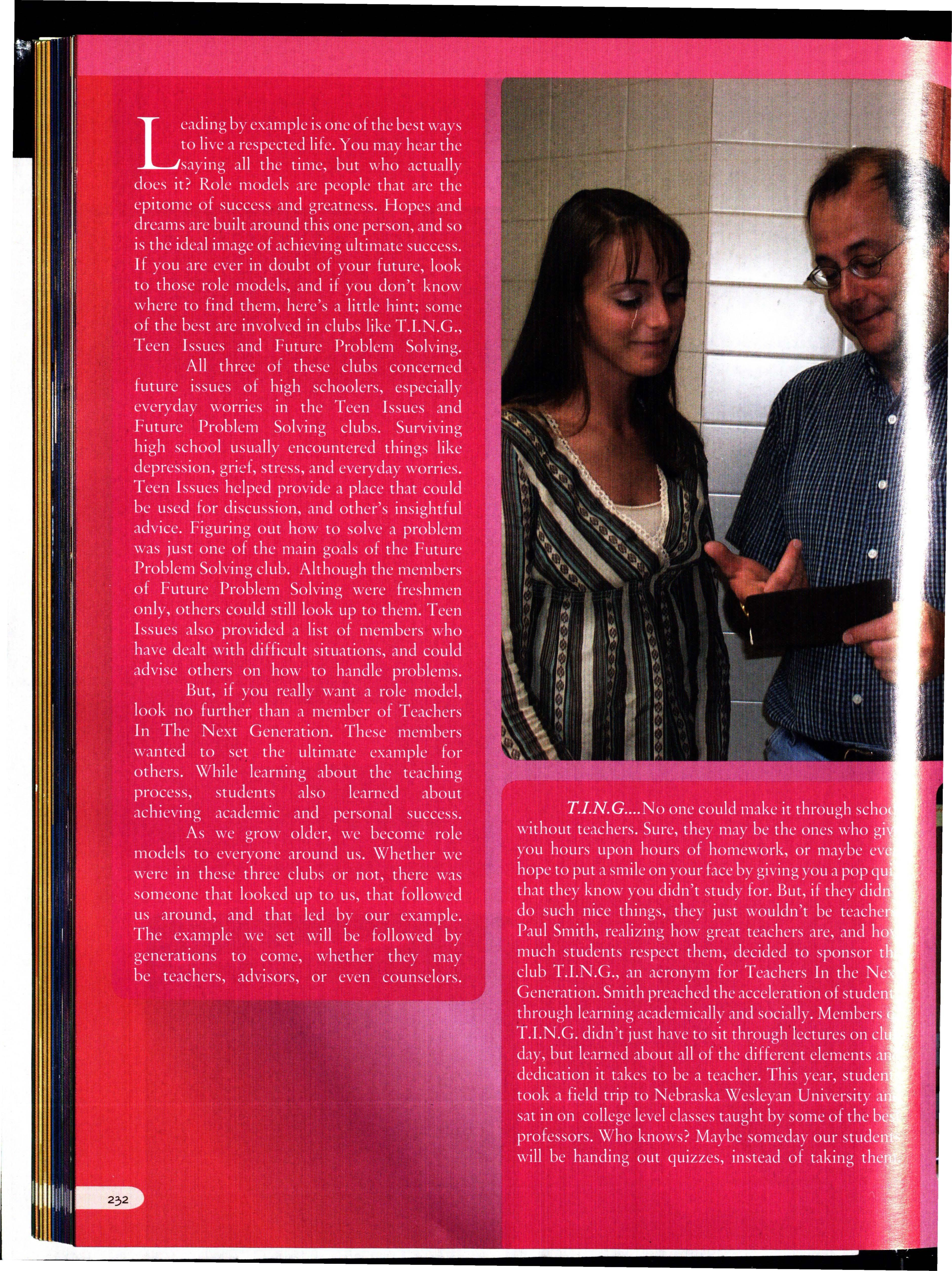 At the same time, in spite of missing some opportunities, he took advantage of many th~t came his way. He was involved in band, technical theatre, and speech and debate He even credits one of his English teachers, Kirsten Vandervoort with inspiring him to become a teacher. Of ~er, McEntarffer said, "She showed me that teachmg can be an intensely creative activity that a person can throw all of their passion and intellect in to."
