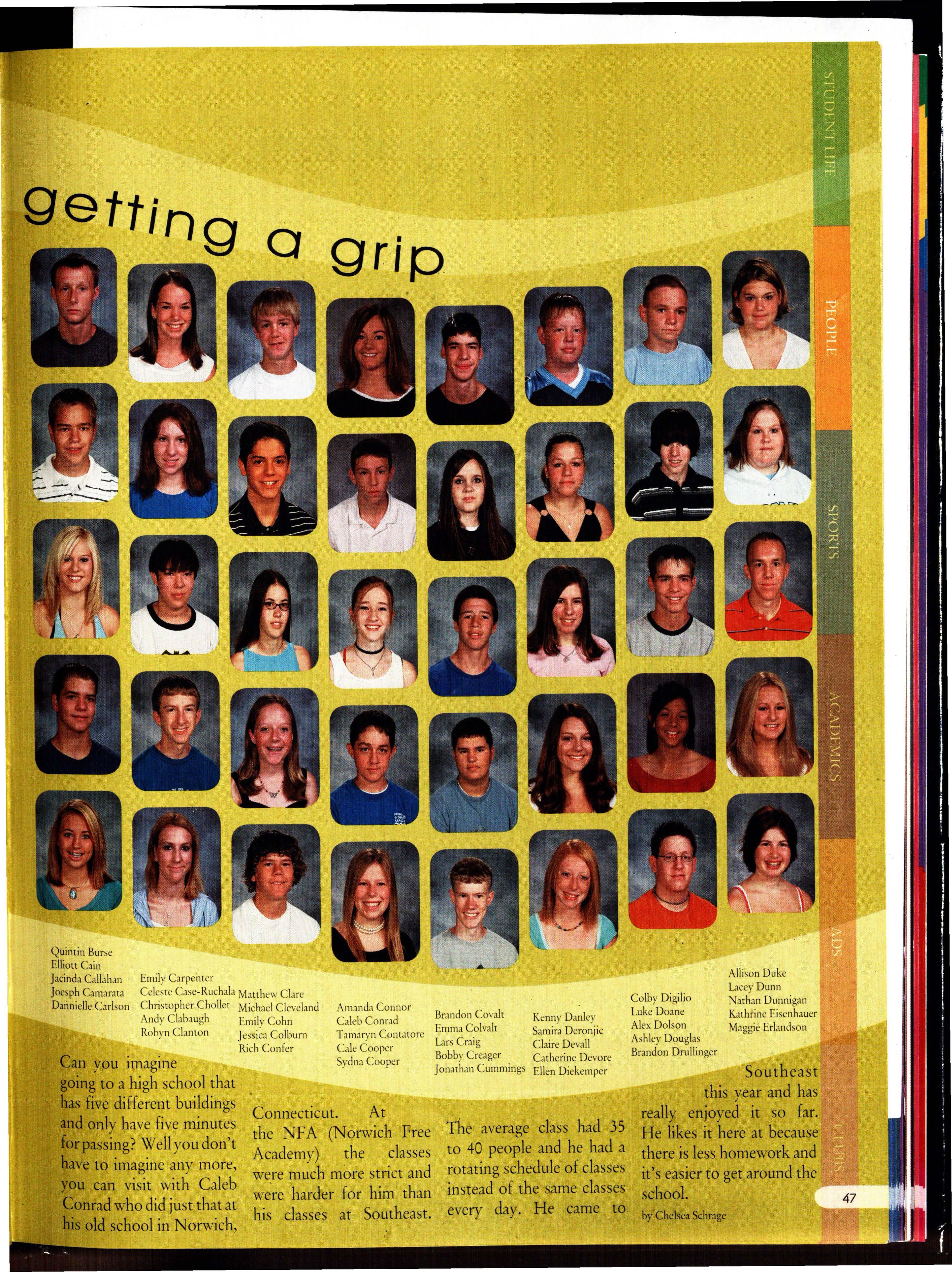 Every day, hundred s of individuals enter Southeast, each one different in their opinions and appearance, contributing to the school in their own way . Freshman Jared Jobes said, "Being a freshman is the time when we can really adjust ourselves to being in high school."