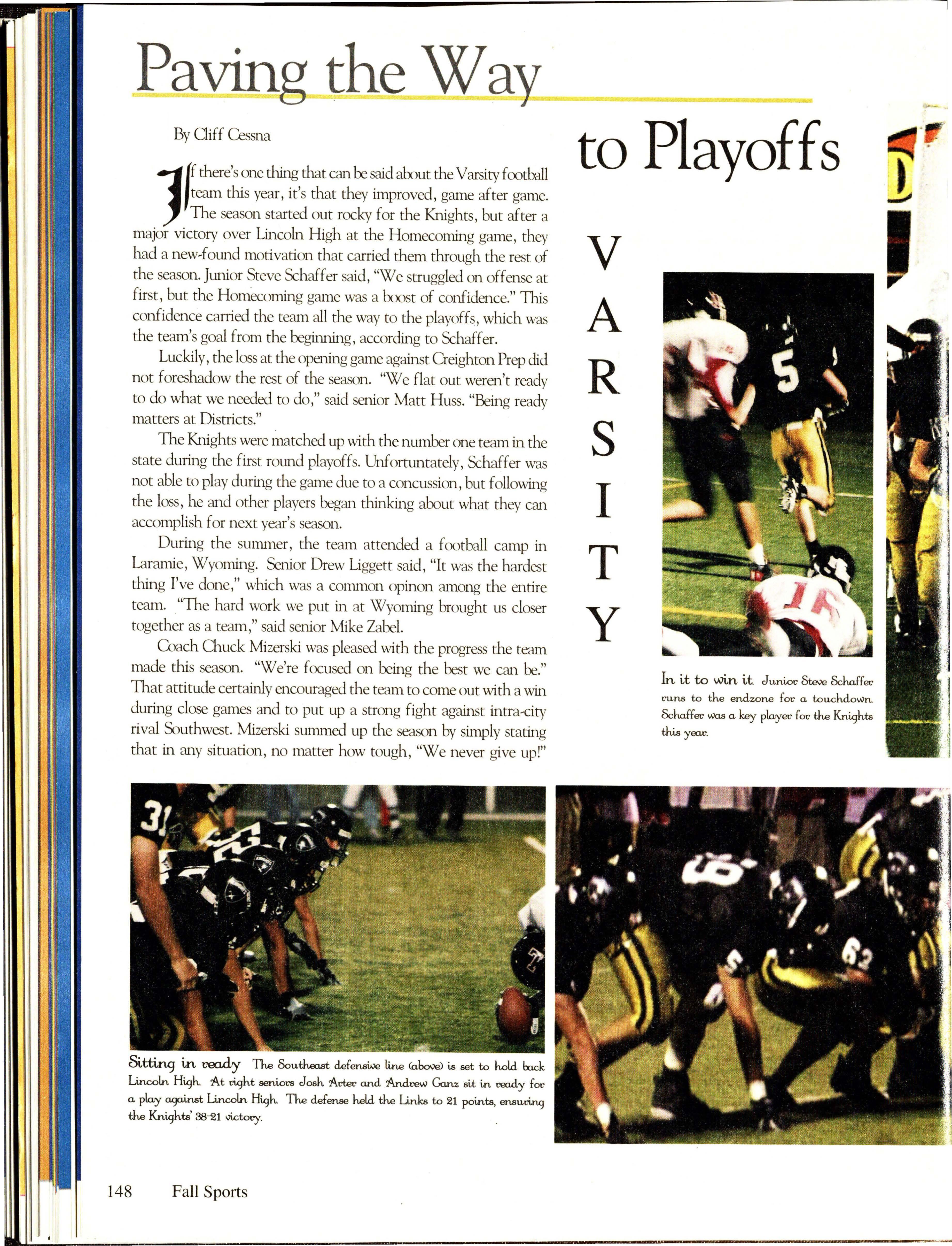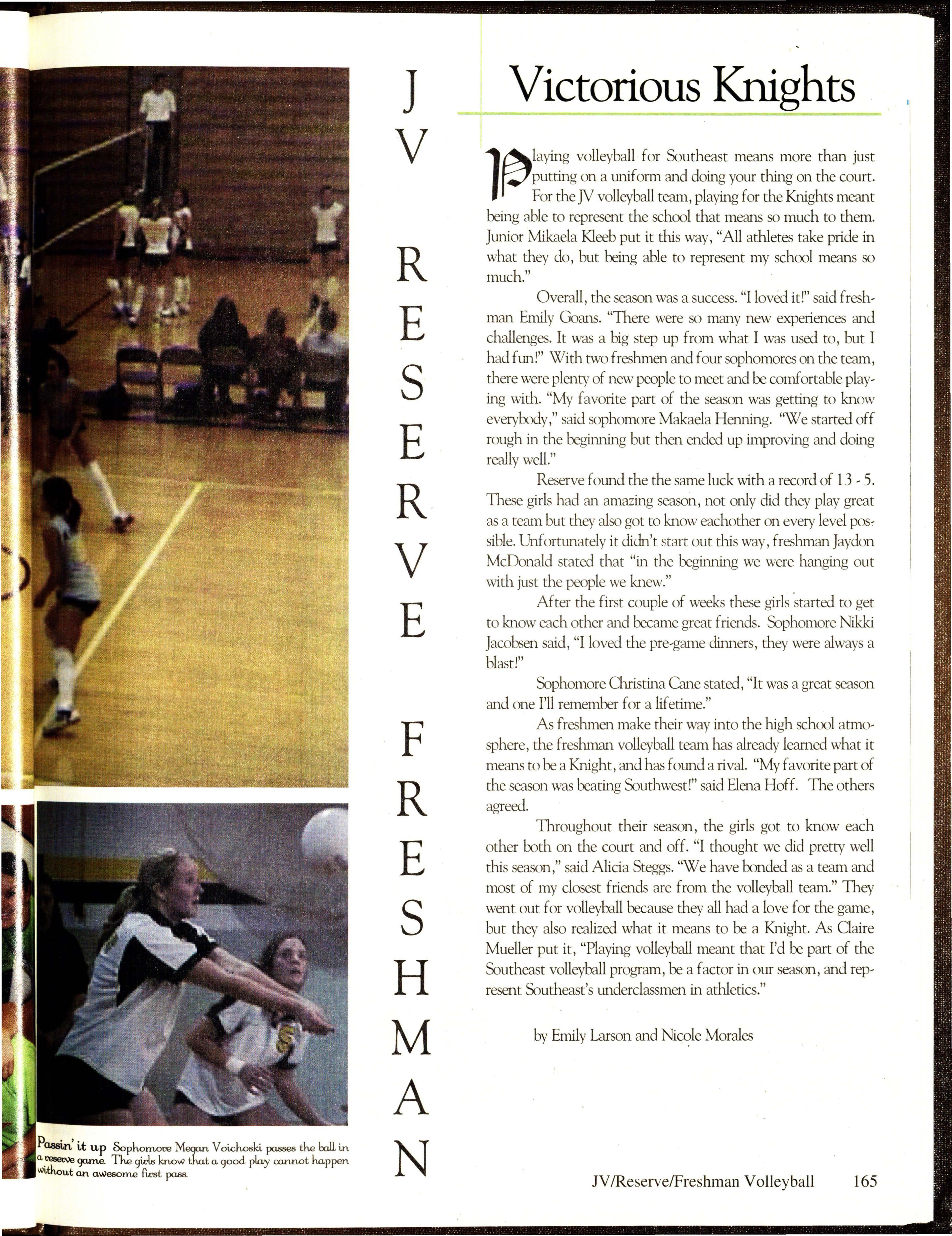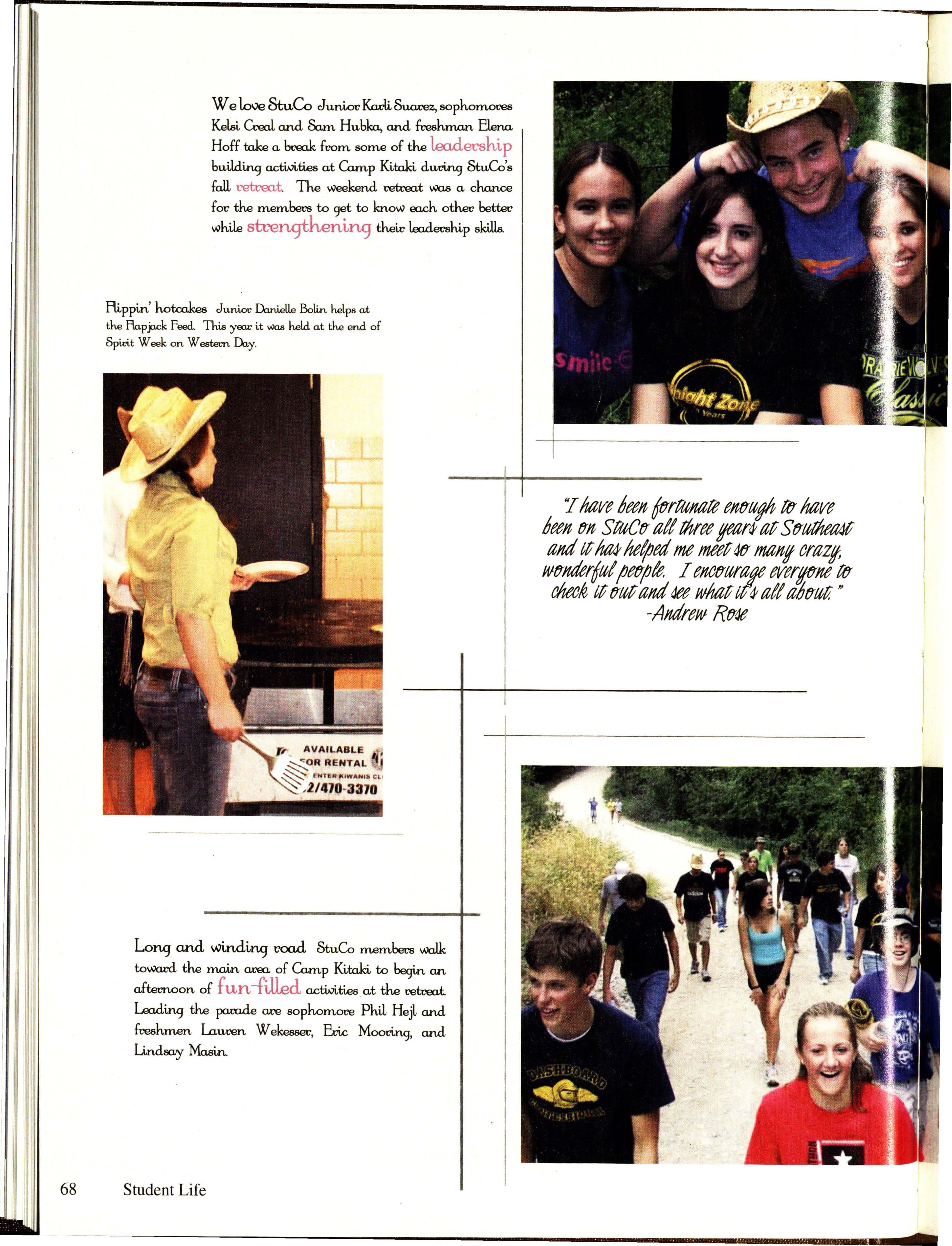 e halls have spoken to us loudly and clearly of what it means to be a Knight, sharing the moments most memorable of the past year. As students at Southeast we can be proud of the memories we take with us and the legends we leave behind. The friendships we have formed within the walls of our school and the knowledge we have gained while we are high school students, though unique to each separate character of the overall tale, is something not to be forgotten. But Southeast's story is not yet finished, it is waiting to be continued by the future generations of Knights. All those who come after us are anxious to continue the tradition of excellence and create their own installments . Our story has always been one focused around years of tradition, decades of excellence, and dedication to service. This year has been no different.