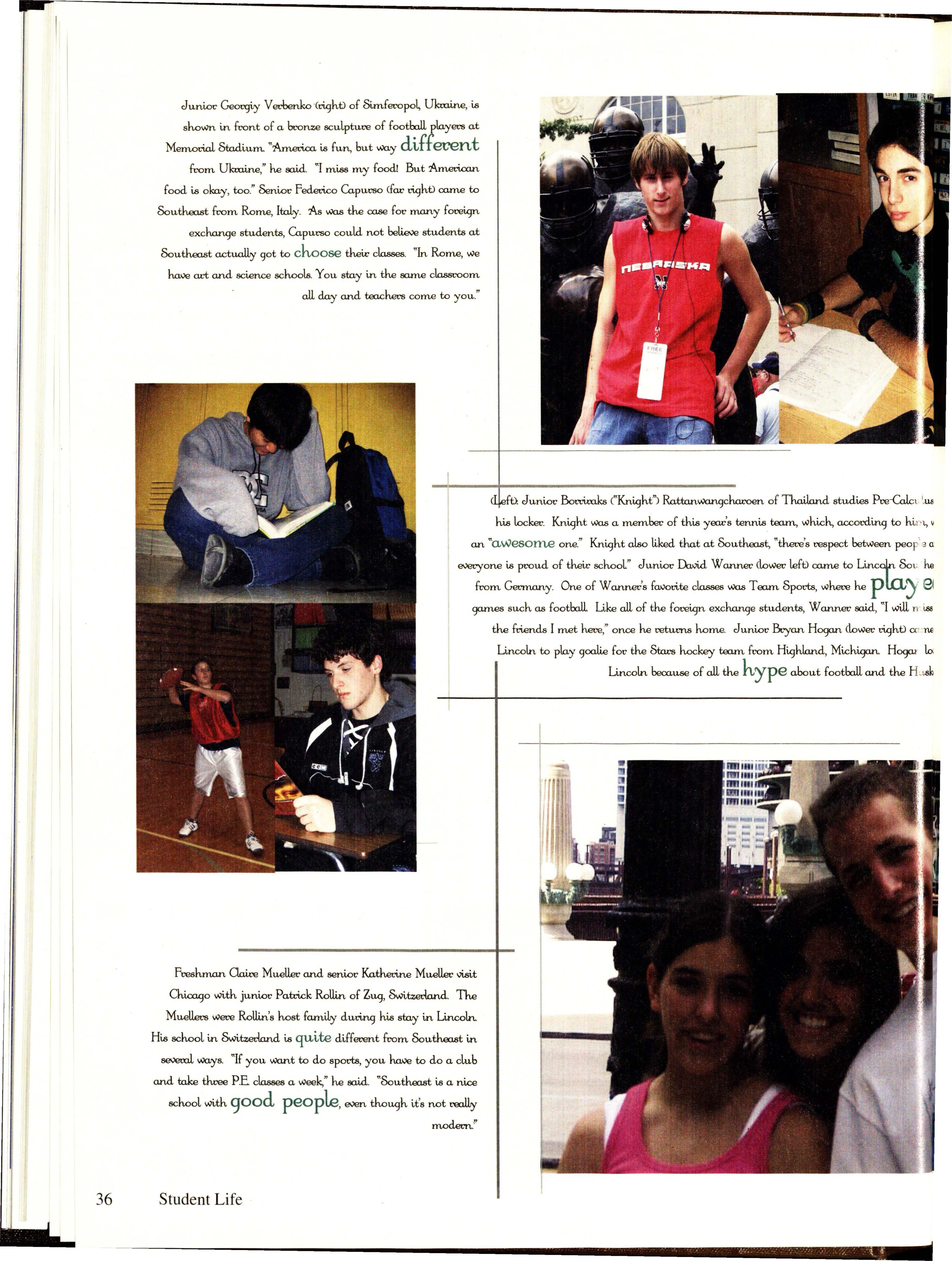 What you do not expect is the realization that comes over abroad? Is graduation really only two months away? winter break. On Janu ary 1 of the new year, it hits you like a freight On May Day, tears may start to show in the eyes of some train at full speed. This is the year you graduate; this is the year seniors. They know that in a month some of the people they see your life changes the most ,, going from a life you have known every day in the halls will never be seen again. A best friend will be for thirteen years to something entirely new, whether it is college, moving halfway across the country or halfway around the world as finding a career, or just exploring the world. But as the lyrics in they go their own way. Still others will stay here. Reunions may bring a song by Semisonic go, "Every new beginning comes from some us back to Lincoln, but the thing that will tie us all back together will o ther beginning's end." be the memories :we keep, the ones we made at Lincoln 5:}utheast.