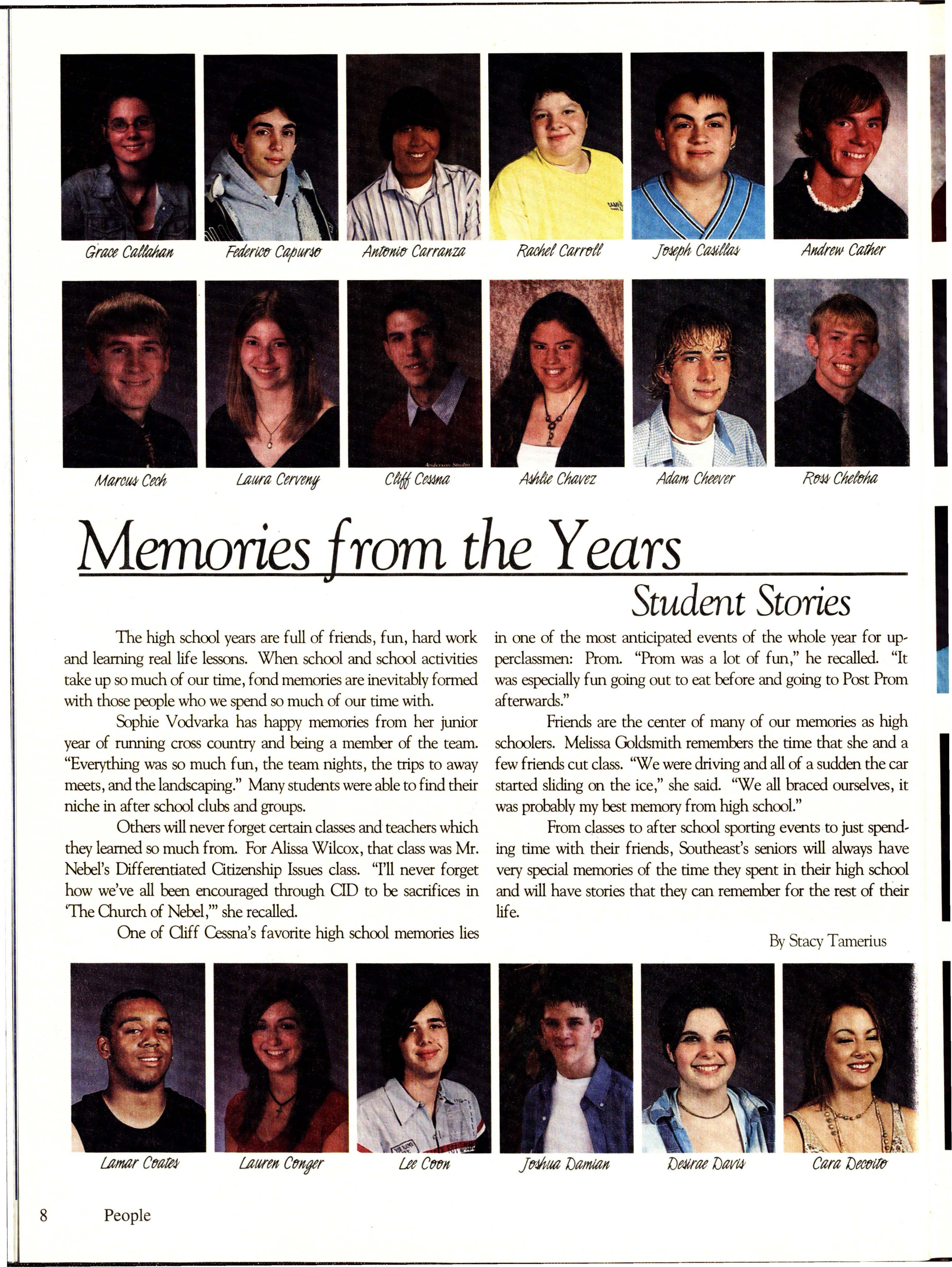 From classes to after school sporting events to just spend, ing time with their friends, Southeast's seniors will always have very special memories of the time they spent in their high school and will have stories that they can remember for the rest of their life.
