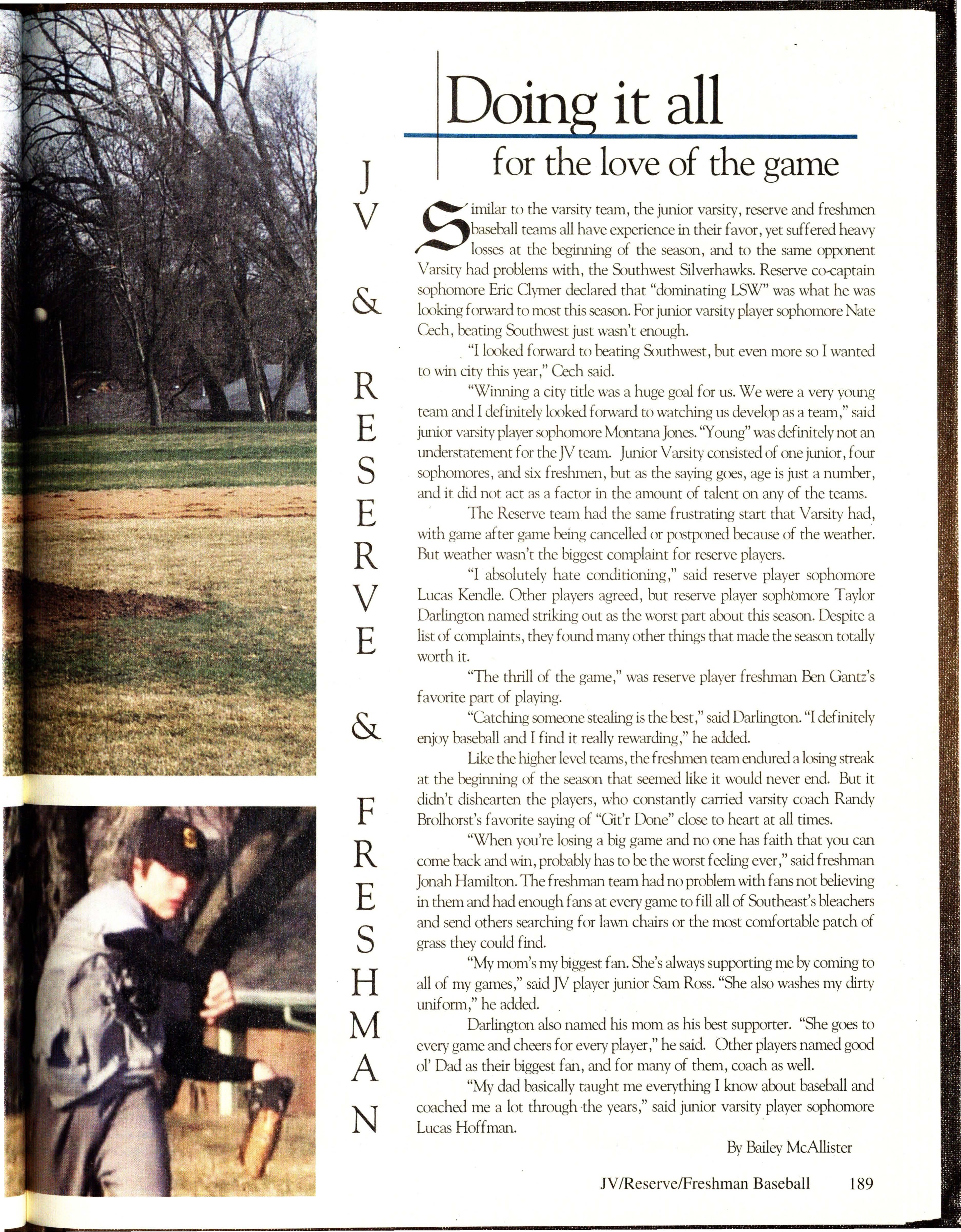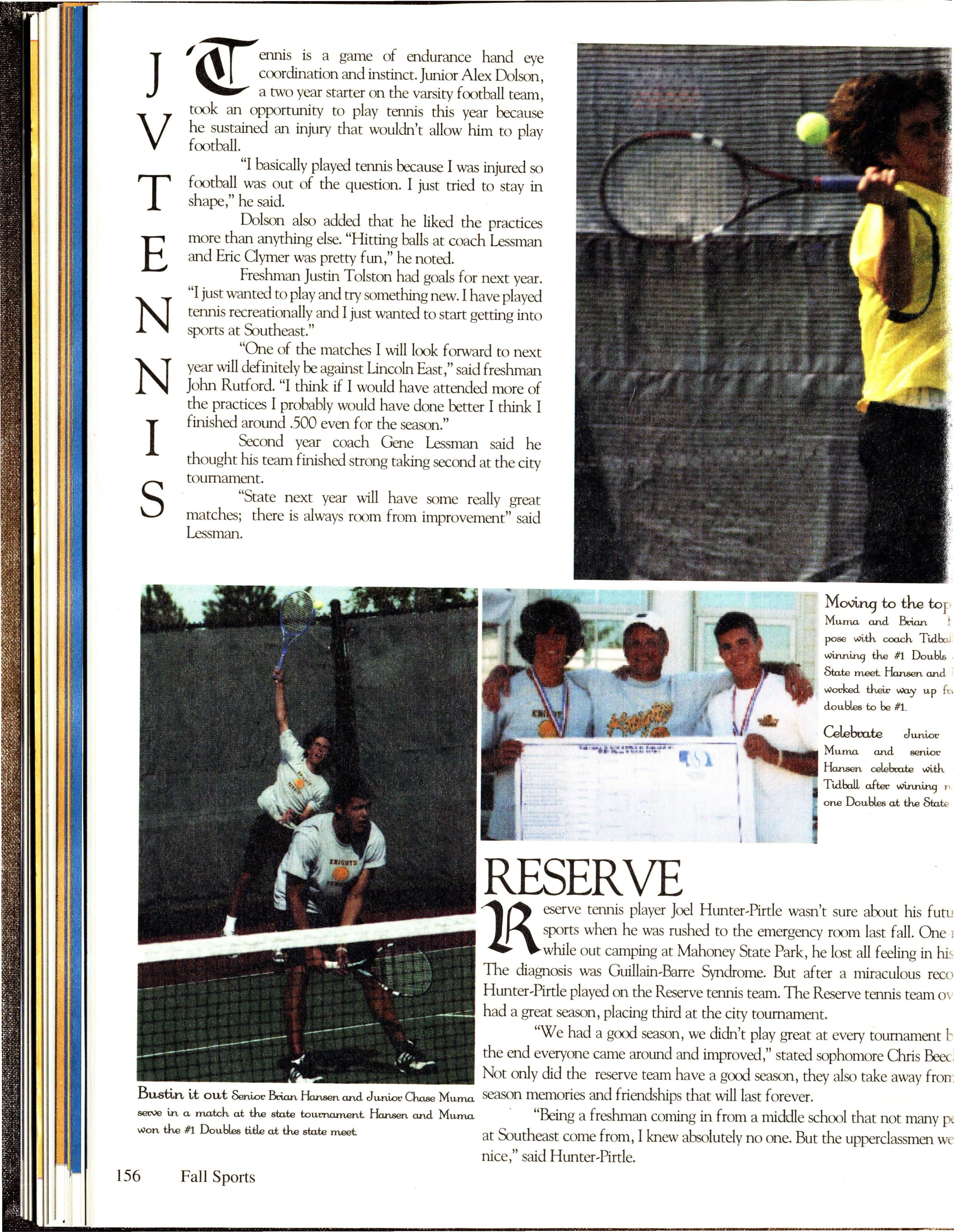 In athletics, Brian Hansen was # 1 Doubles State Champi (m in tennis this year with junior Chase Muma and #2 Doubles Str ce Champion last year along with Class of 200 5 graduate Tim Berg('.f Matt Hill led the way for the boys varsity basketball team ar d signed to play for the University of Texas. Additionally, neaily every sport had a senior qualify for the state tournament.