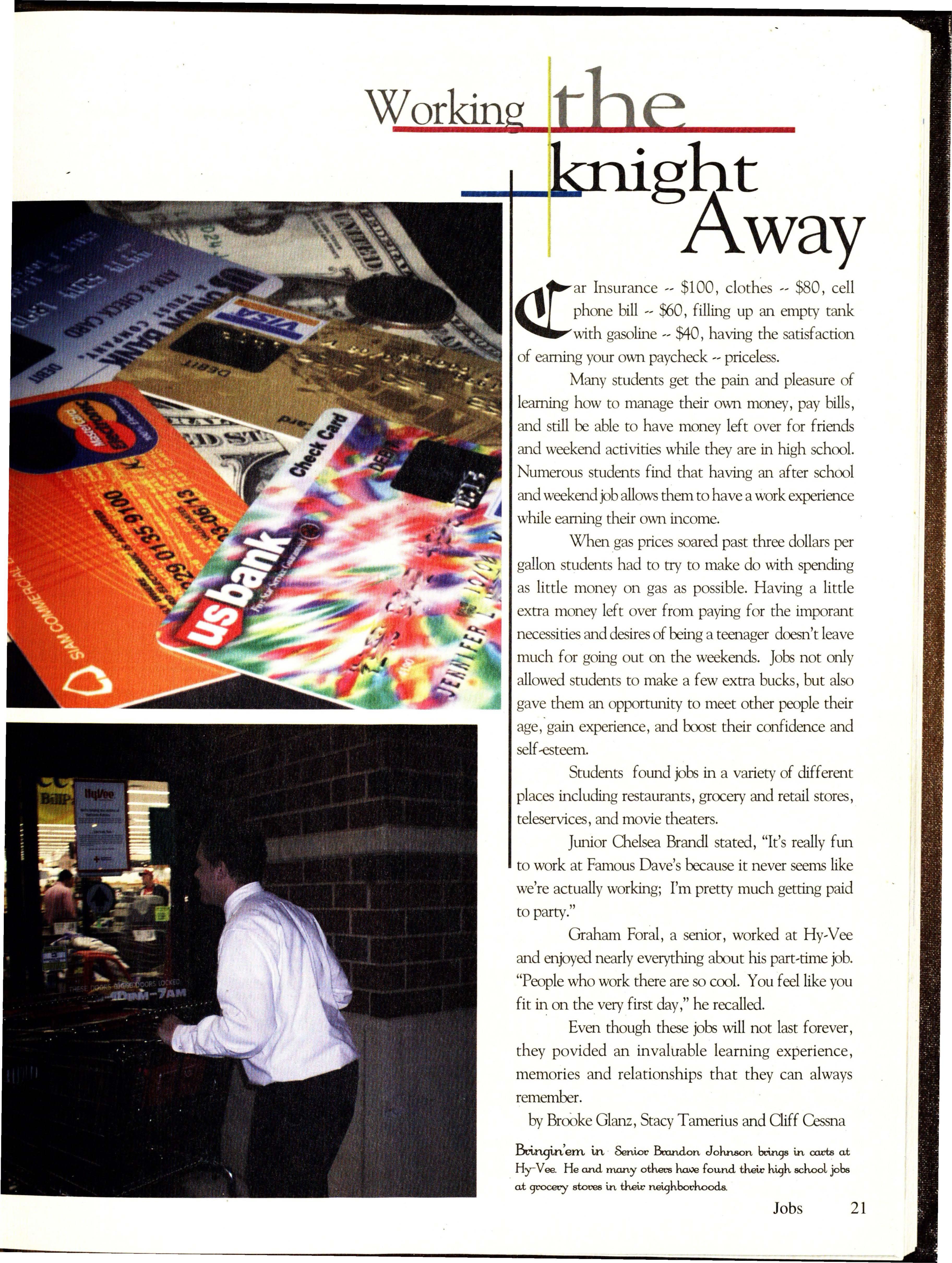 by Brooke Glanz, Stacy Tamerius and Cliff Cessna Bti.ngin'em in Seniot' Bron.don John.son ~s in oo.rl.s a.t Hy-Vee. He a.nd, many othet-s hwe found thew high school jobs a.t 9t'OCet)' stot"eS in thew neighbot'hoods