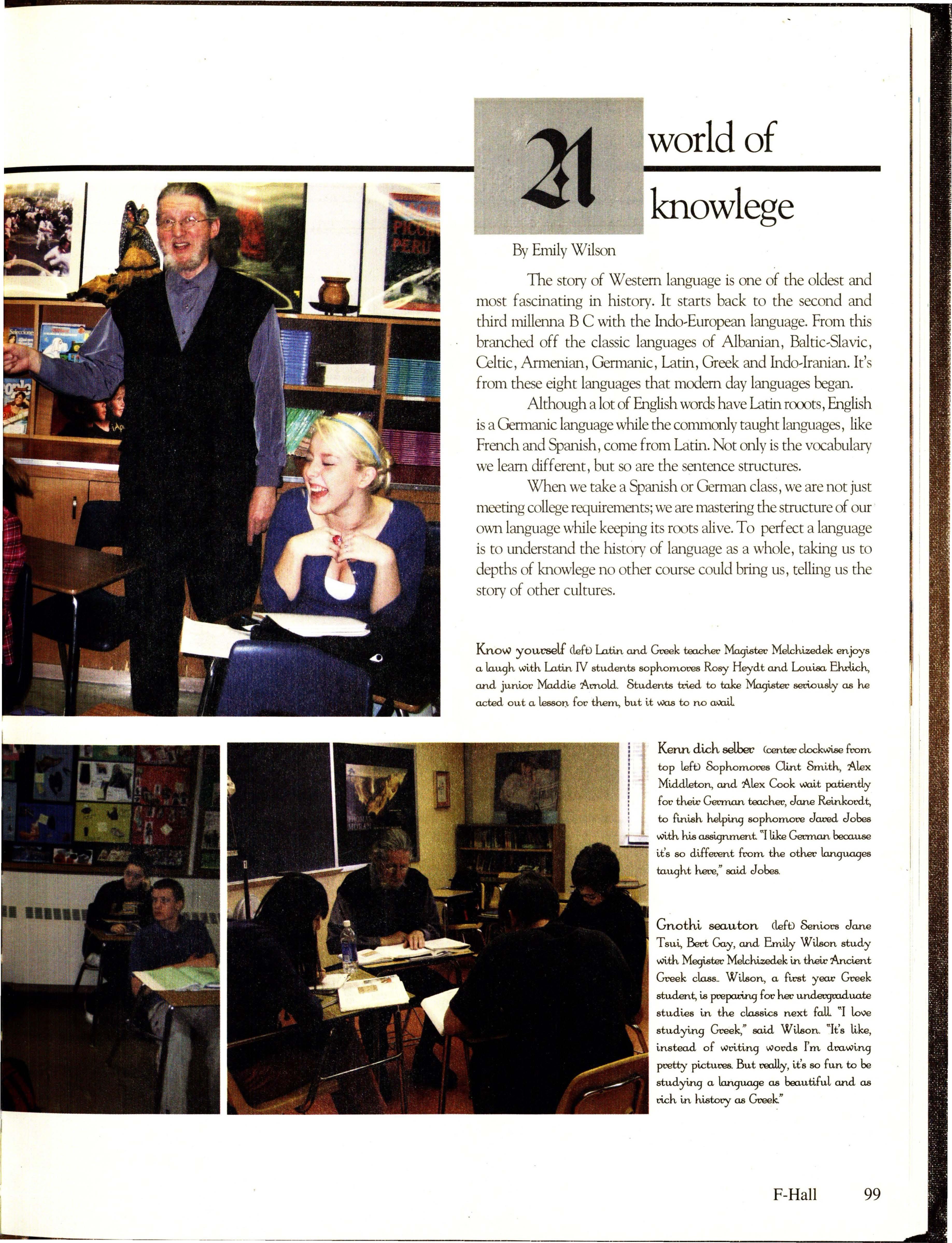 Although we are small, we have much to be proud of, bo :h academically and athletically. Bert Gay, Matt Sheets, and Ame Willborn qualified as National Merit Scholarship Semi,finalLts and seven qualified for the NMS Commended Scholar statl ts: Laura Cerveny, Kirsten Foster, Andrew Ganz, Andrew Ruhrdar , Kaitlin Voelker, Justin Whitney, and Eleanor Wood