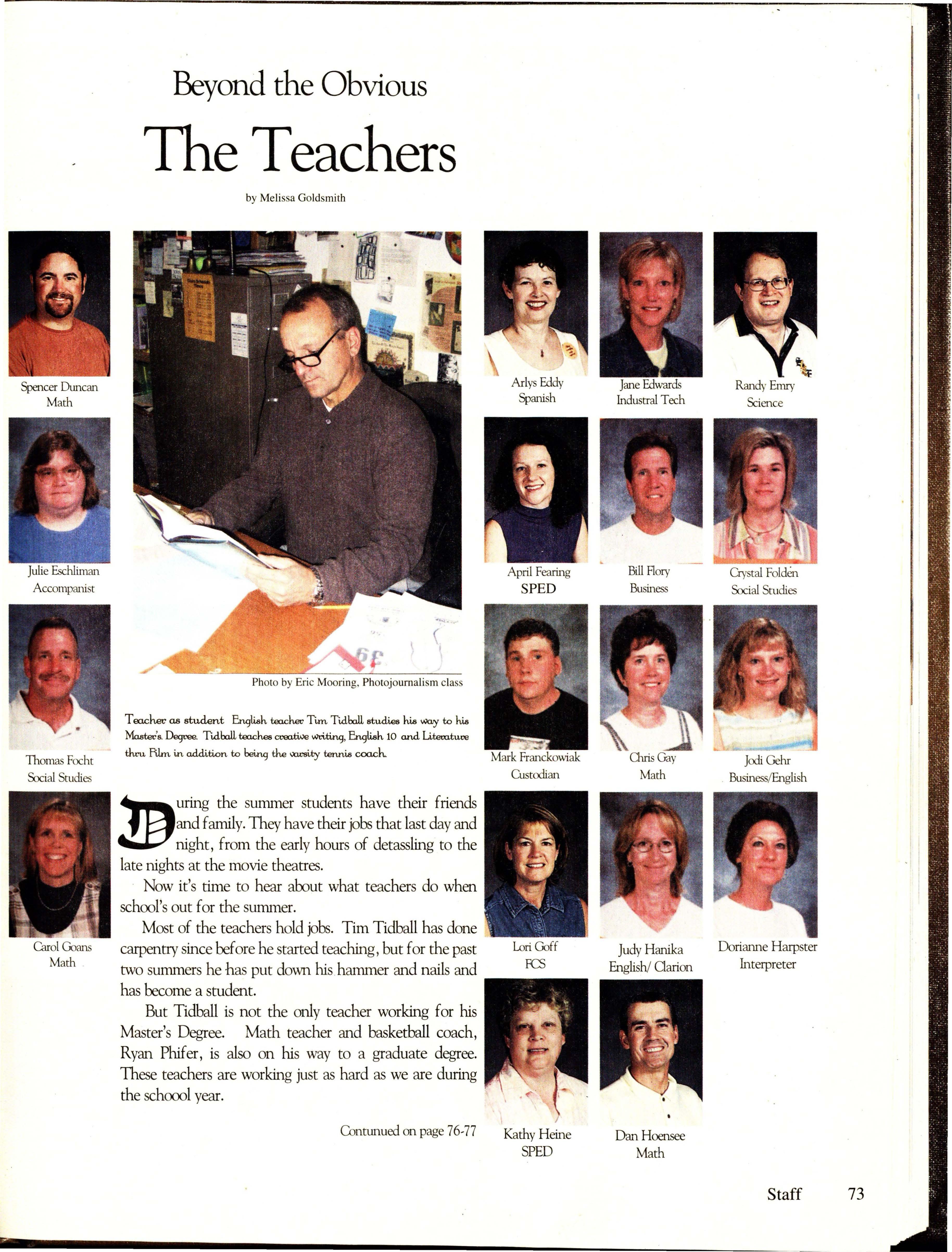 Lastly, the teachers inspired students to be persistent and creative in achieving their goals. Senior Jessica Hebbard commented that, "Some teachers may be a little strange or act a little weird at times, but that is just one of the qualities they use to help us learn and expand our minds, in order to think outside of the box."