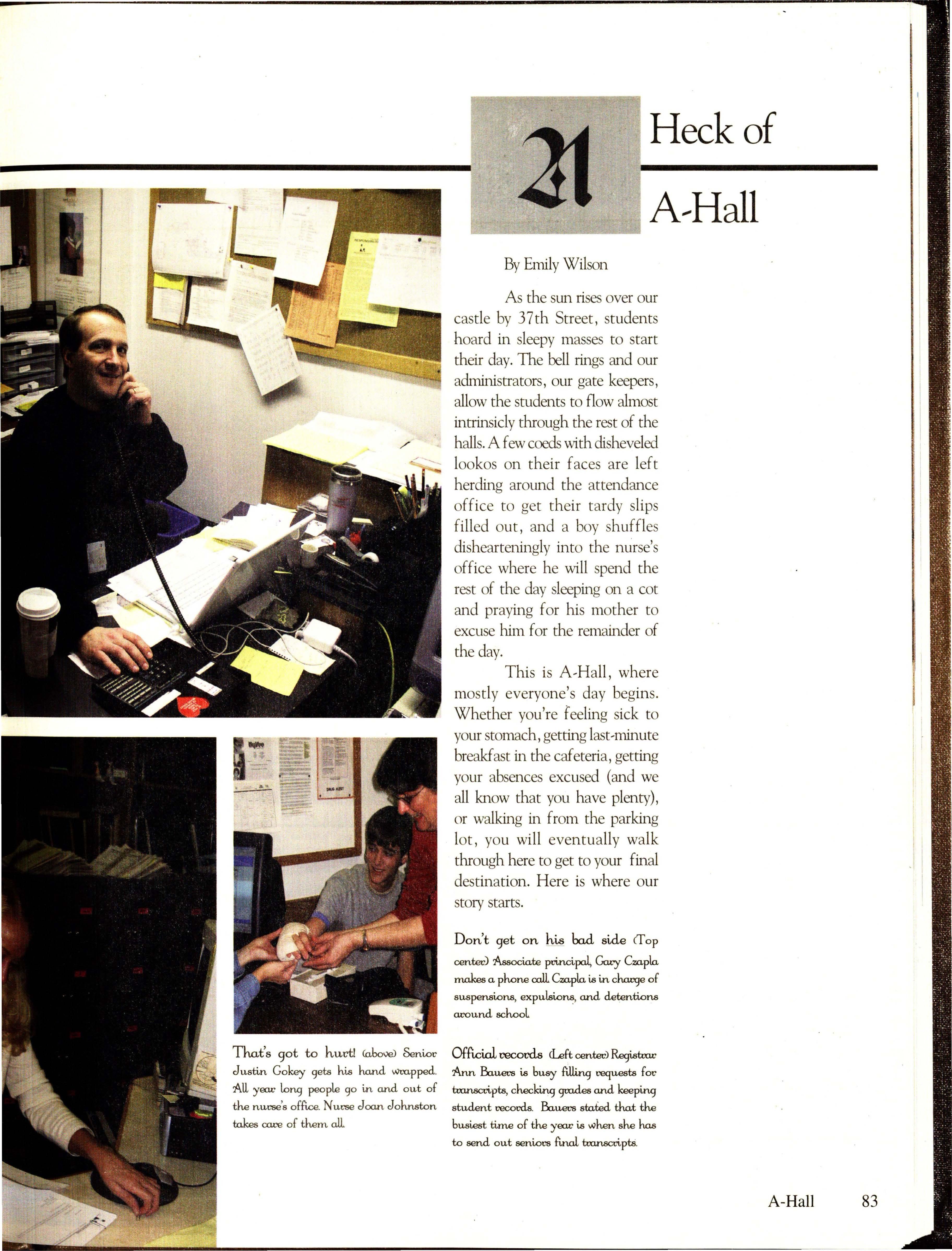 In our hallways, a montage of characters has been brought together, and students, athletes, cheerleaders, fans, actors, musicians, leaders, and journalists have all found a place to belong. The halls have seen it all and have watched our lives happen Since the day, years ago, when they went up to provide the humble setting for our education, our halls have been here, standing with us through the good times and bad, watching our stories happen.