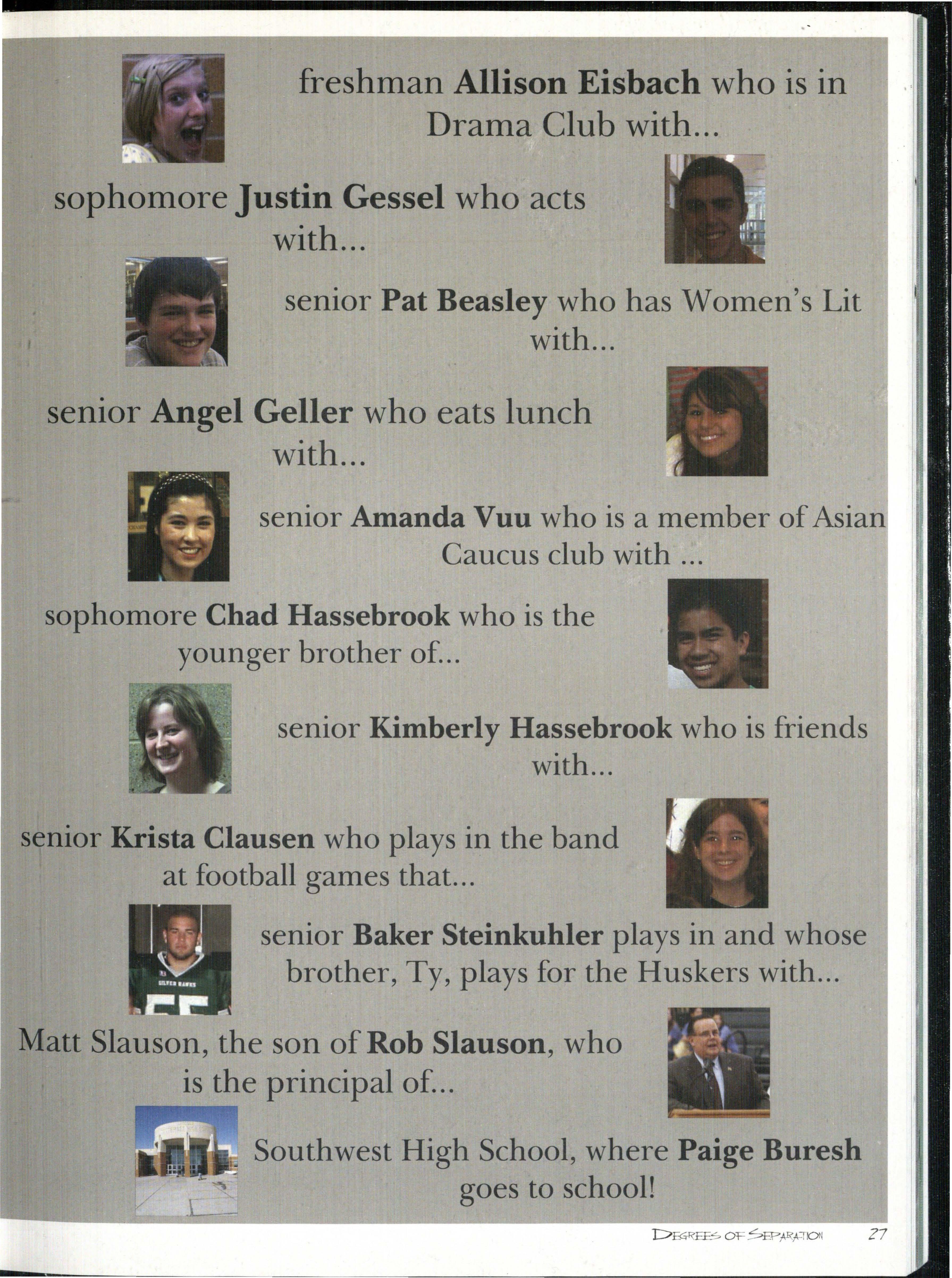 Overall, students had a memorable year, whether it be from staying up late to finish a project on Sunday ar semifinalists, while about 34 percent night or staying out way too late with made honor roll. their friends. The 2007-2008 year was