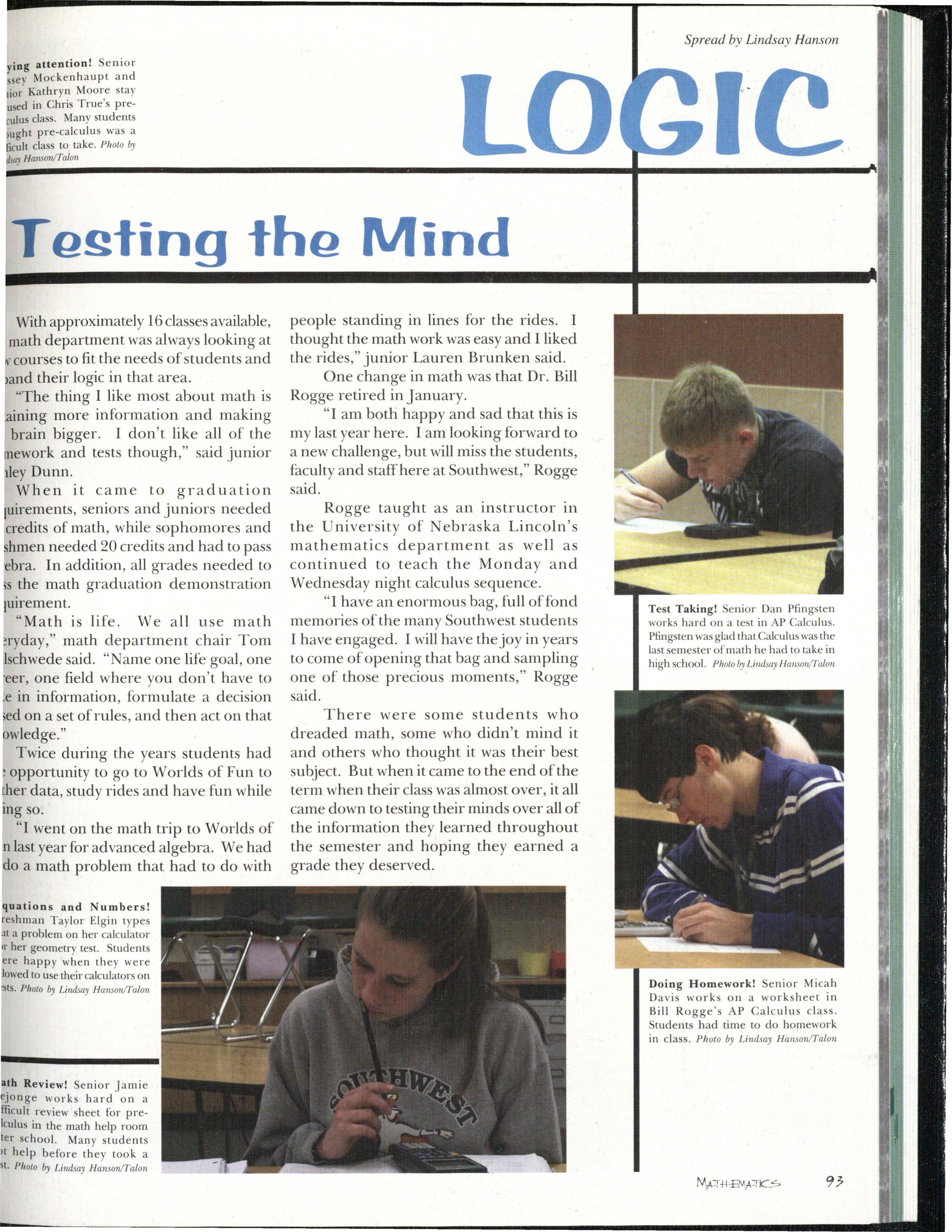 In another measure of success, photos and names on the walls of distinction continued to grow with 73 individual student plaques as of Oct. 18 2007 all recognizing different kinds of success, but all under the Southwest label.