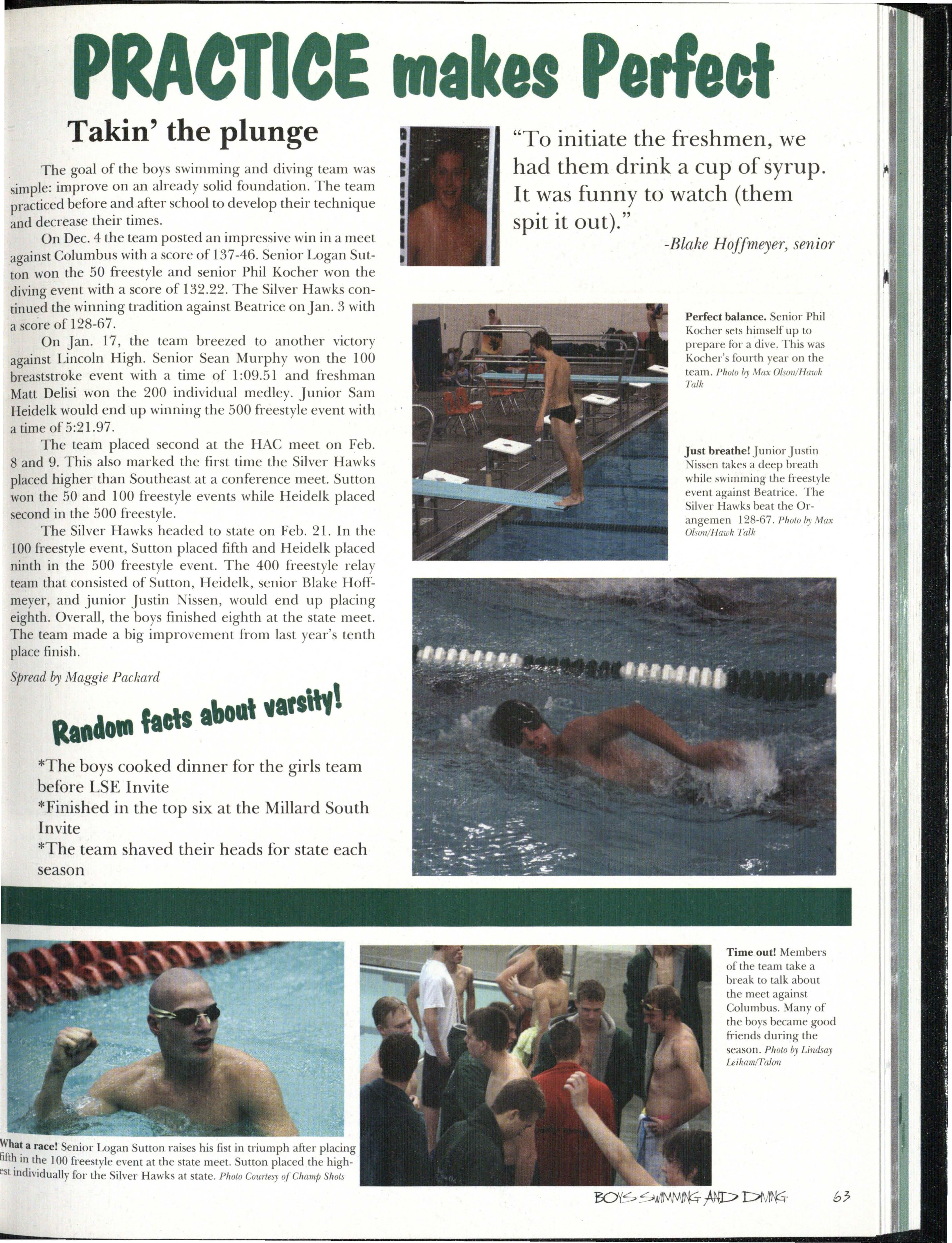 One thousand three hundred and fifty books were ordered from Walsworth Publish ing Company in Marceline, Missouri. The yearbook was finishe d in five deadlines, with the first pages being sent in late Octob er. During locker checkouts, over 700 books were sold, which was a record for sales.
