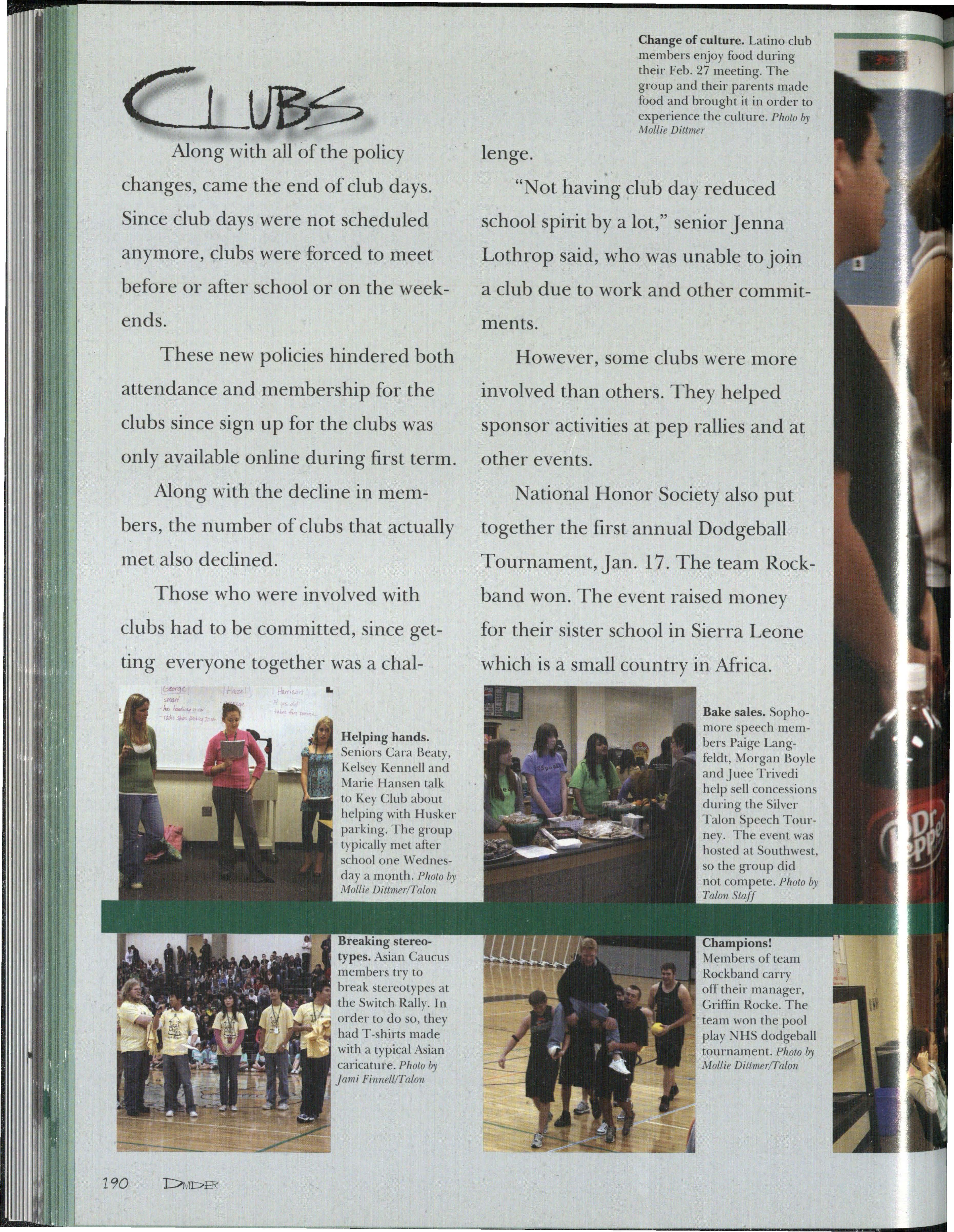Re: Clubs and Organizations. Since club days were no longer held, Yearbook had to collect information about club activities and members from club sponsors and/or officers. Not all clubs responded to the request and some sponsors reported that some clubs no longer met.
