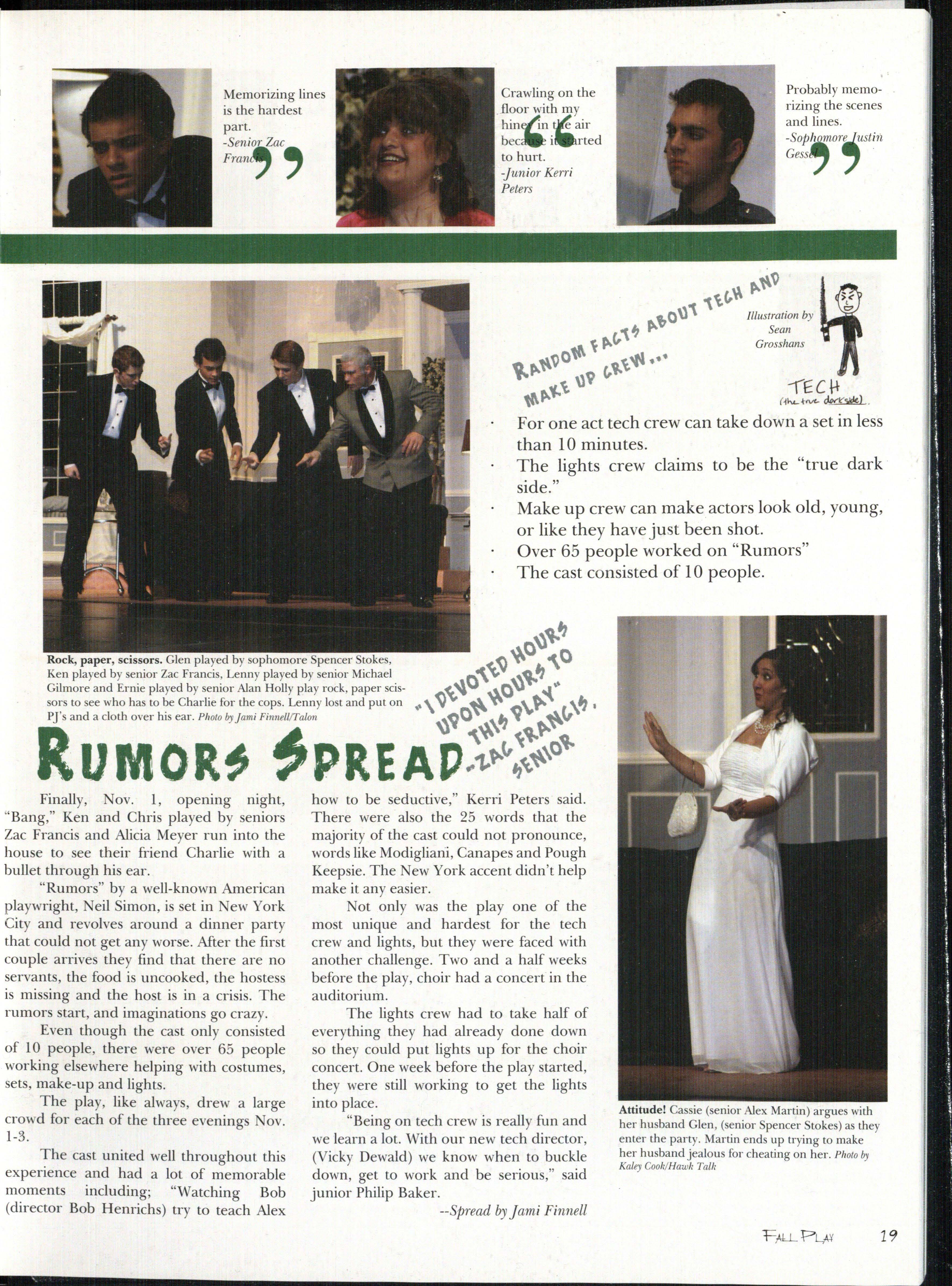 This year's Talon staff would like to congratulate the 2 yearbook, "Creating Traditions" staff1 Congratulation s Courtney Chambers for finishing third in Layout in Cl a and Mollie Dittmer for finishing second in the state in C and Rachel Yank for winning first in the Al prelims fo r Development. Also congratulations to Max Olson and .-I Cunningham for finishing second and third respective l 1 Al prelims for sports and action photography.