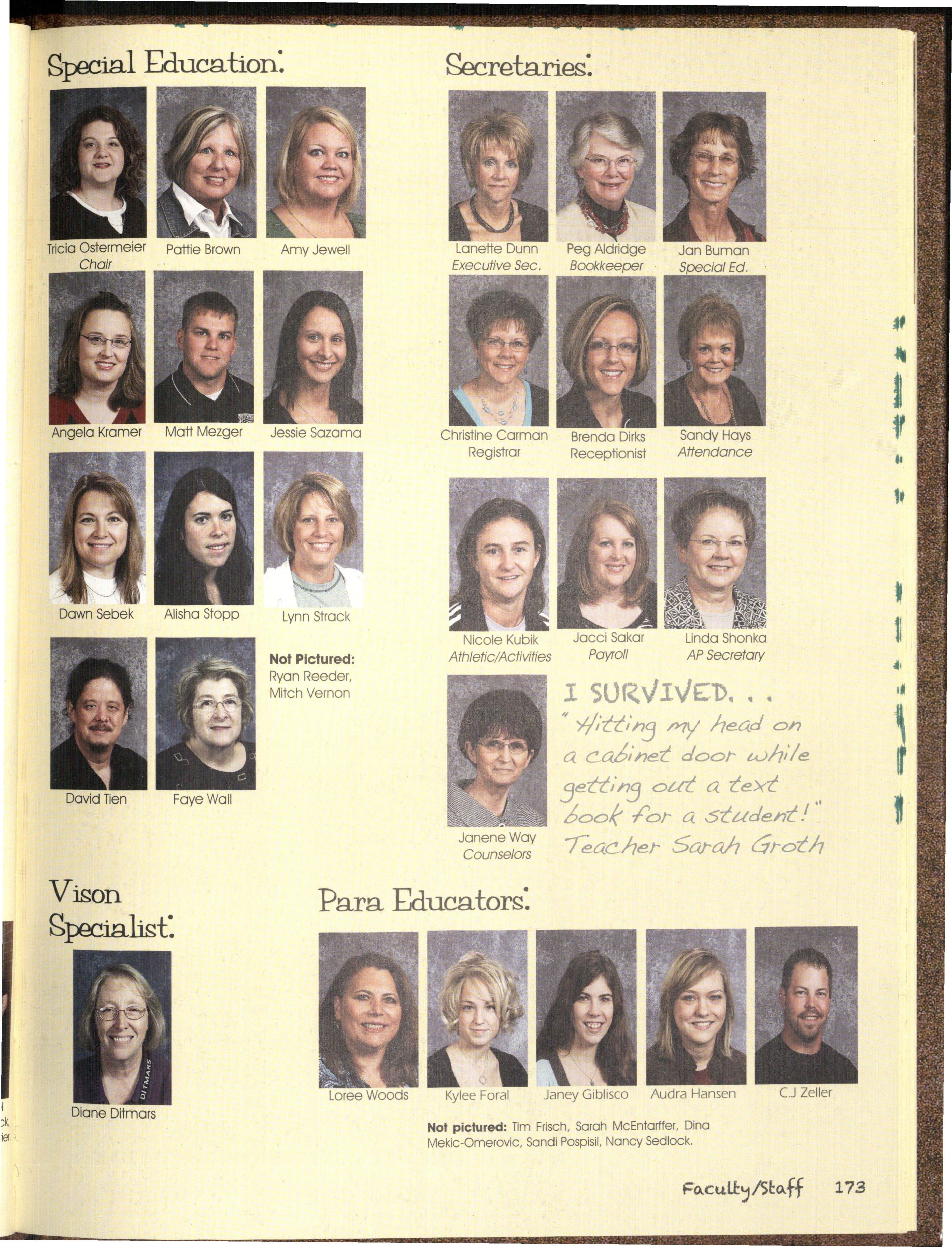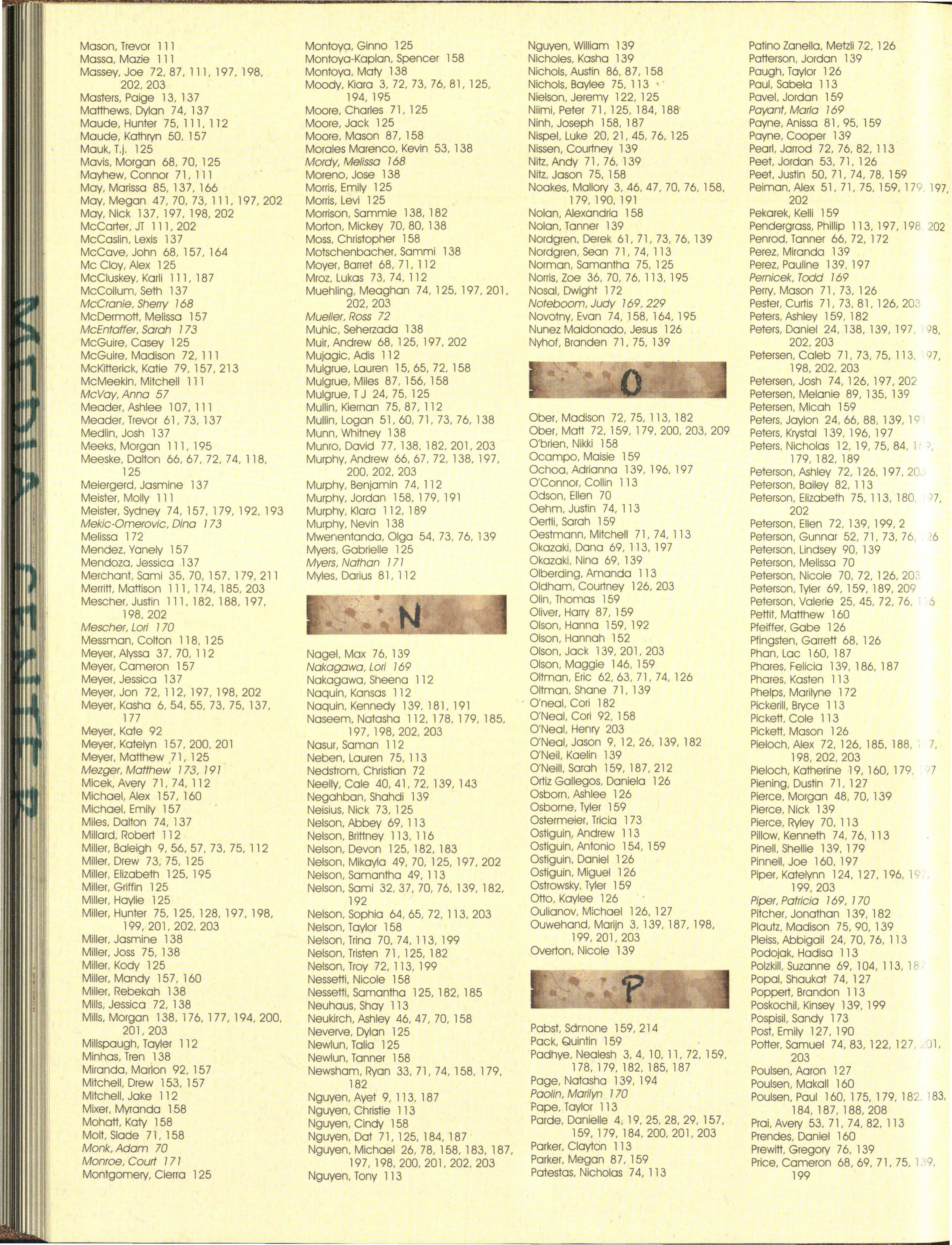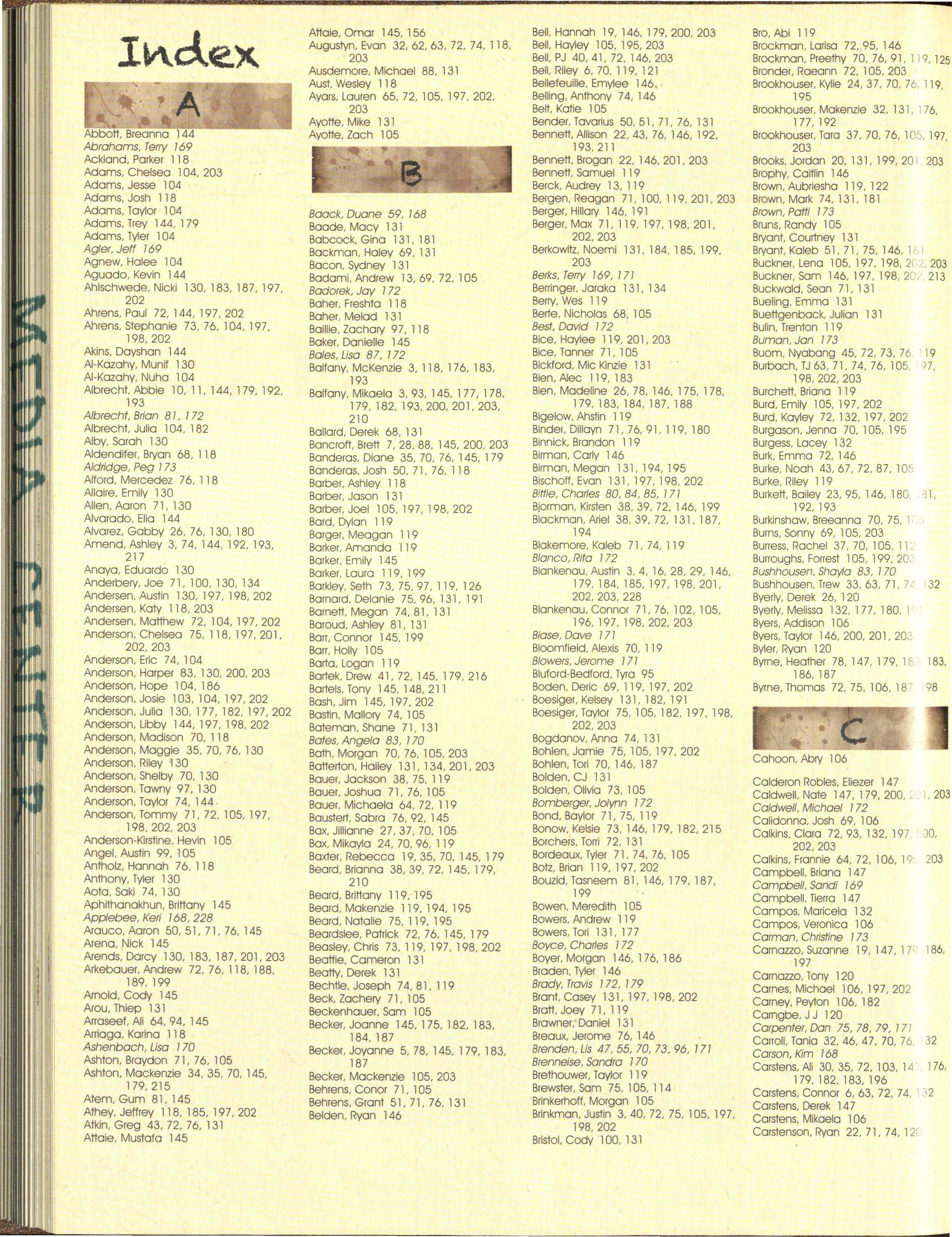 The not pictured list was co m p iled from an October and a March list of students and is to rep res e nt students not pictured on the people pages. We apolog ize for any omissions or mistakes.
