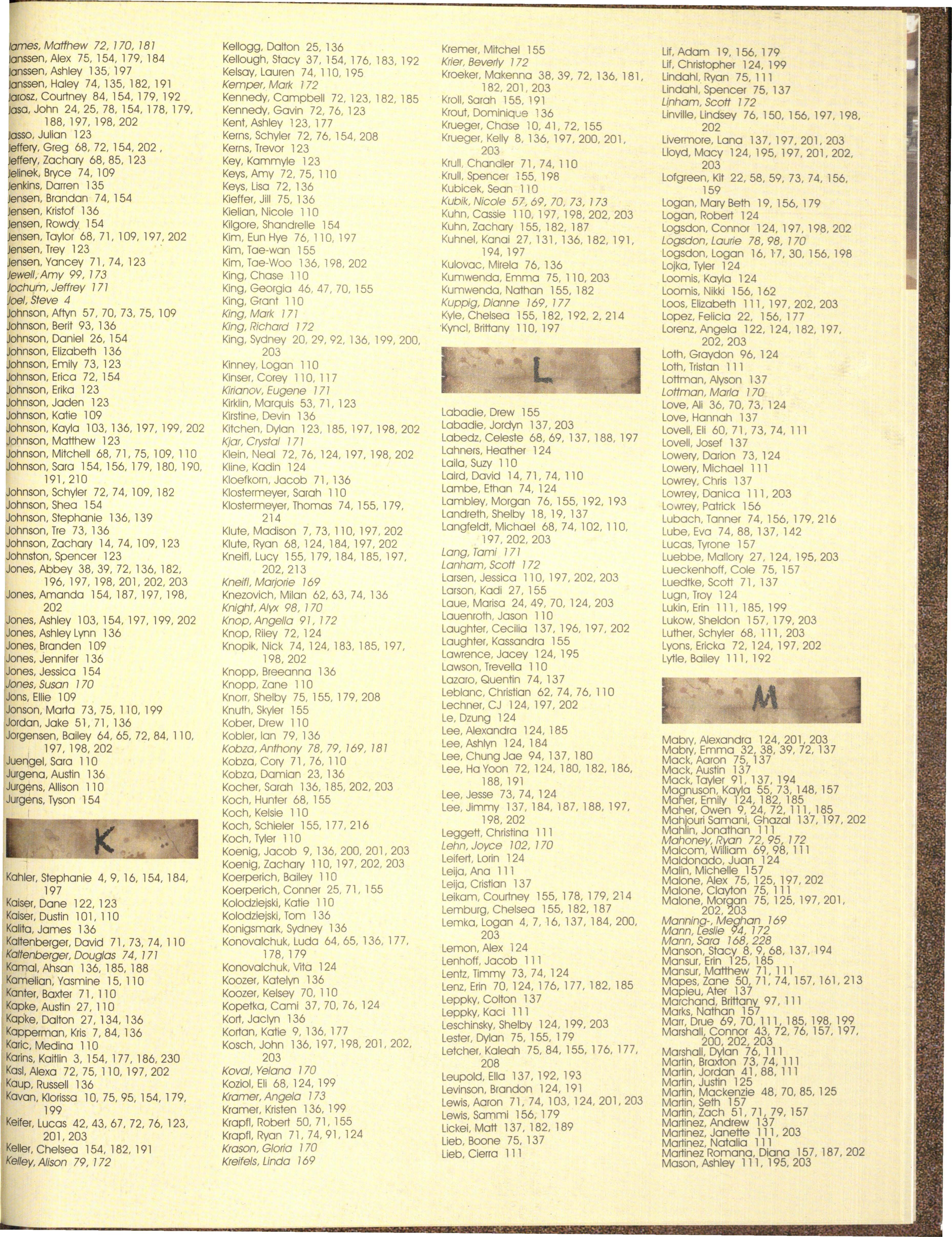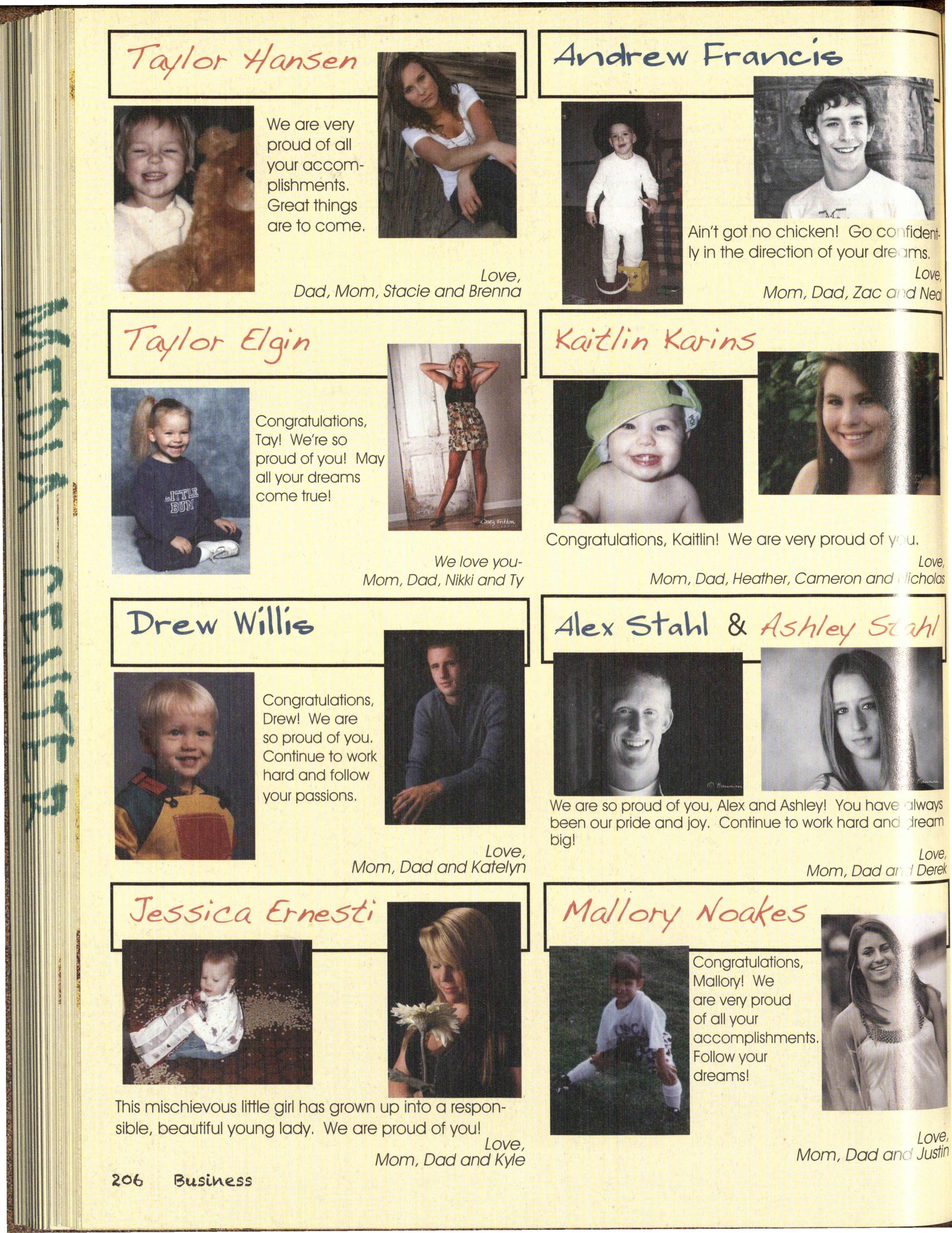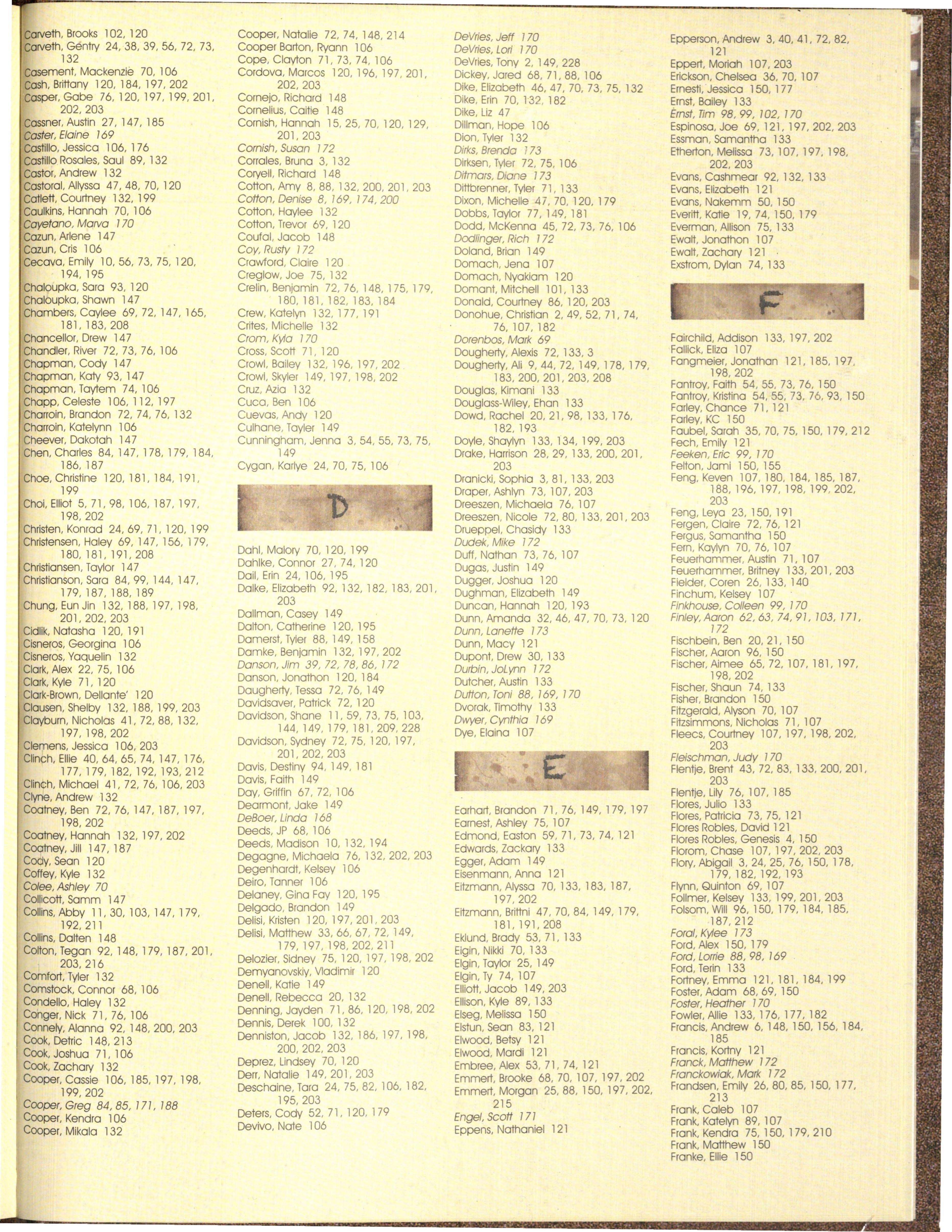 The not pictured list was co m p iled from an October and a March list of students and is to rep res e nt students not pictured on the people pages. We apolog ize for any omissions or mistakes.