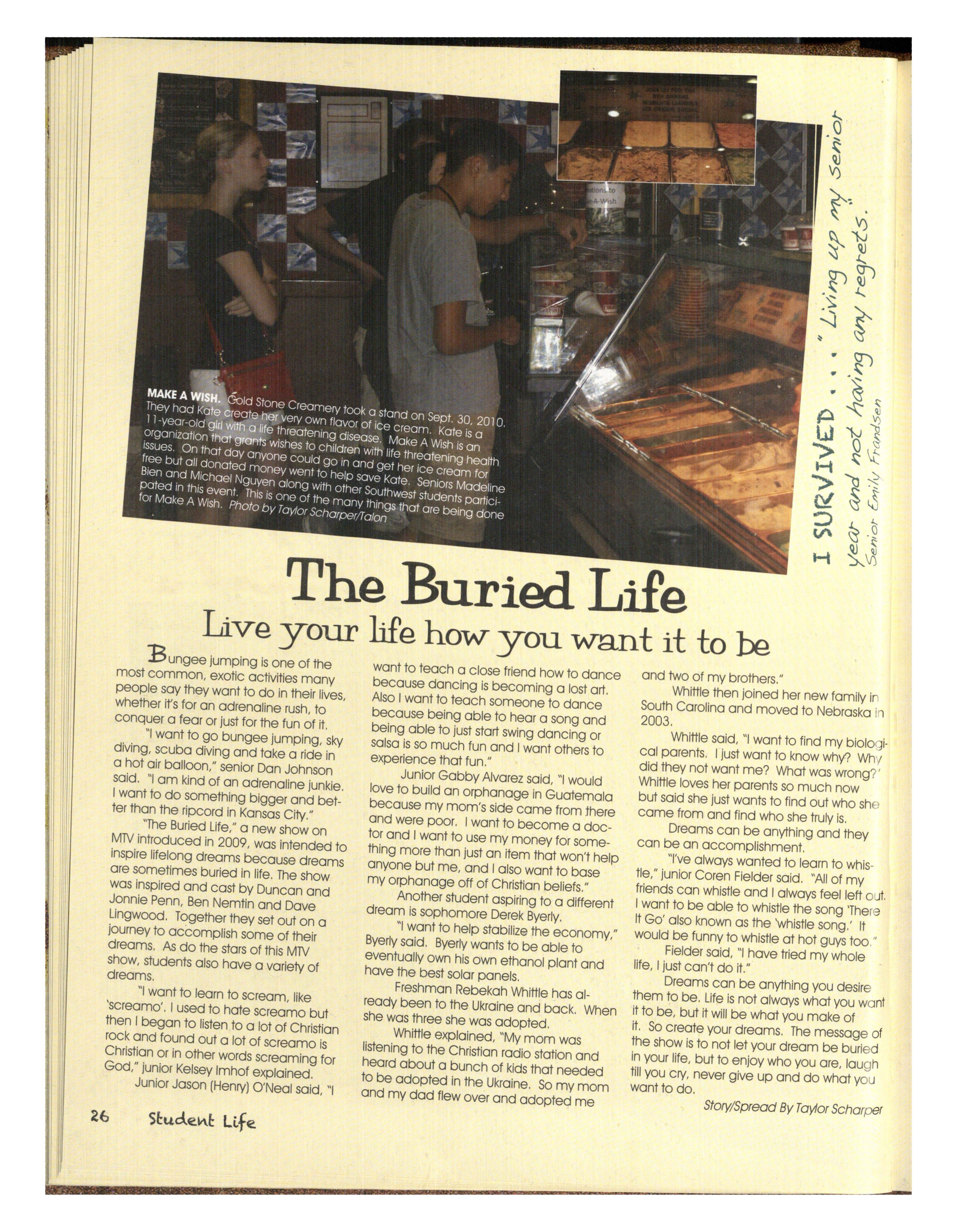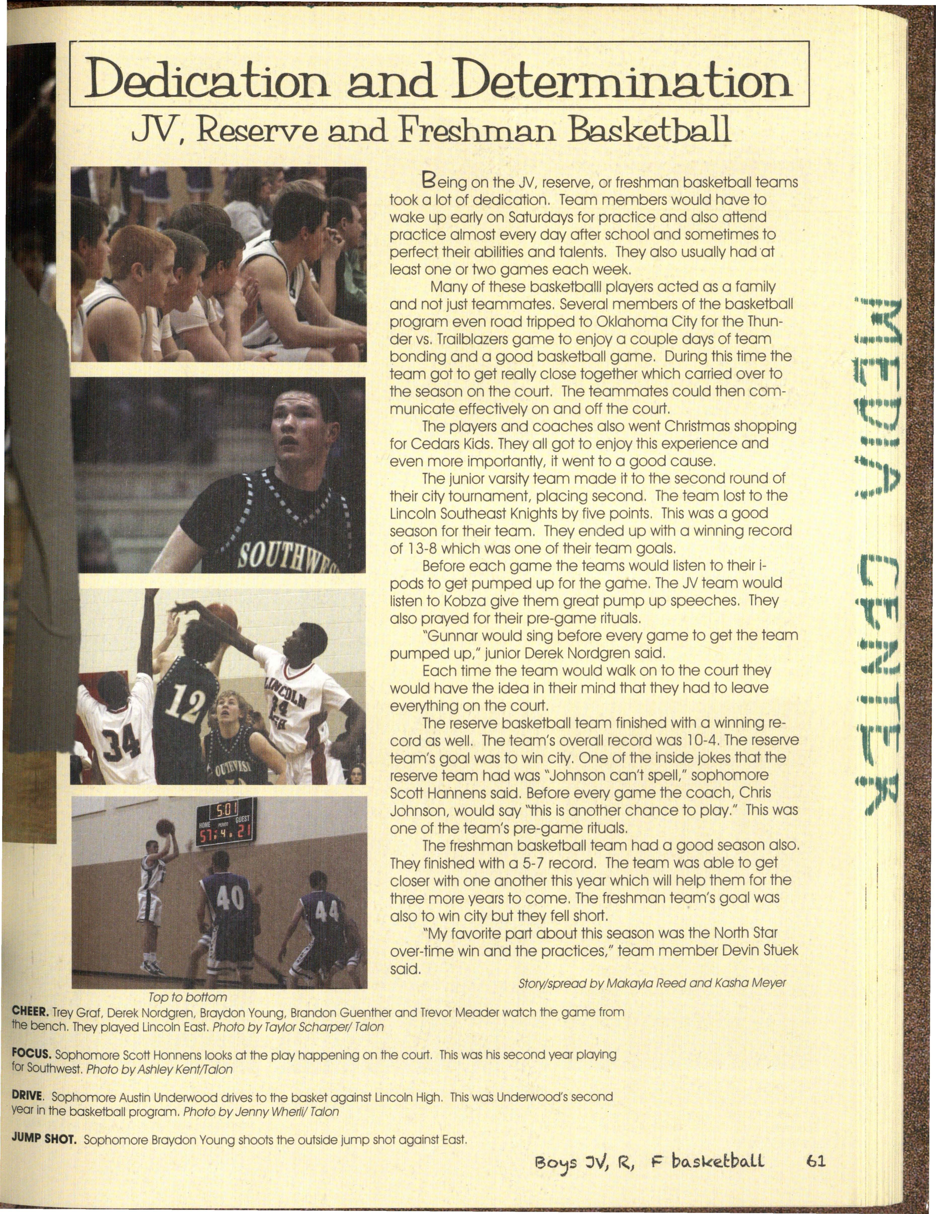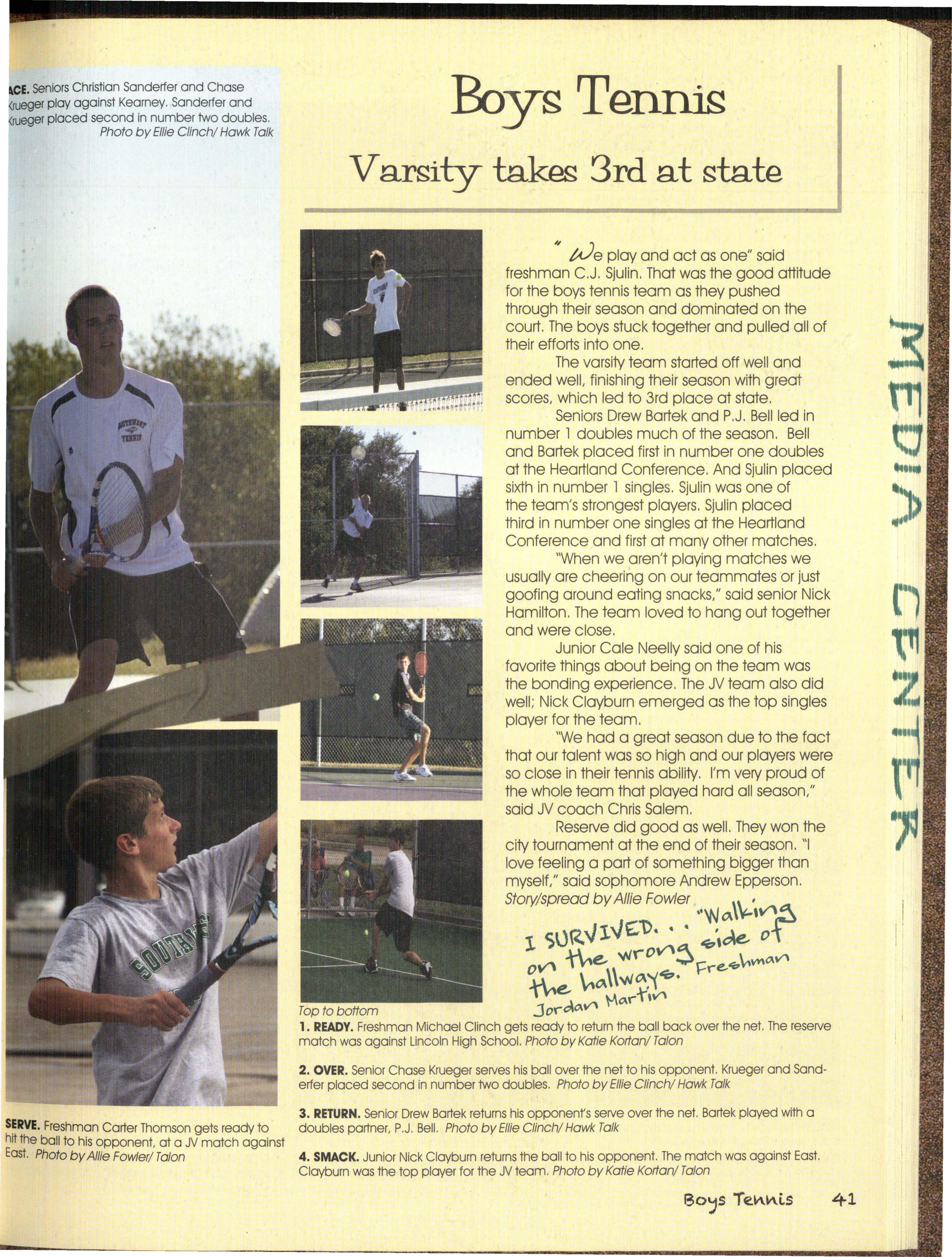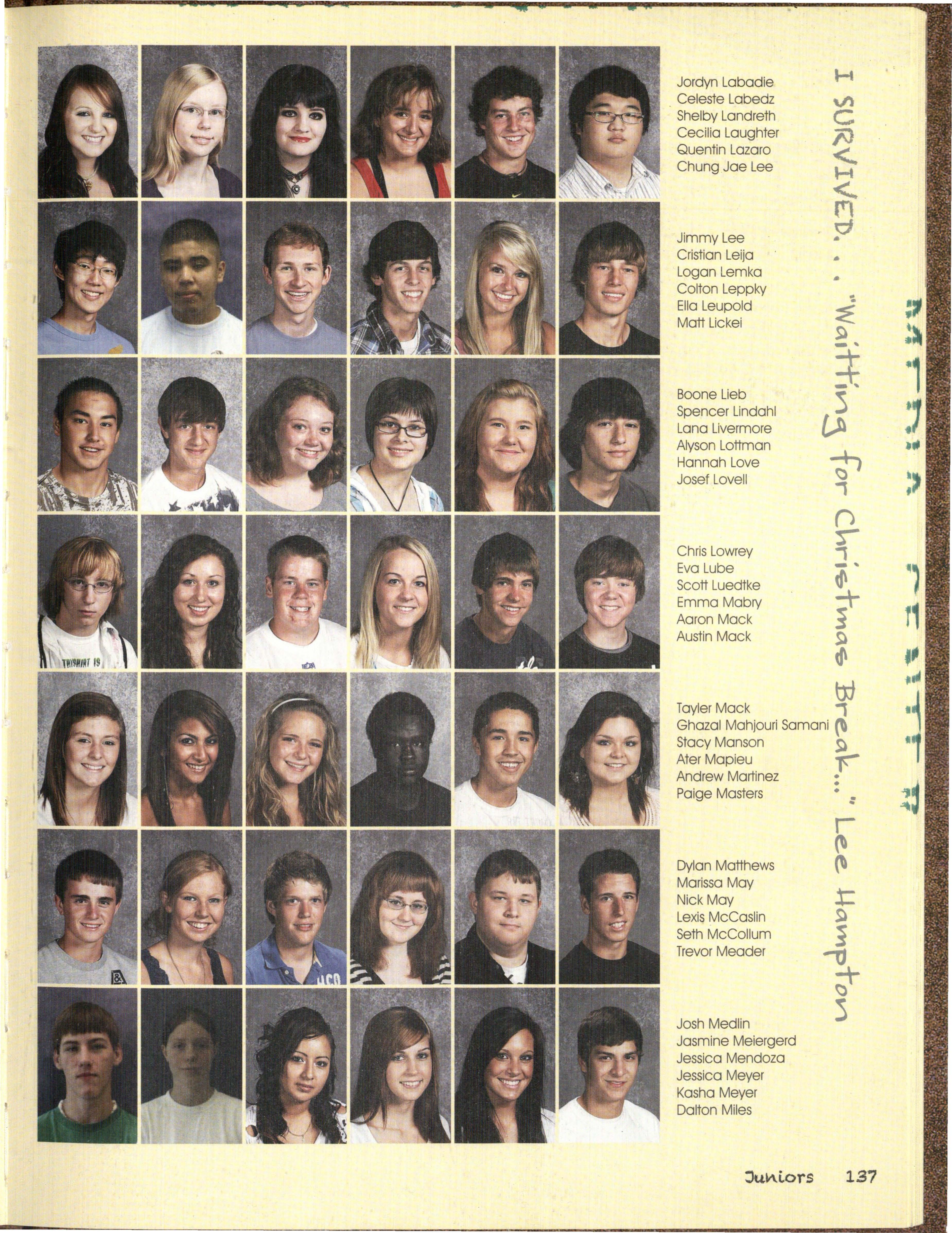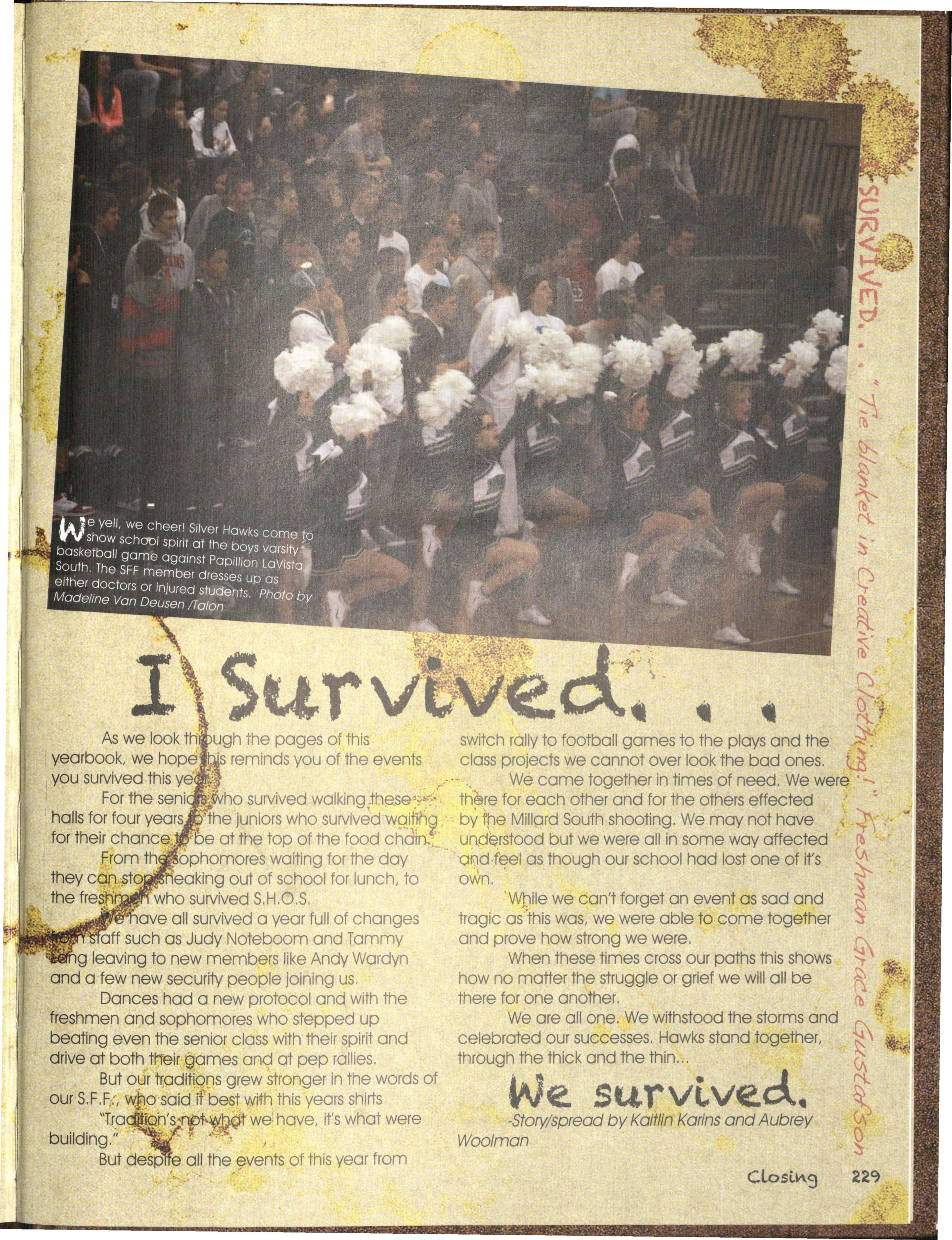 For the seni ·§vho survived walking Jhese •:...:-"~ 1 th~re for each other and for the others effected halls for four years ·the juniors who survived waitth~ 0y fhe Millard South shooting. We may not have for their chance. be at the top of the food chdin .~ understood but we were all in some way affected From th ophomores waiting for the day •• und .feel as though our school had lost one of its they can sto • iieaking out of school for lunch, to own. • the fresh who survived S.H.O.S ' WJ:)ile we can't forget an event as sad and ••• ave all survived a year full of changes tragic as this was, we were able to come together • off such as Judy Noteboom and Tammy and prove how strong we were. g leaving to new members like Andy Wardyn