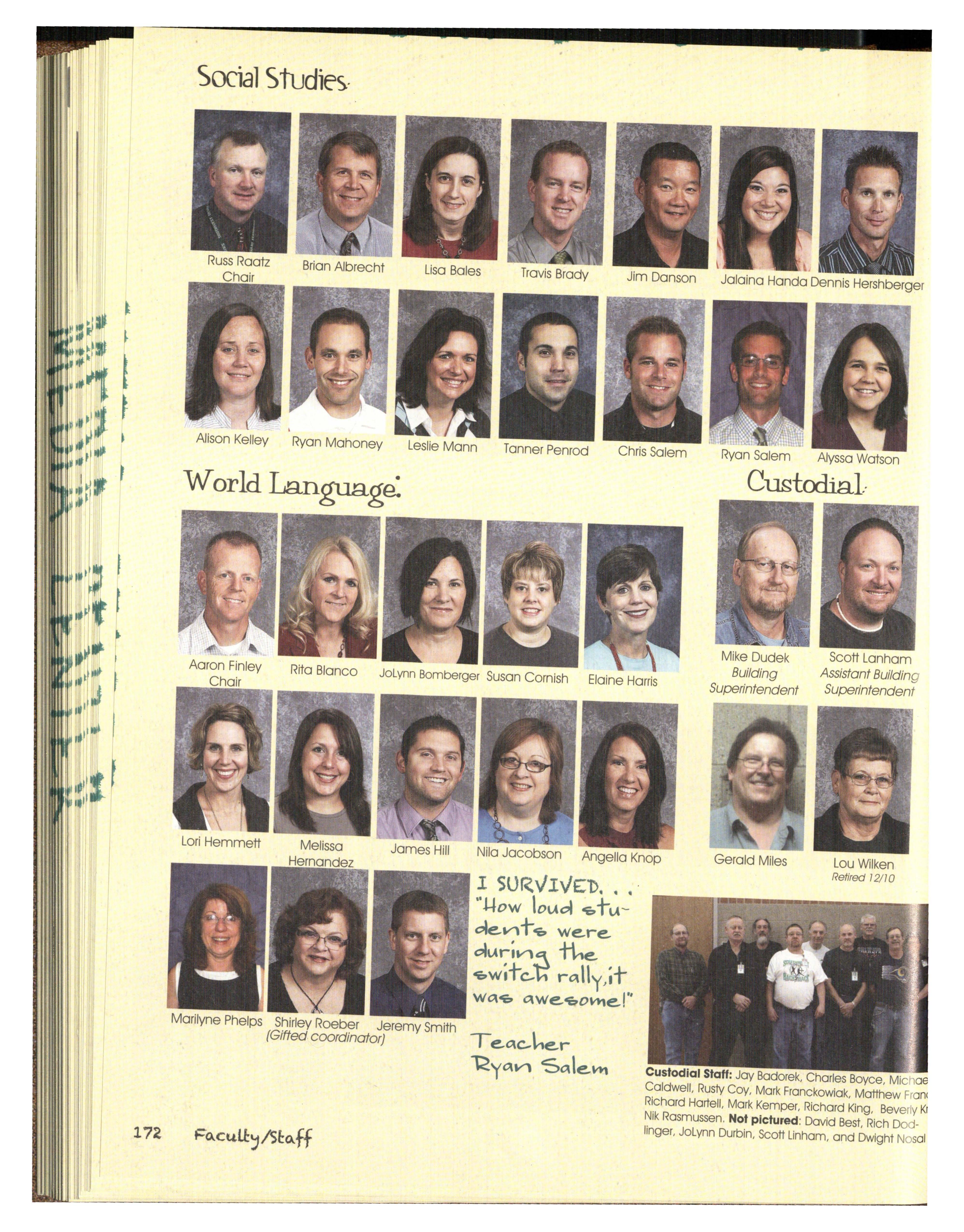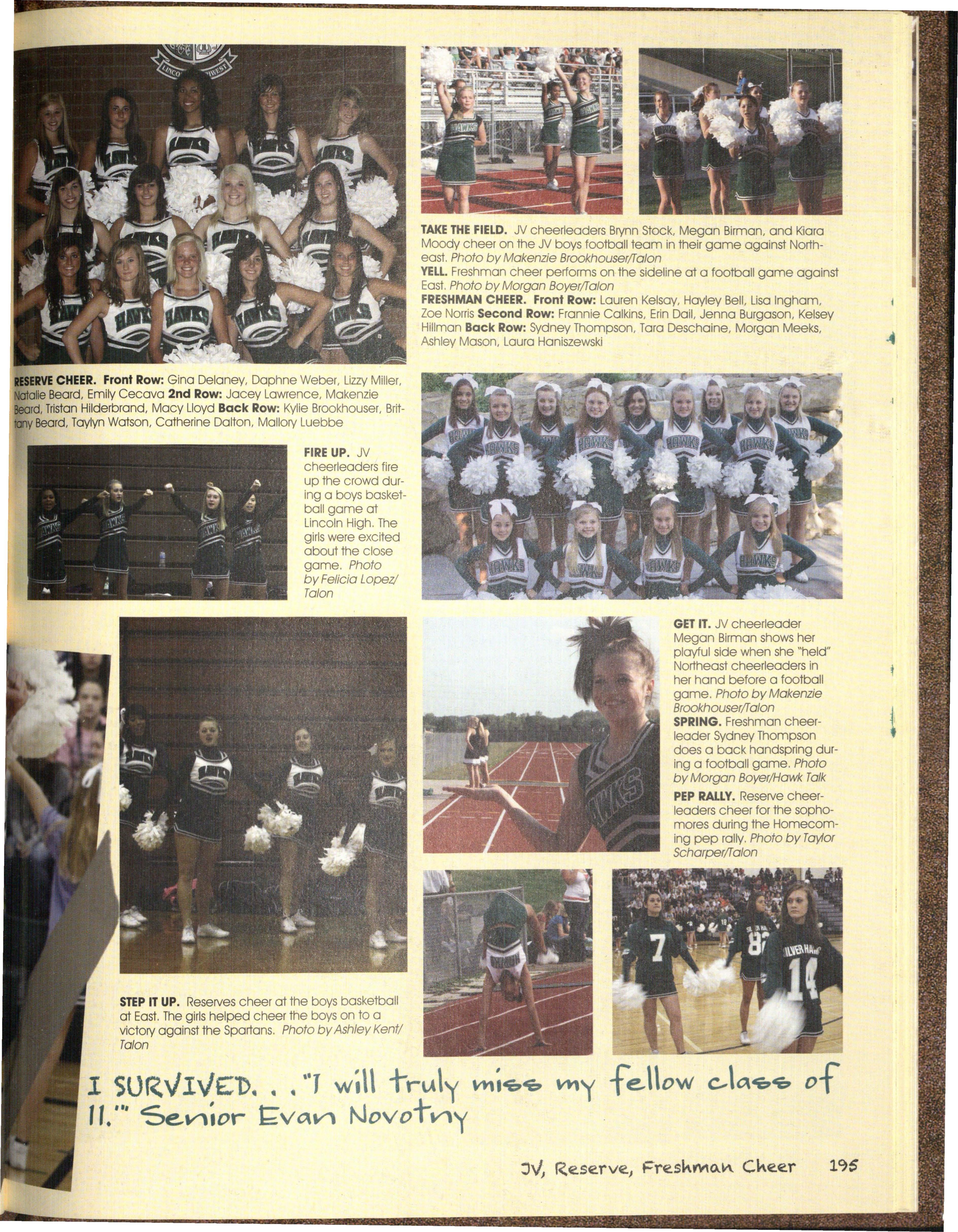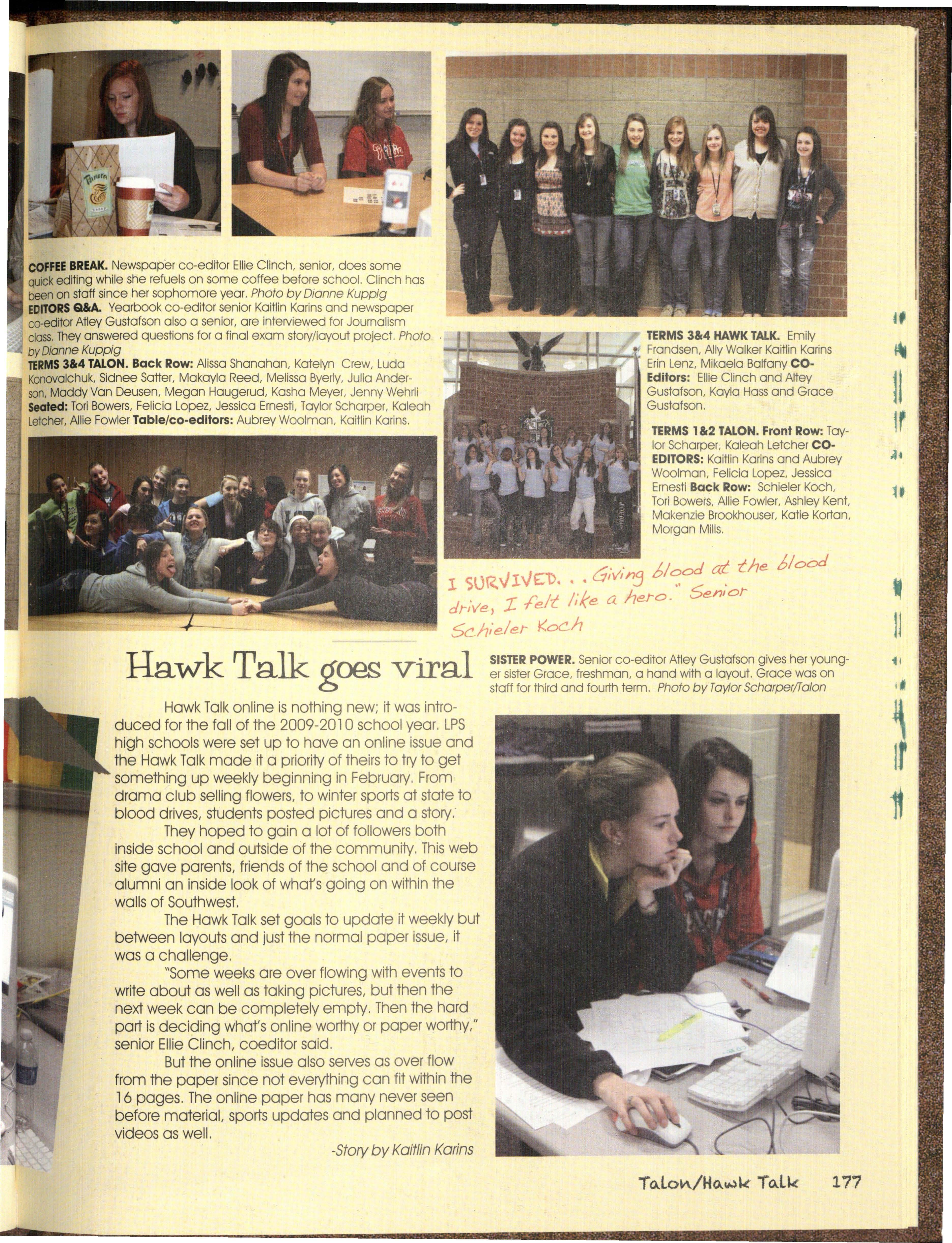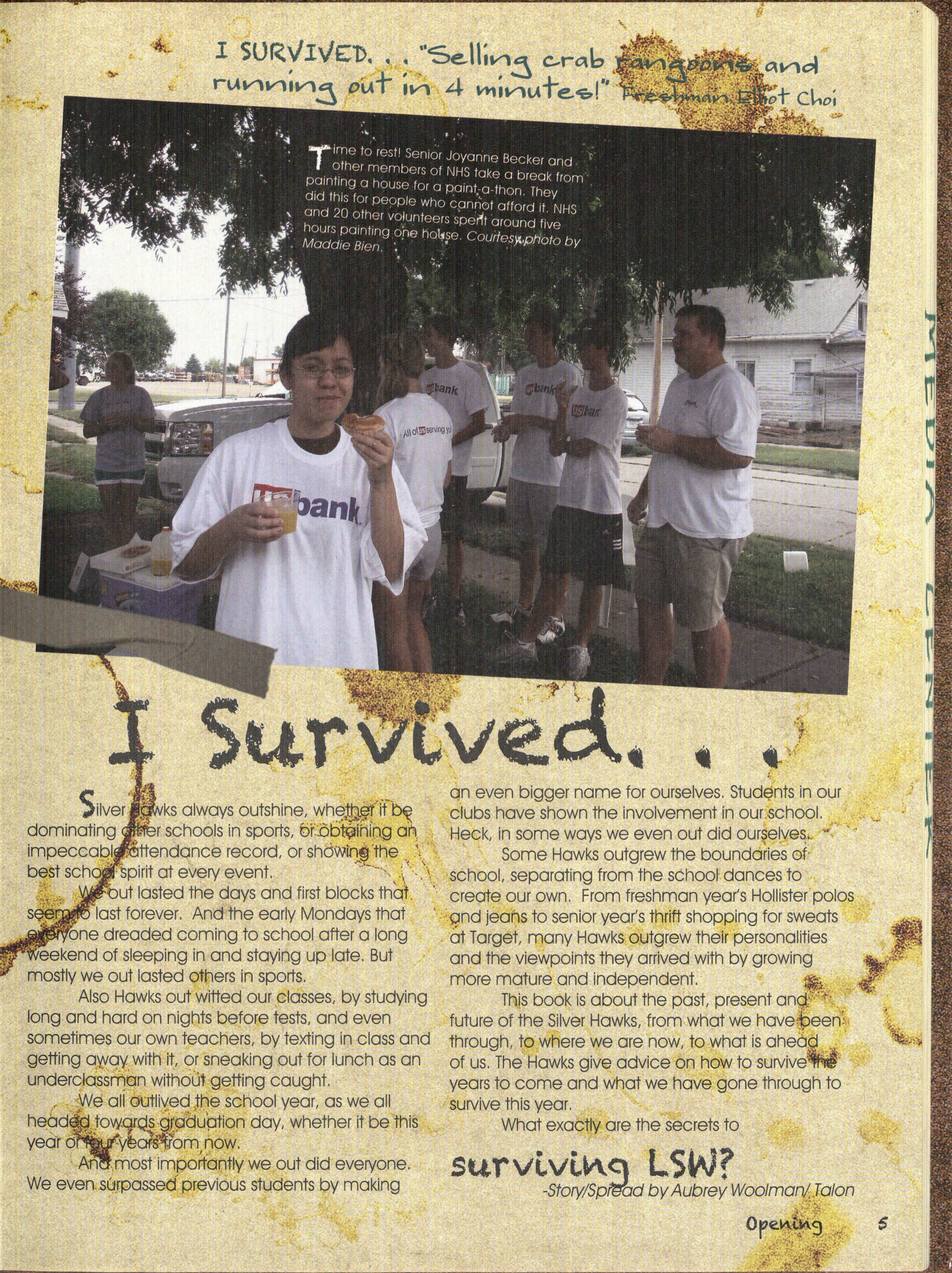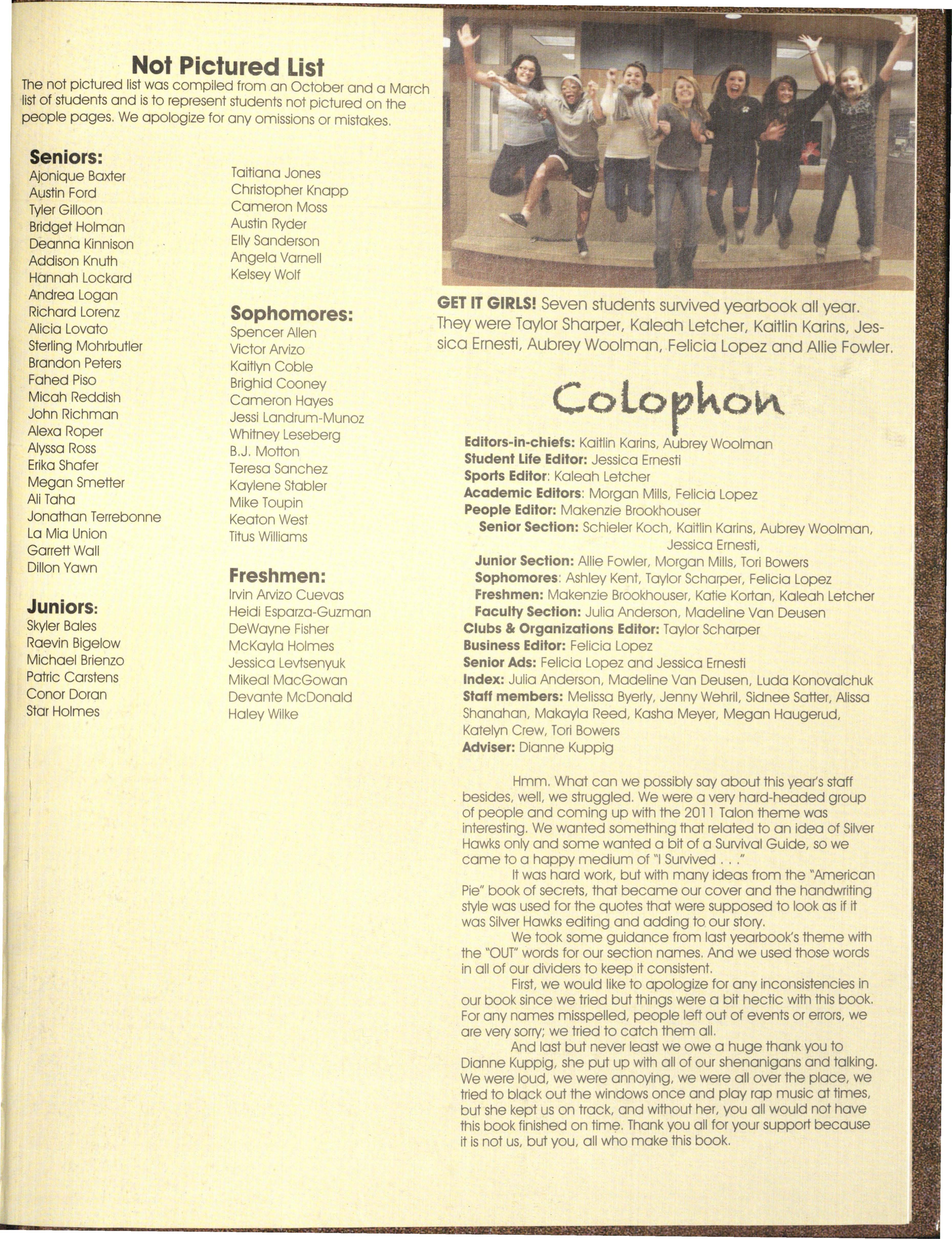 Hmm. What can we possibly say about this year's staff besides, well, we struggled. We were a very hard-headed group of people and coming up with the 20 l l Talon theme wa s interesting. We wanted something that related to an idea of Silver Hawks only and some wanted a bit of a SuNival Guide, so we came to a happy medium of "I Survived "