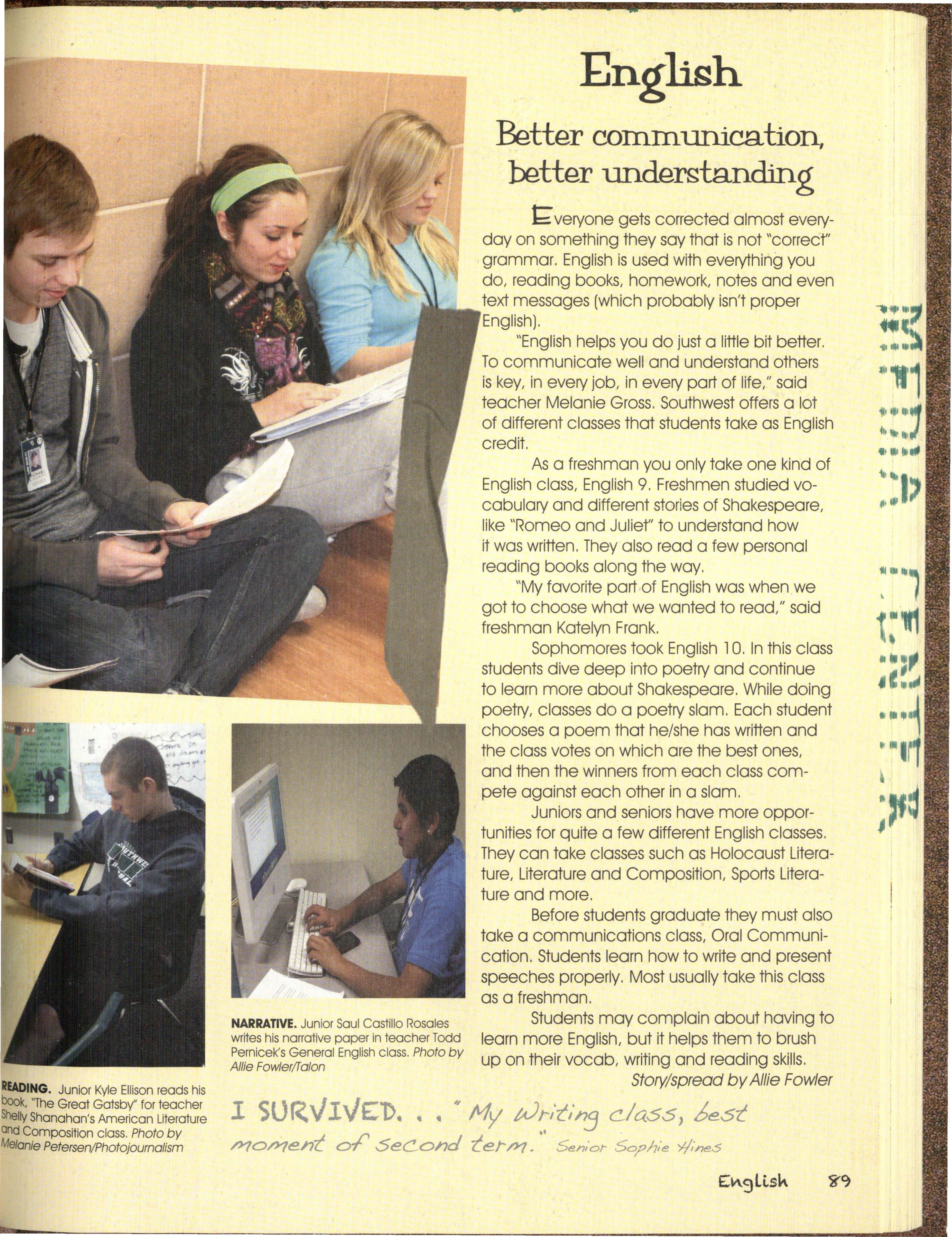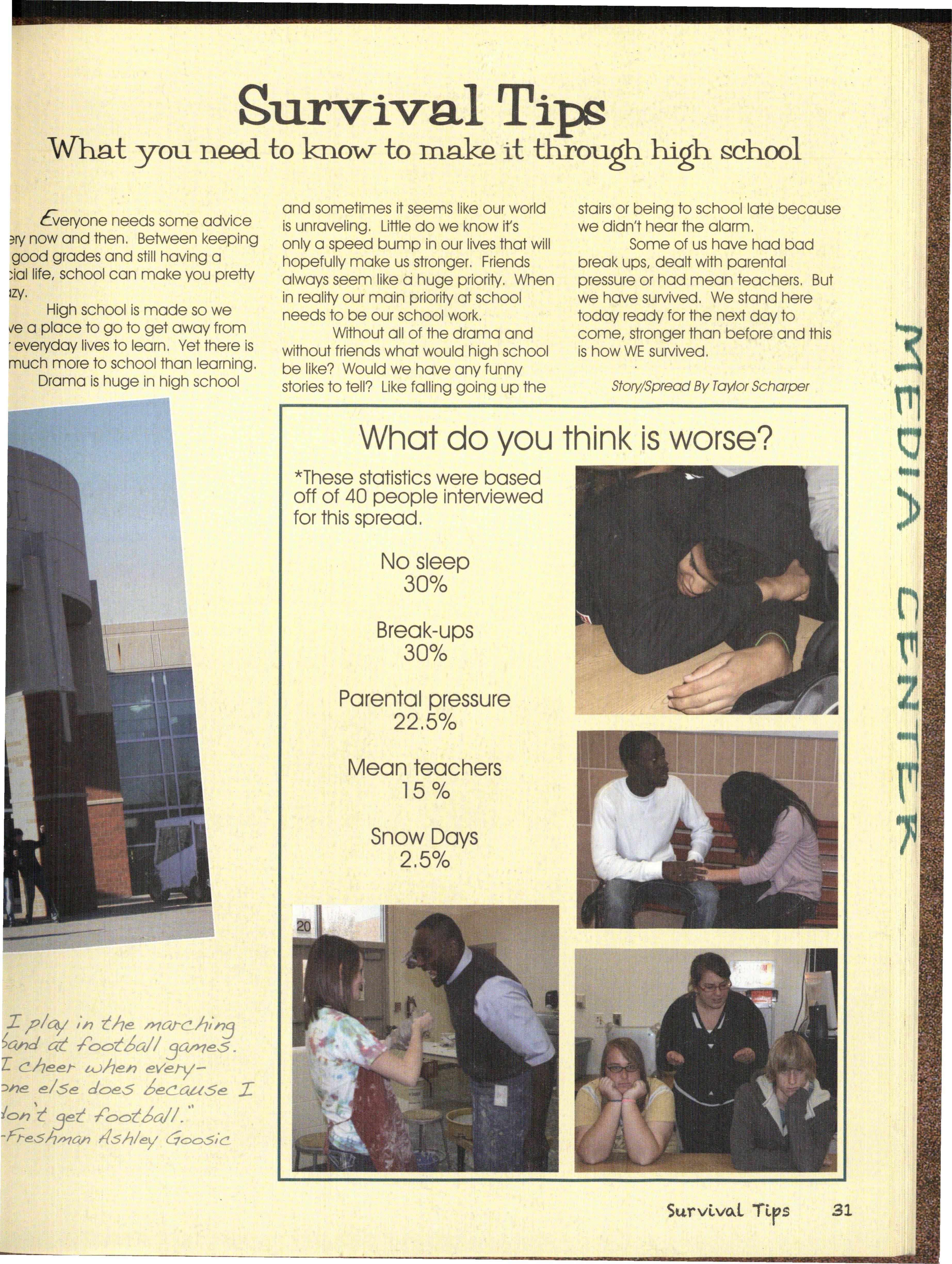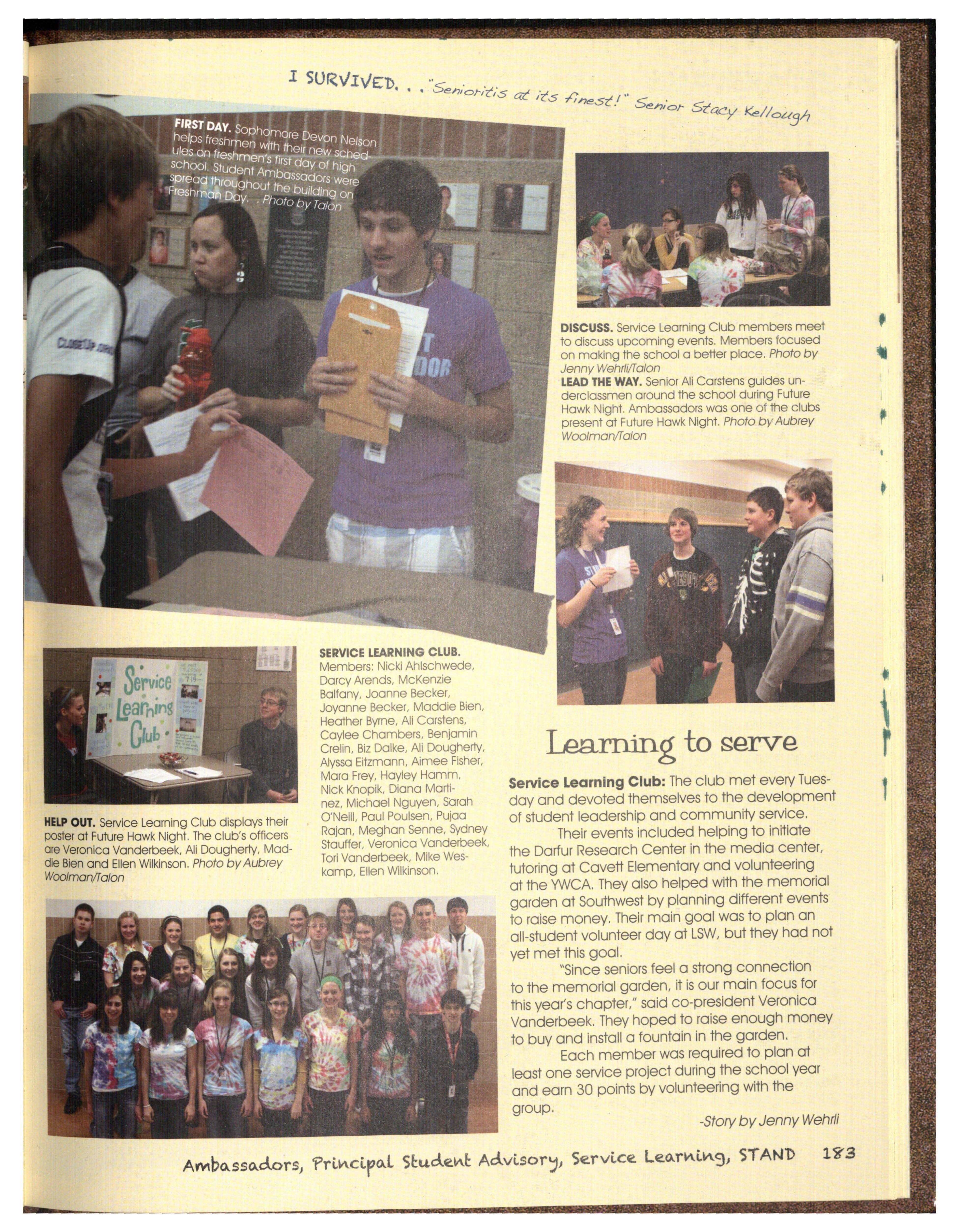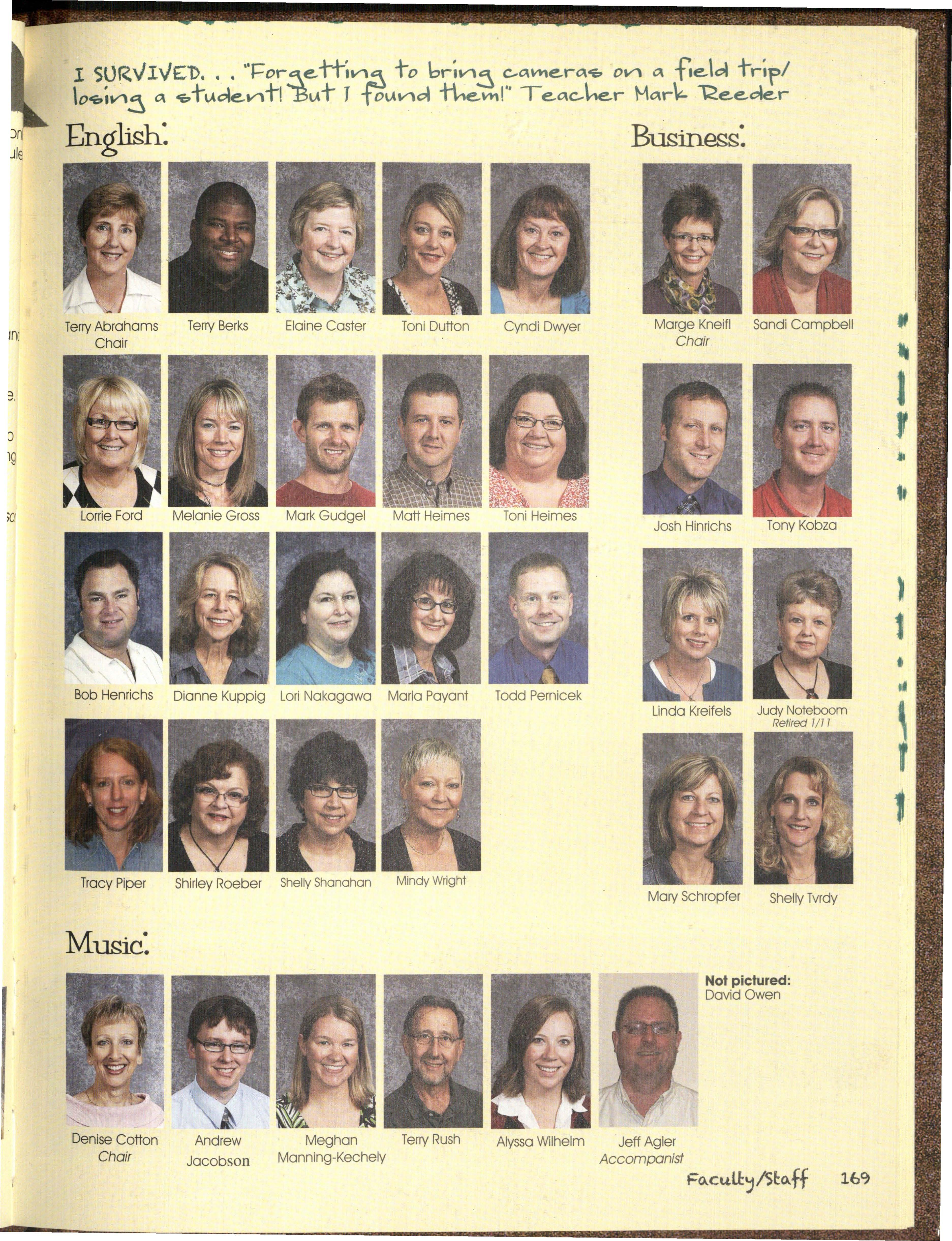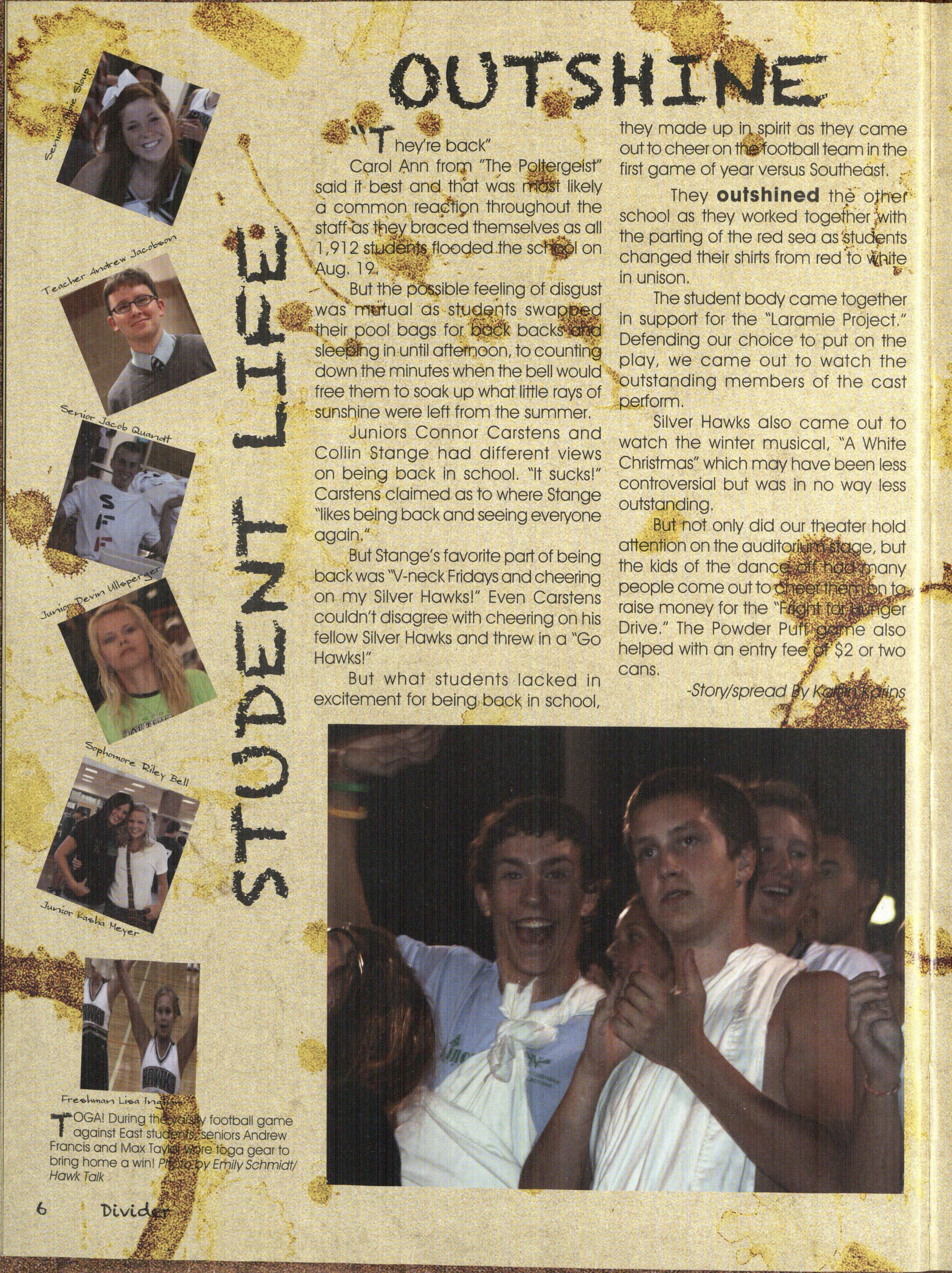 Hmm. What can we possibly say about this year's staff besides, well, we struggled. We were a very hard-headed group of people and coming up with the 20 l l Talon theme wa s interesting. We wanted something that related to an idea of Silver Hawks only and some wanted a bit of a SuNival Guide, so we came to a happy medium of "I Survived "