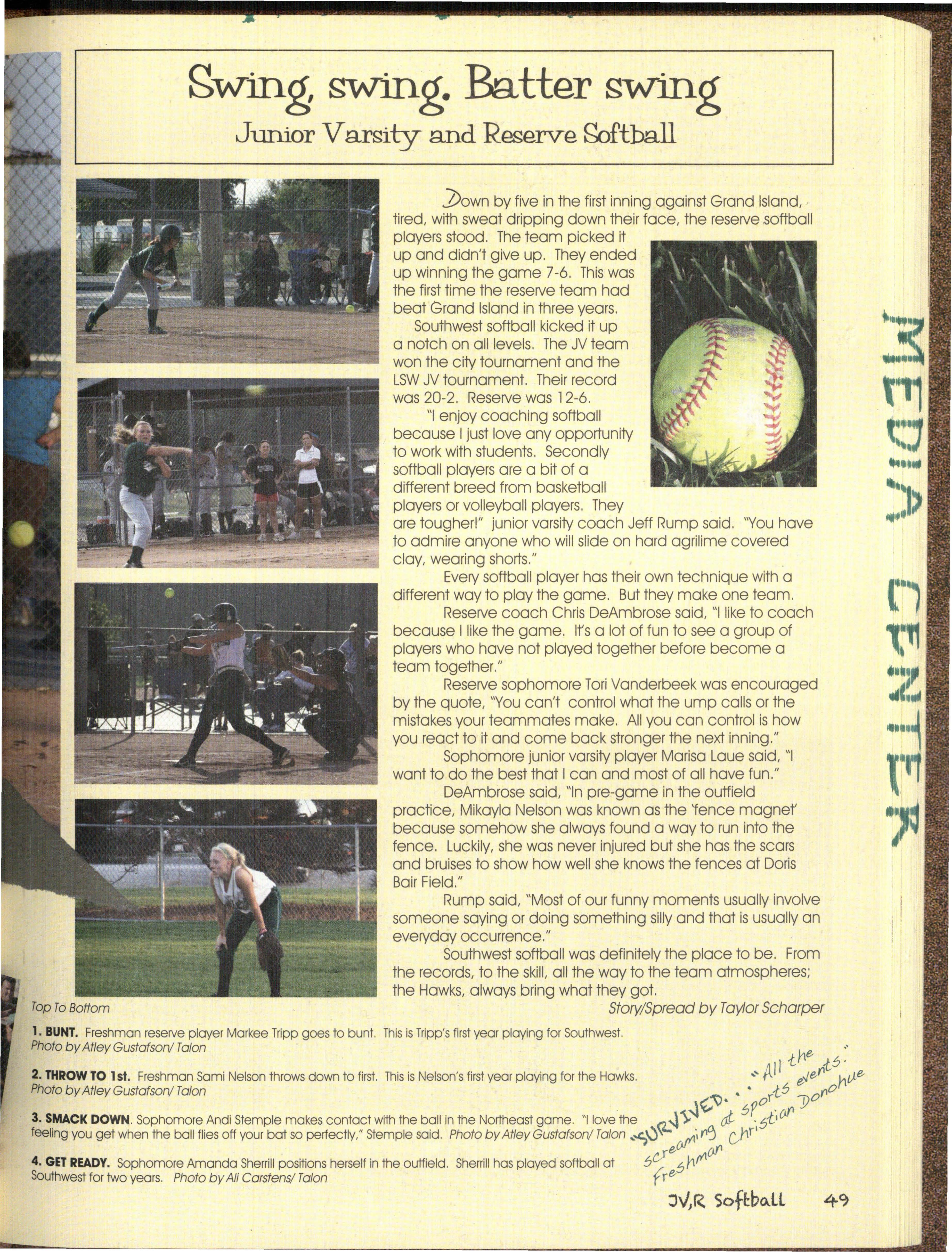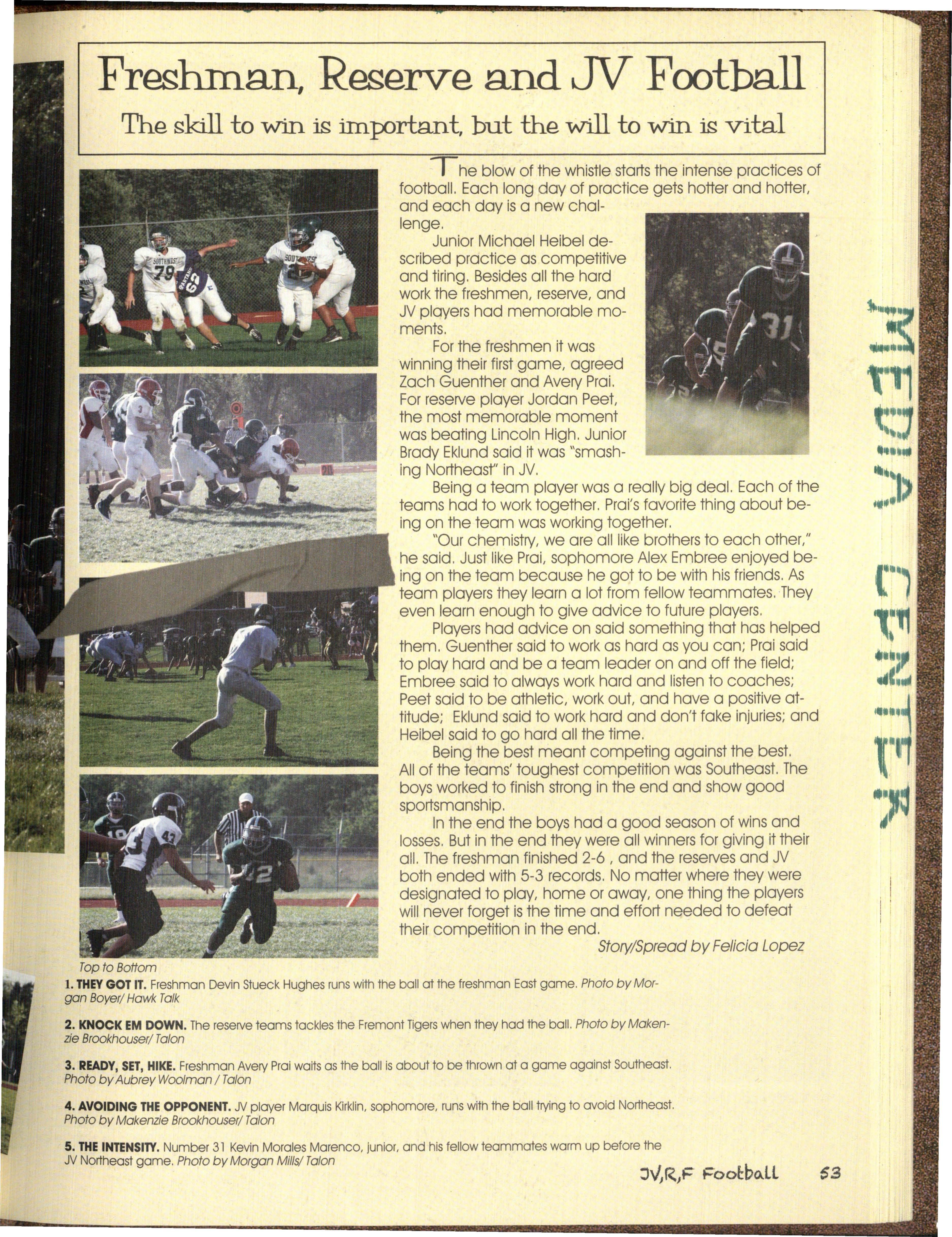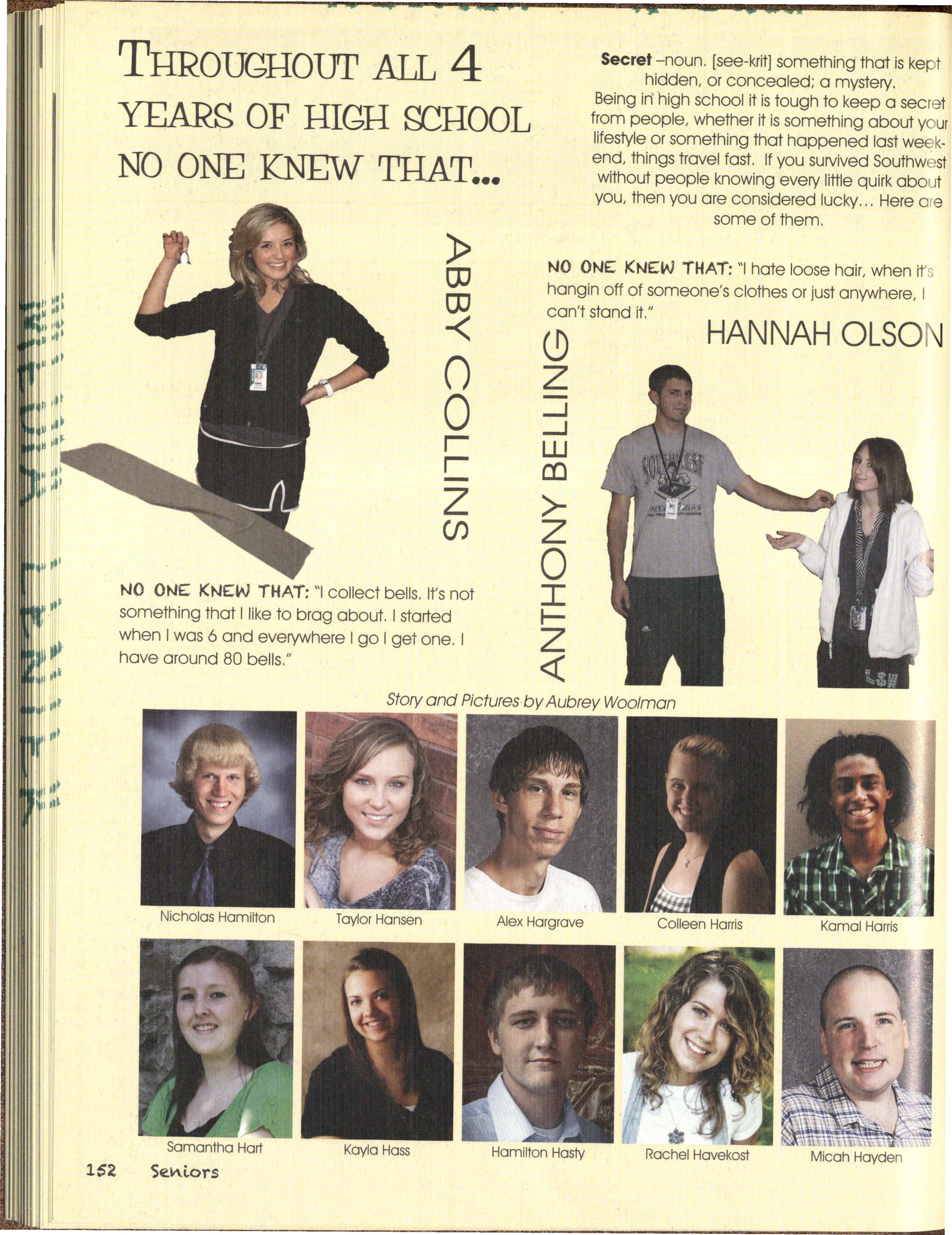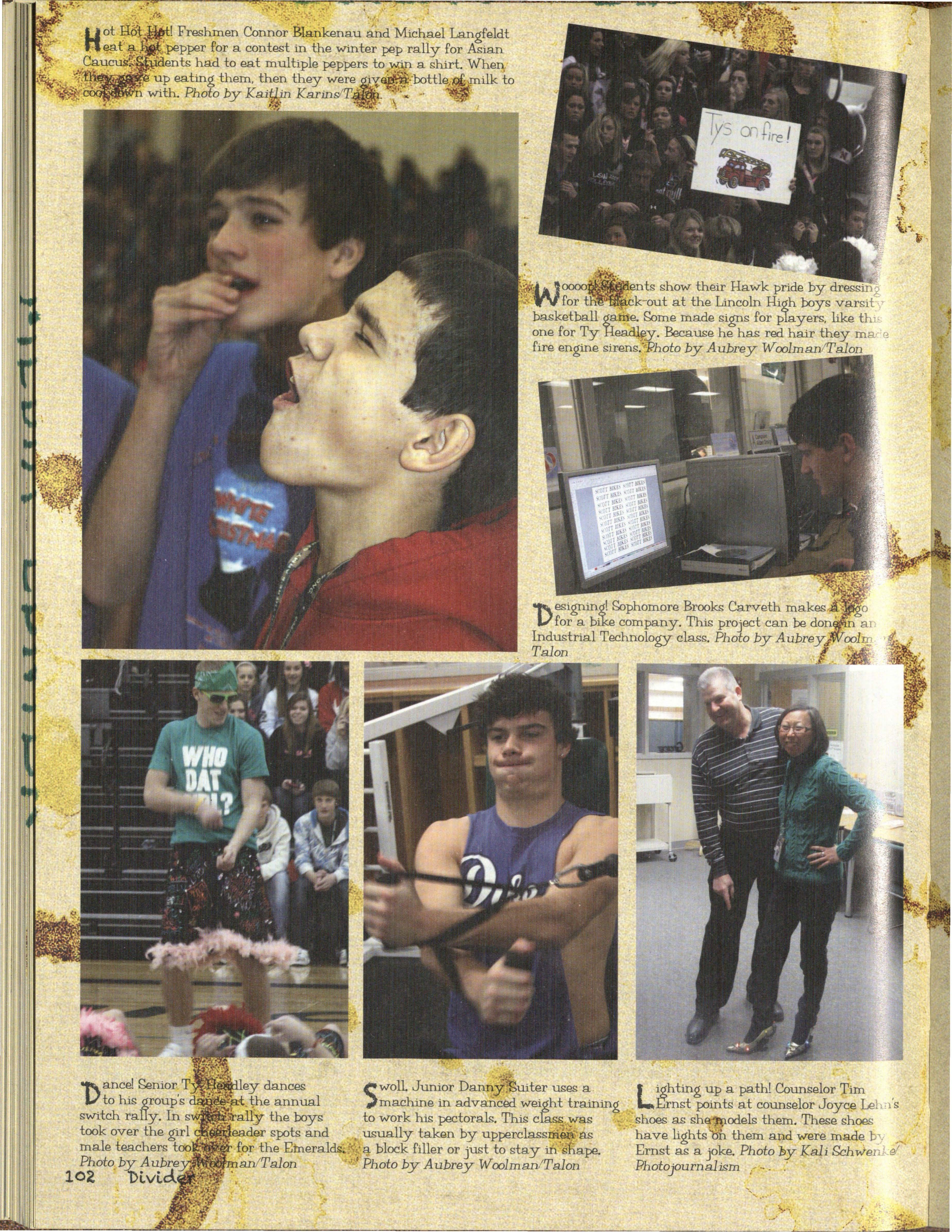 Also Hawks out witted our classes, by studying This book is about the past, present an<;t·· • long and hard on nights before tests, and even future of the Silver Hawks, from what we havei:>een ~: sometimes our own teachers, by texting in class and through , to where we are now, to what is ah:1CJ~J getting a'f:/ay. with it, qr sneaking out for lunch as an of us. The Hawks give advice on how to survive undercJossman withoul getting caught. years to come and- what we have gone through to ,. /we all oatlivedJhe school year, as we all suNive this year.