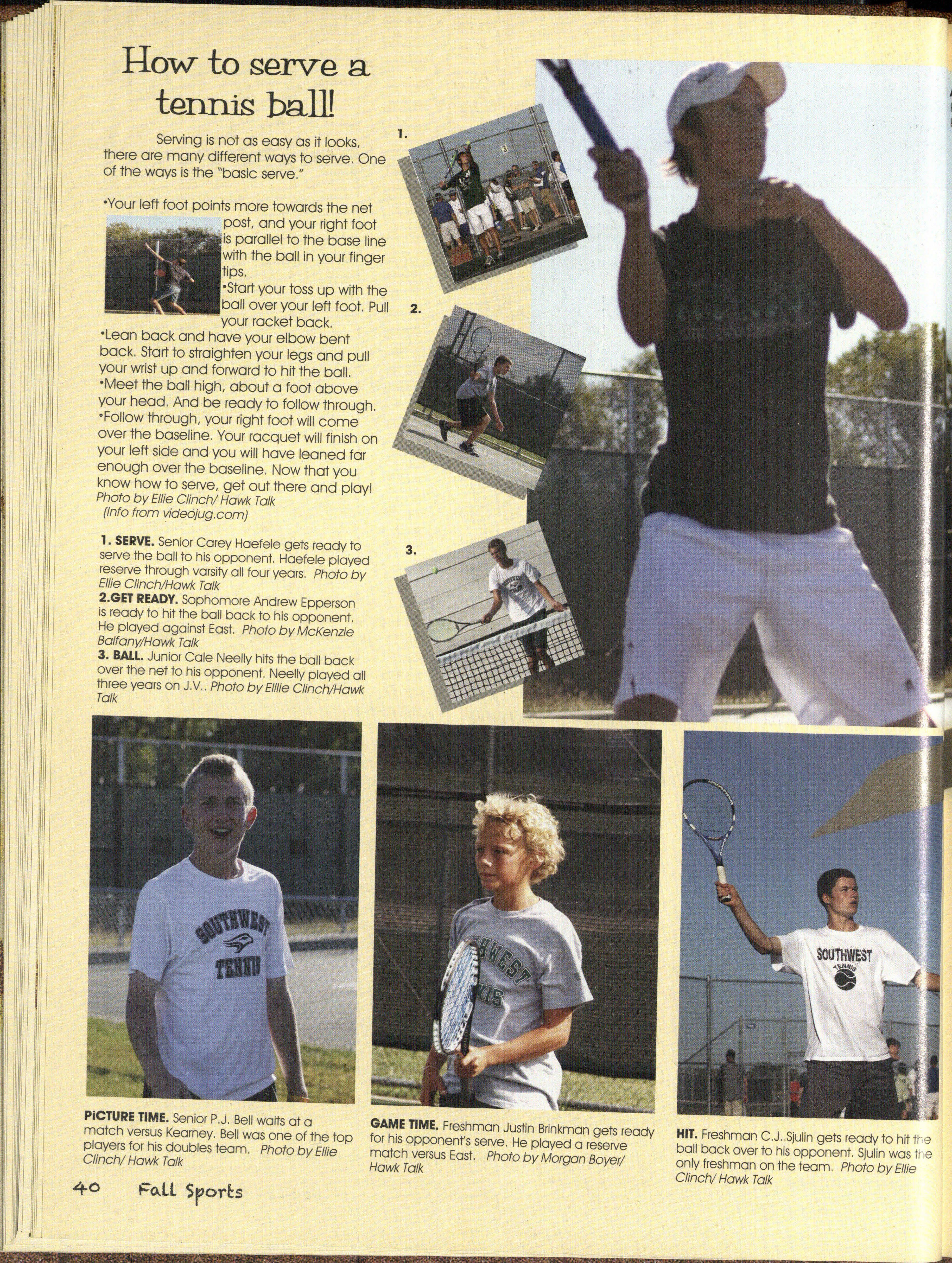 ,,-~ et Pumped! The ~~rve tennis team had a group chat with the players from the East tennis team before a match. Freshmen players Andrew~person and Justin Brinkman along witp their teem and coach Rick Stempsoh join in this pregame tradition. Photo by Kaitlil:I Karins/Talon