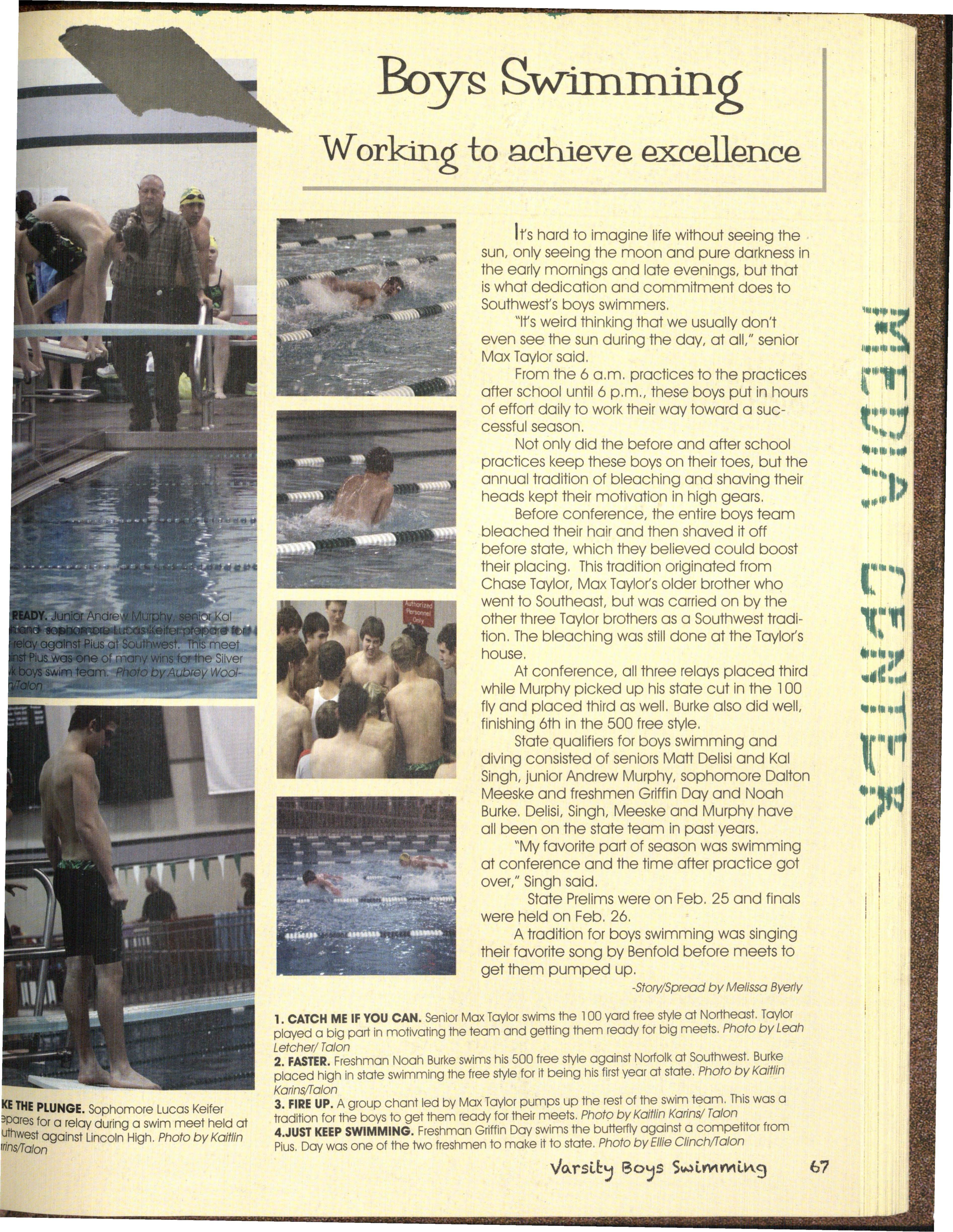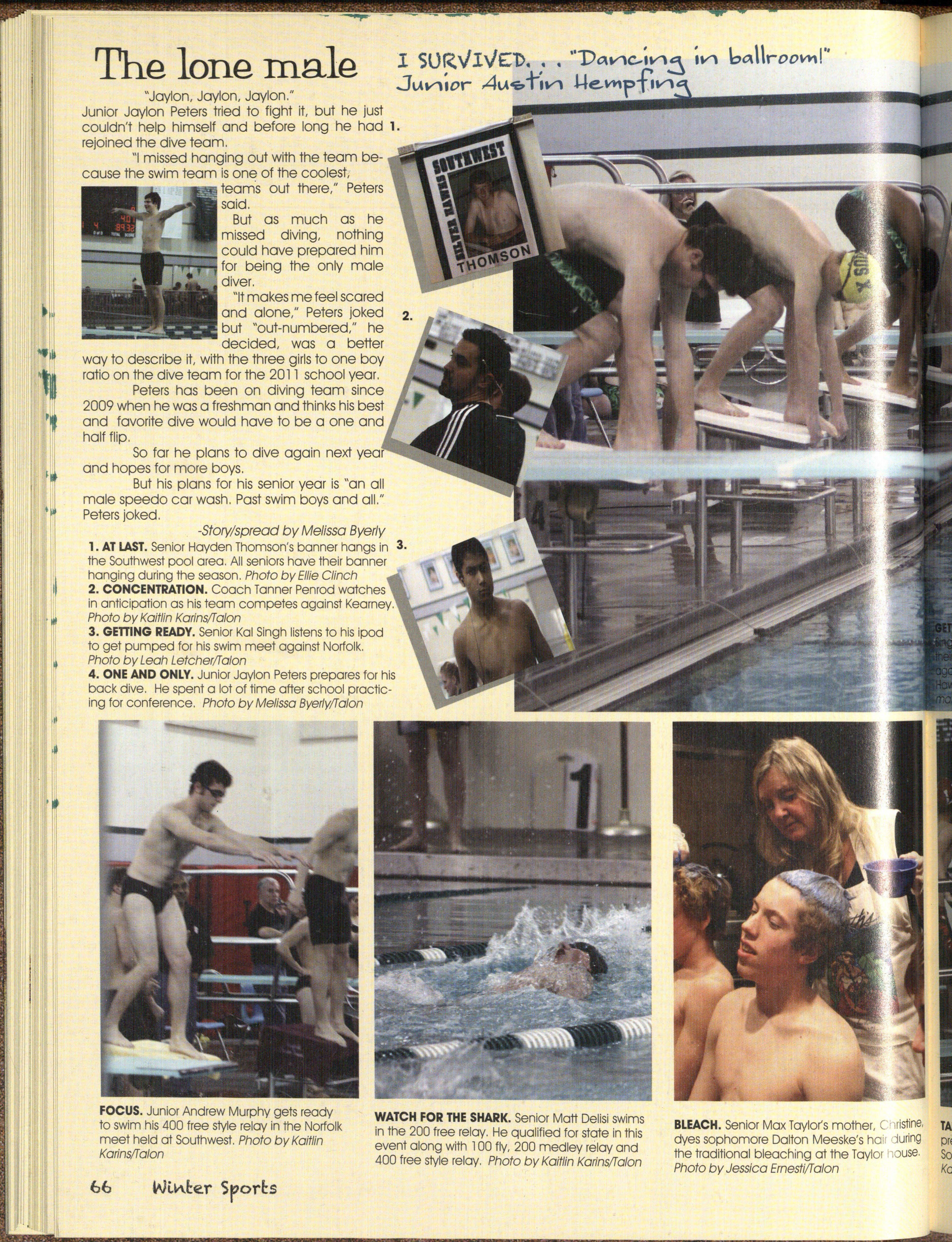 0 leach Boys! The 20 l l swim team gathered for the annual bleaching of the hair at •::>senior Max Taylor's house This is done before districts and then they shaved their ha ir for state. Photo by Jessica Ernesti/Taton