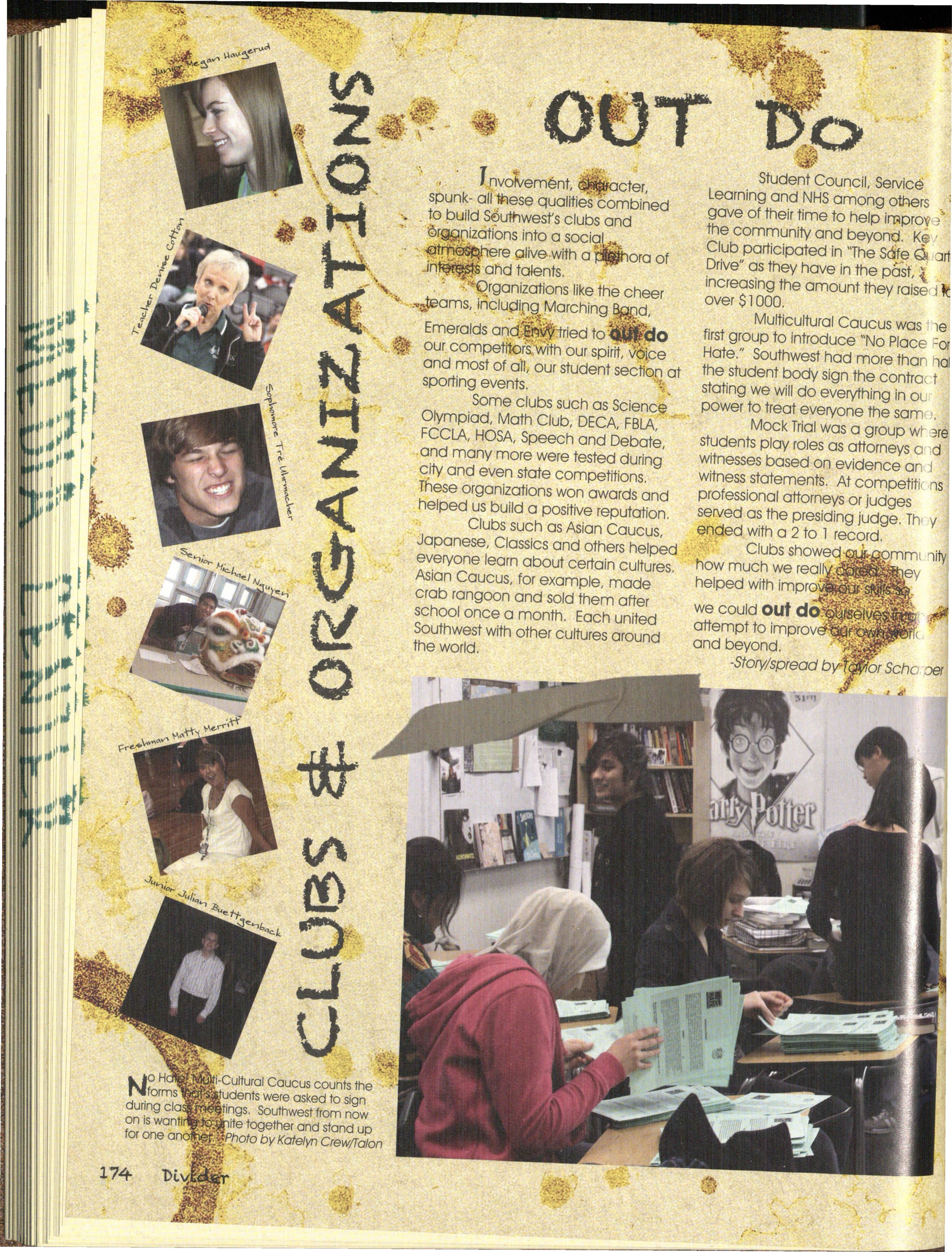 We took some guidance from last yearbook's theme with the "OUT" words for our section names. And we used those words in all of our dividers to keep it consistent.
