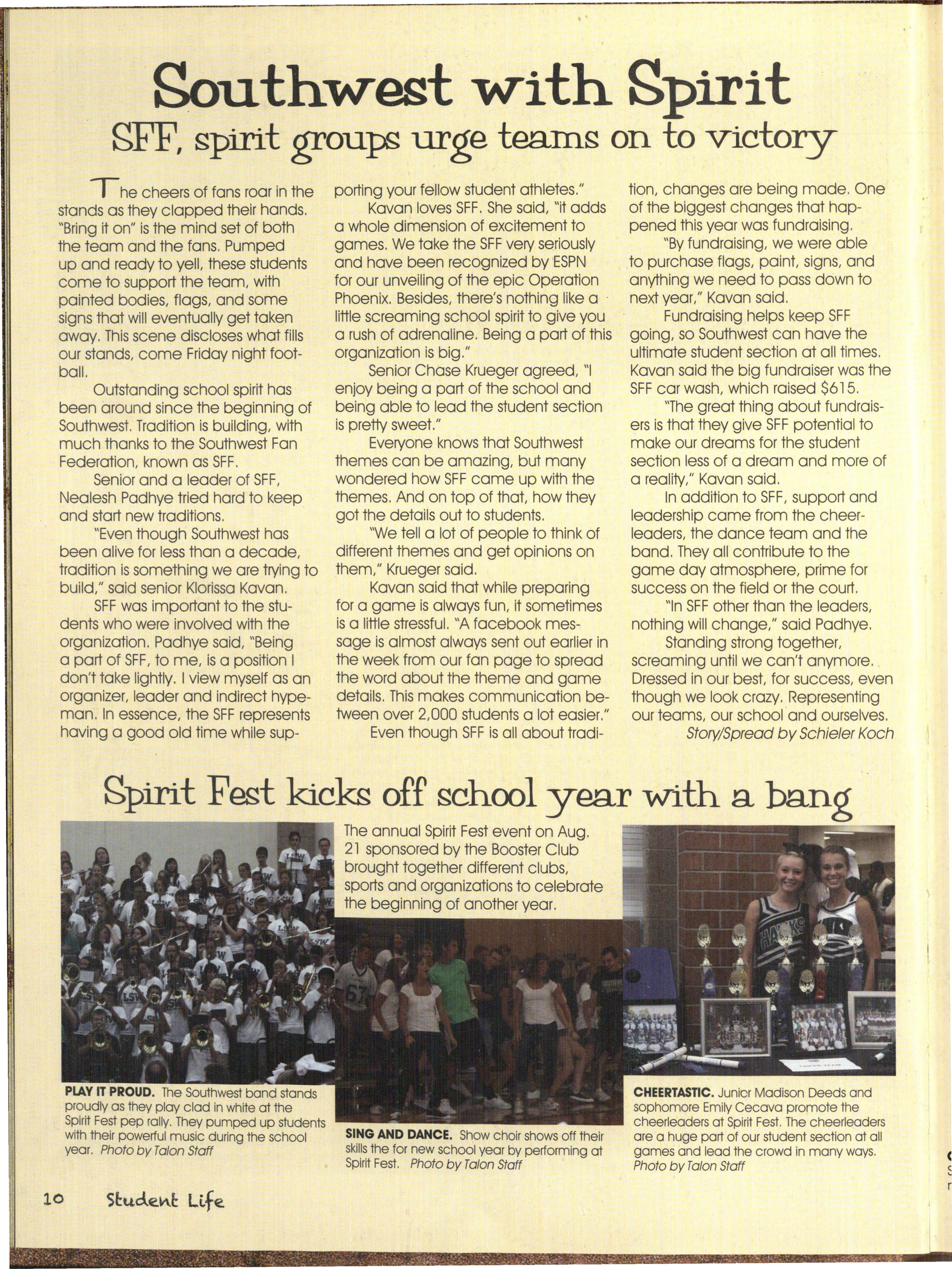 Outstanding school spirit has been around since the beginning of Southwest. Tradition is building, with much thanks to the Southwest Fan Federation, known as SFF.
