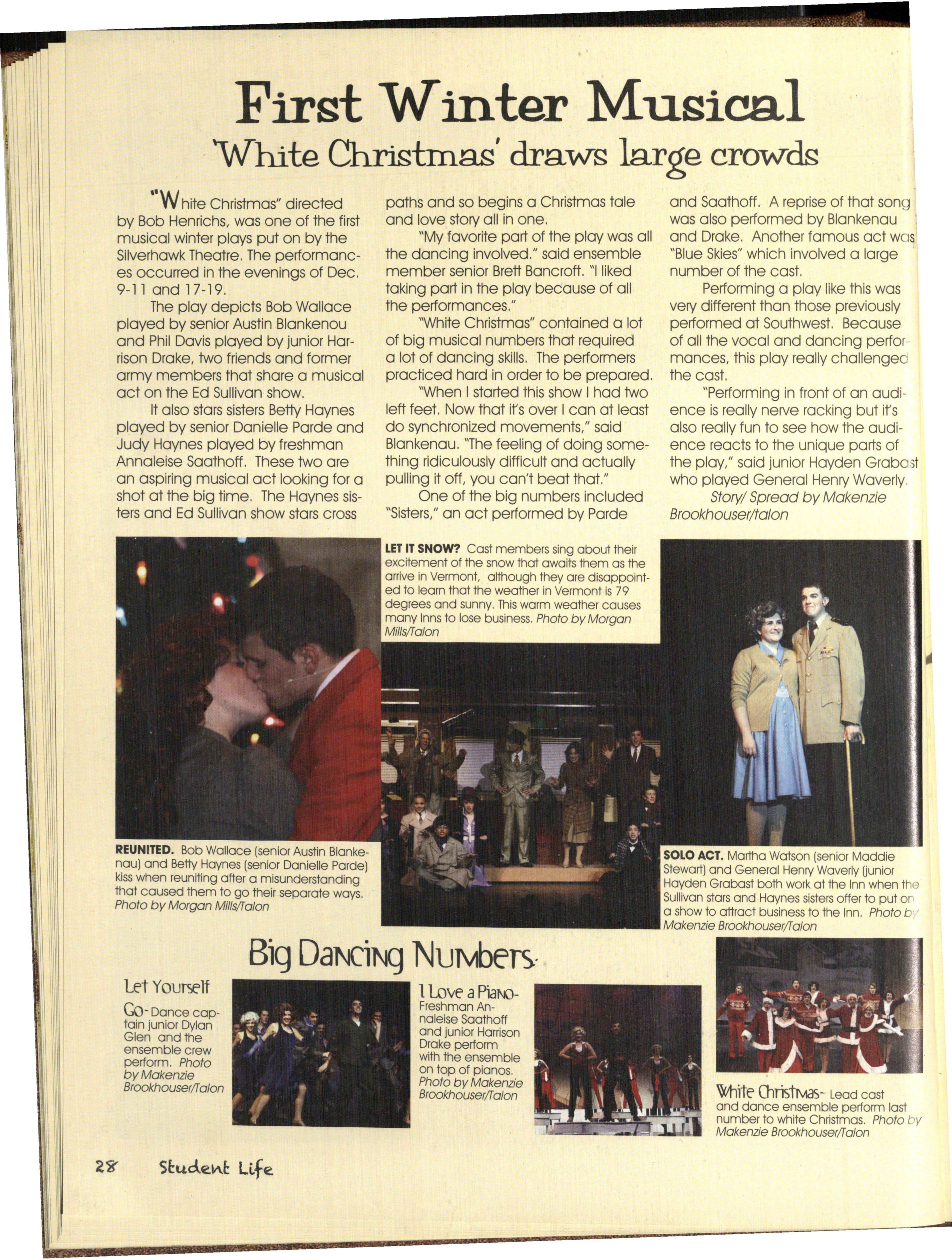 _;~ - :'. , . ·- sunshine were left from the summer. Silver Hawks also came out to ....a Juniors Connor Carstens and watch the winter musical, "A White Collin Stange had different views Christmas" which may have been less on being back in school. "It sucks!" controversial but was in no way less _ Carstens claimed as to where Stange outstanding. "likes being back and seeing everyone But ·hot only did our .1~eater hold again.'' attention on the audito.t( " e, but But Stange's favorite part of being the kids of the done.••,. back was "V-neck Frid9ys and cheering people come out to 1 • 1 J~ on my Silver Hawk~! Even _Carste~s raise money for the " 1 _" • er couldn't disagree with cheering on his Drive." The Powder PL:i • , · e also fellow Silver Hawks and threw in a "Go helped with an entry fer l $2 or tyvo Hawks!" cans. I