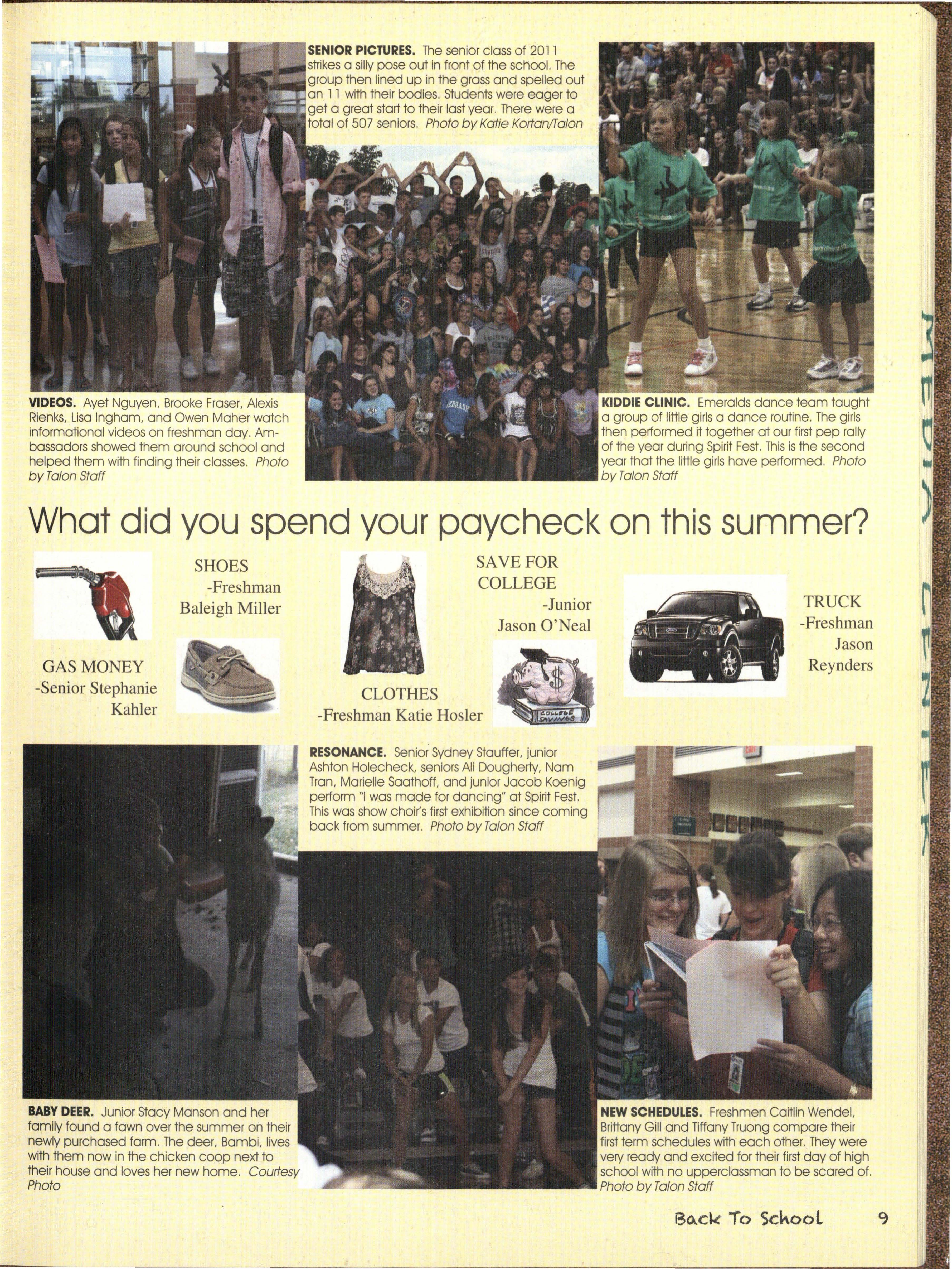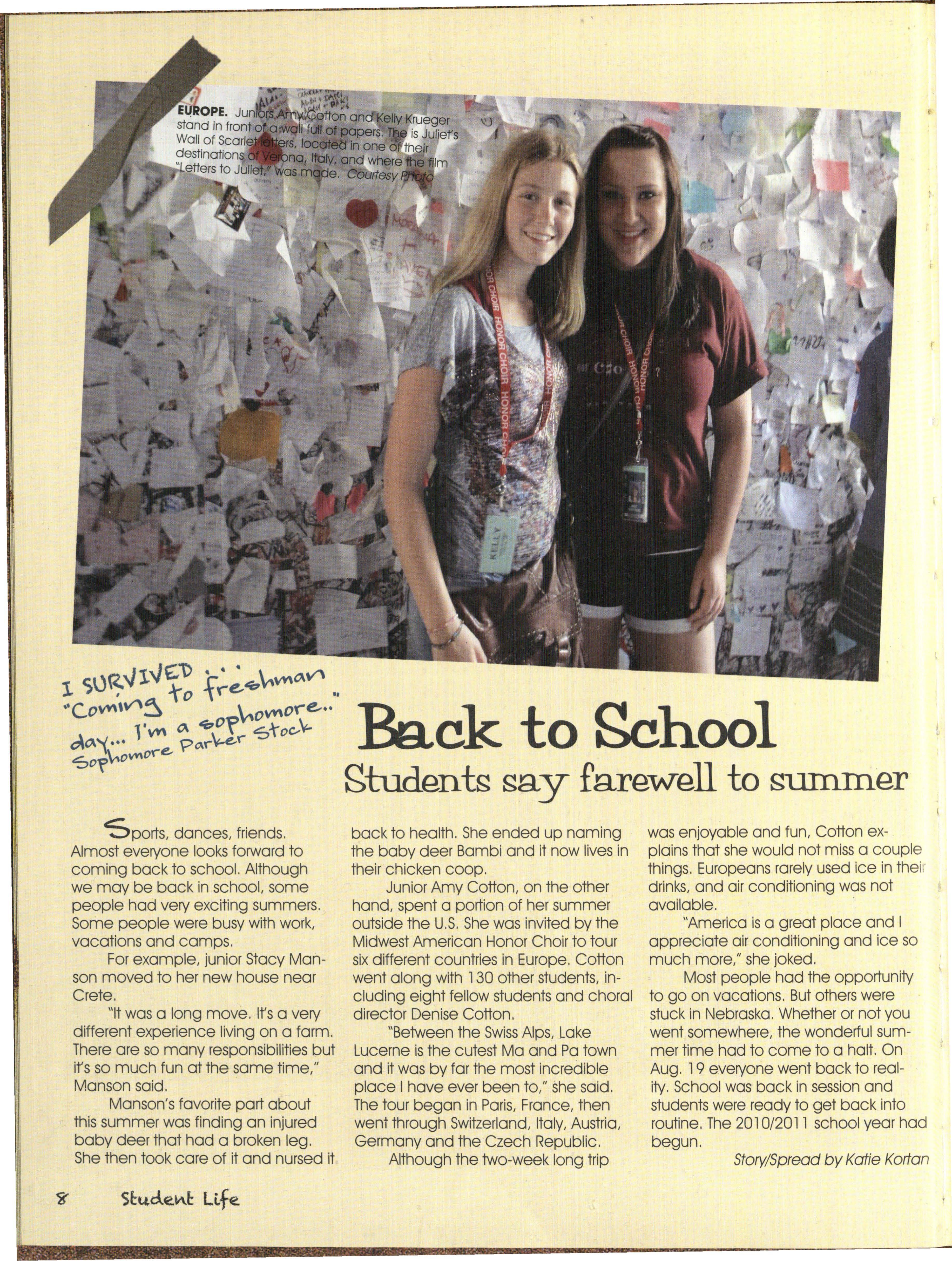 Most people had the opportunity to go on vacations. But others were stuck in Nebraska Whether or not you went somewhere, the wonderful summer time had to come to a halt. On Aug. l 9 everyone went back to reality. School was back in session and students were ready to get back into routine. The 20 l 0/20 l l school year had begun.