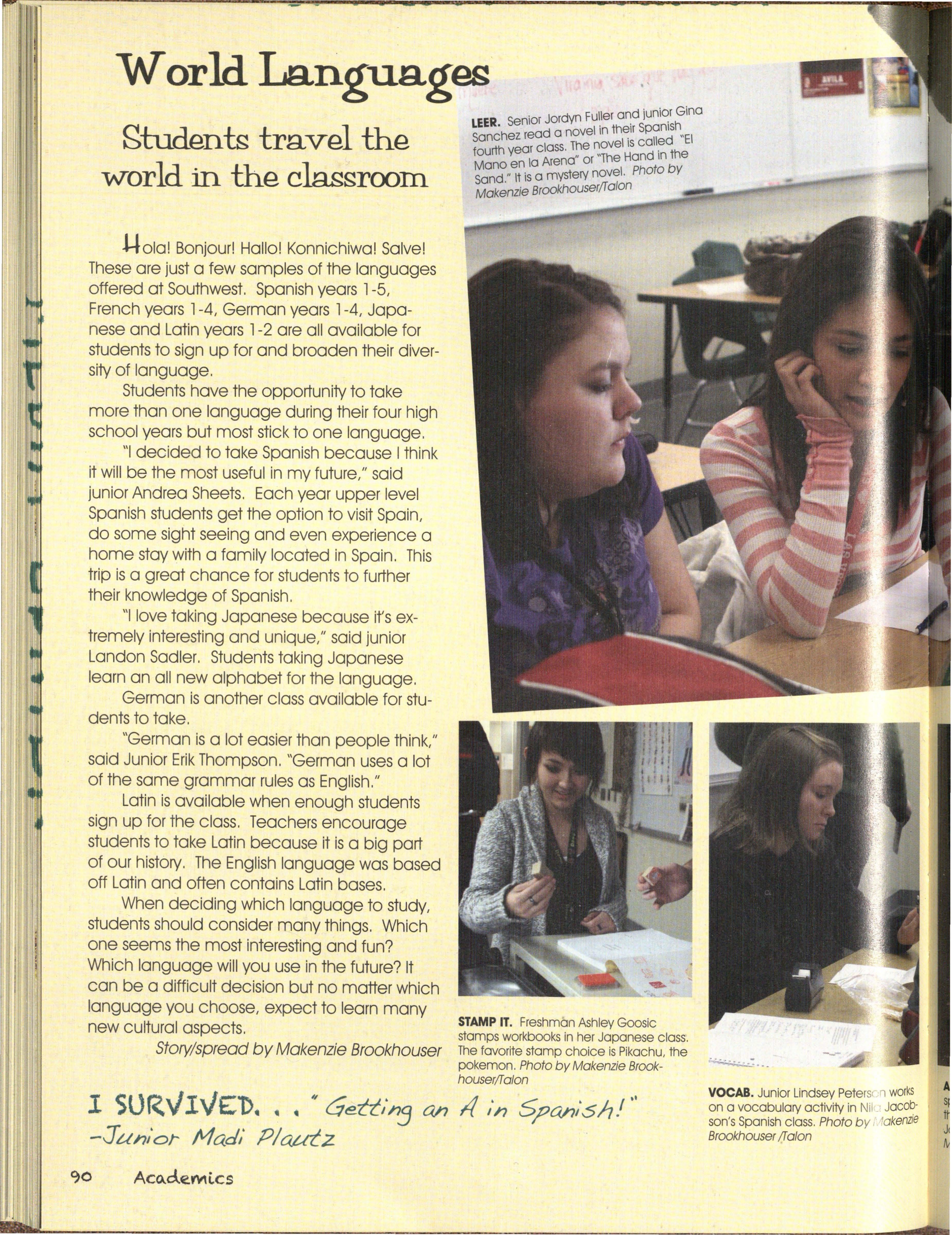 "Even though Southwest has been alive for less than a decade, tradition is something we are trying to build," said senior Klorissa Kavan