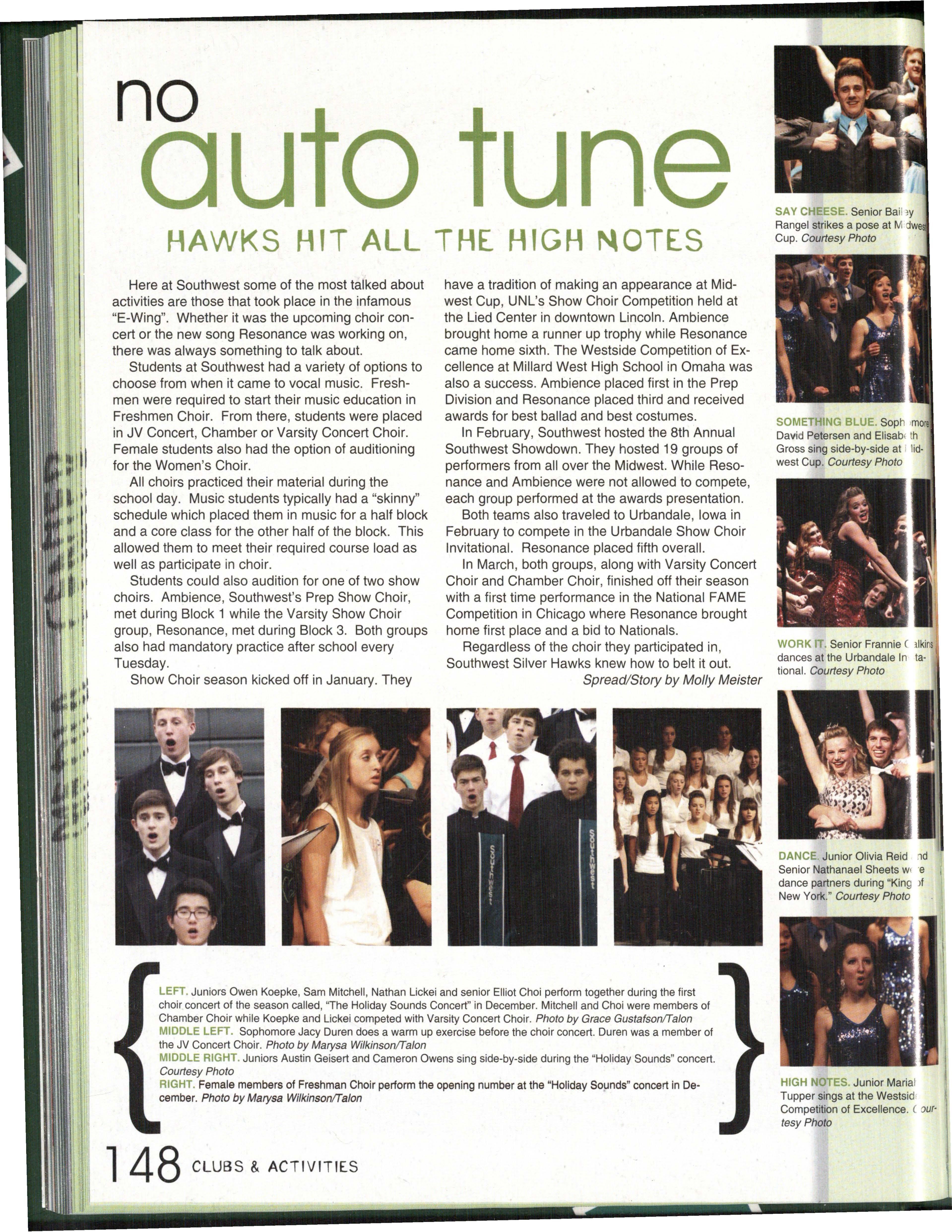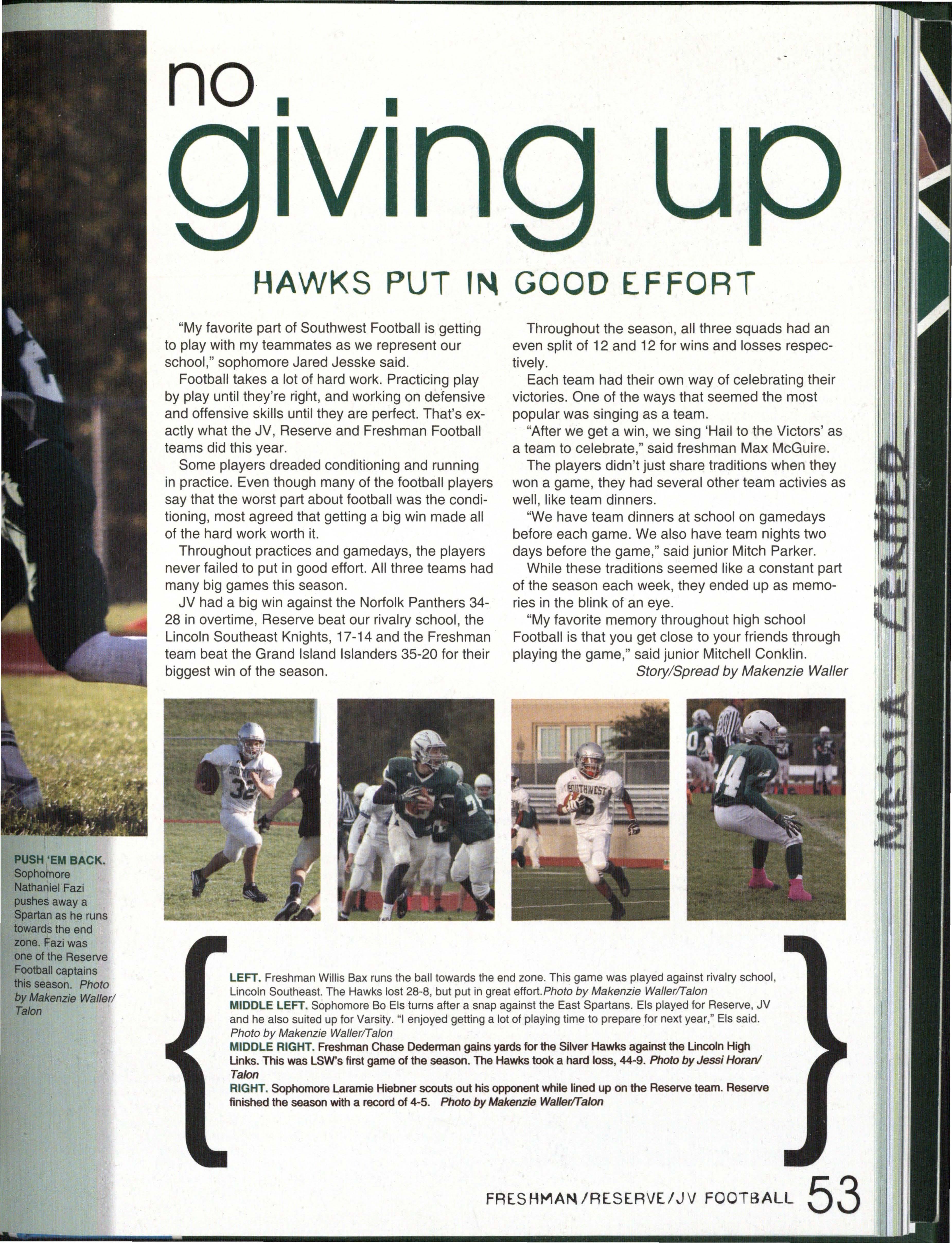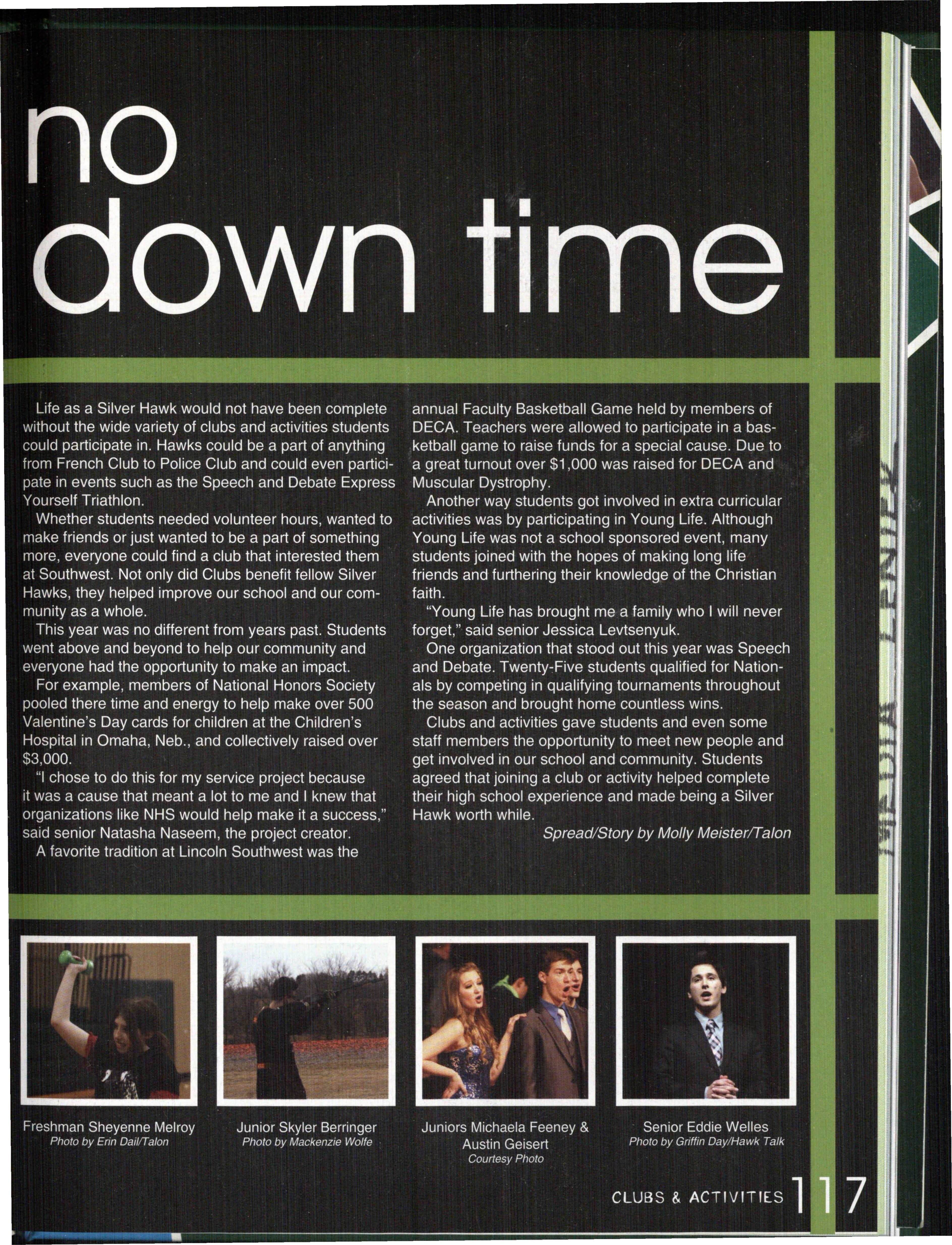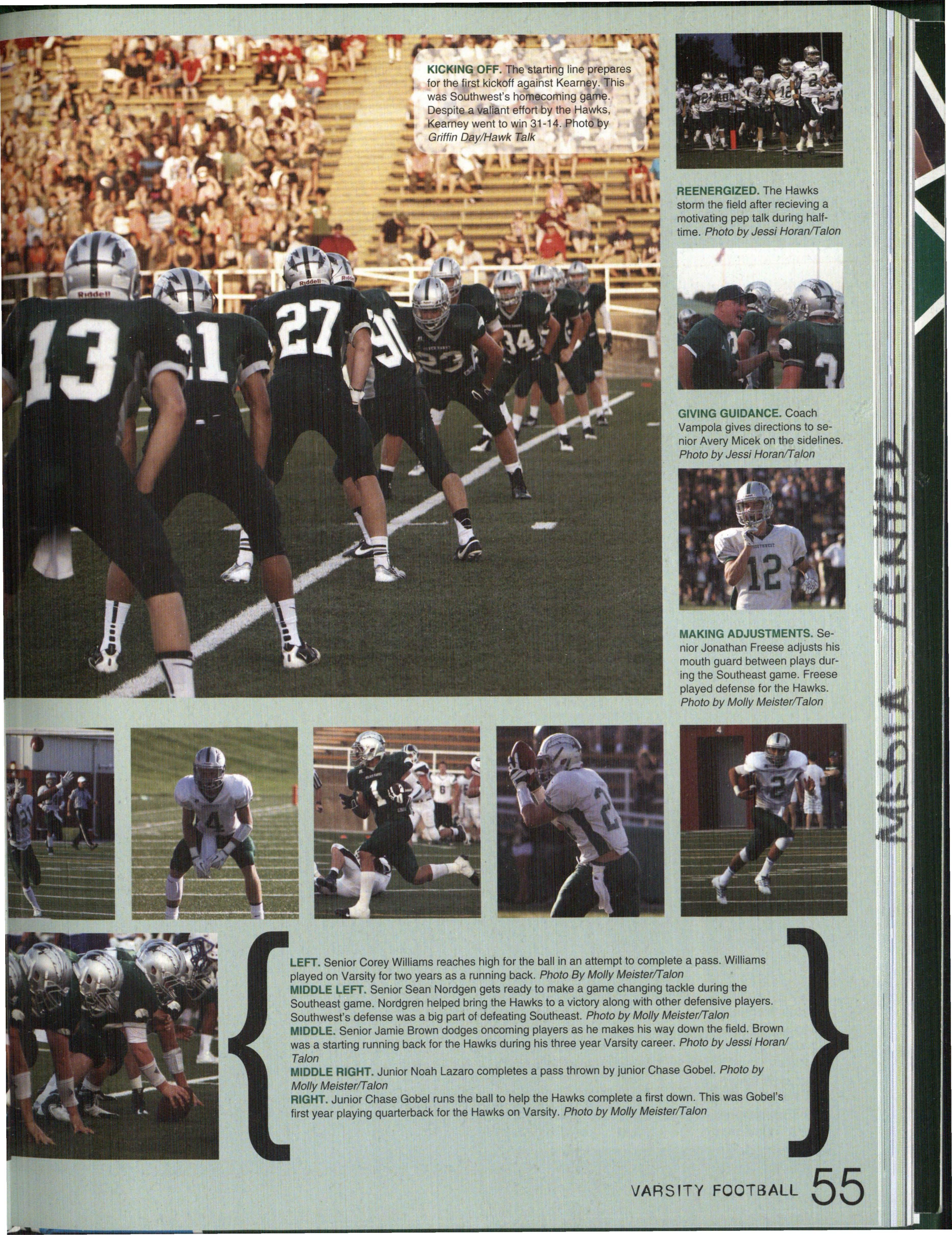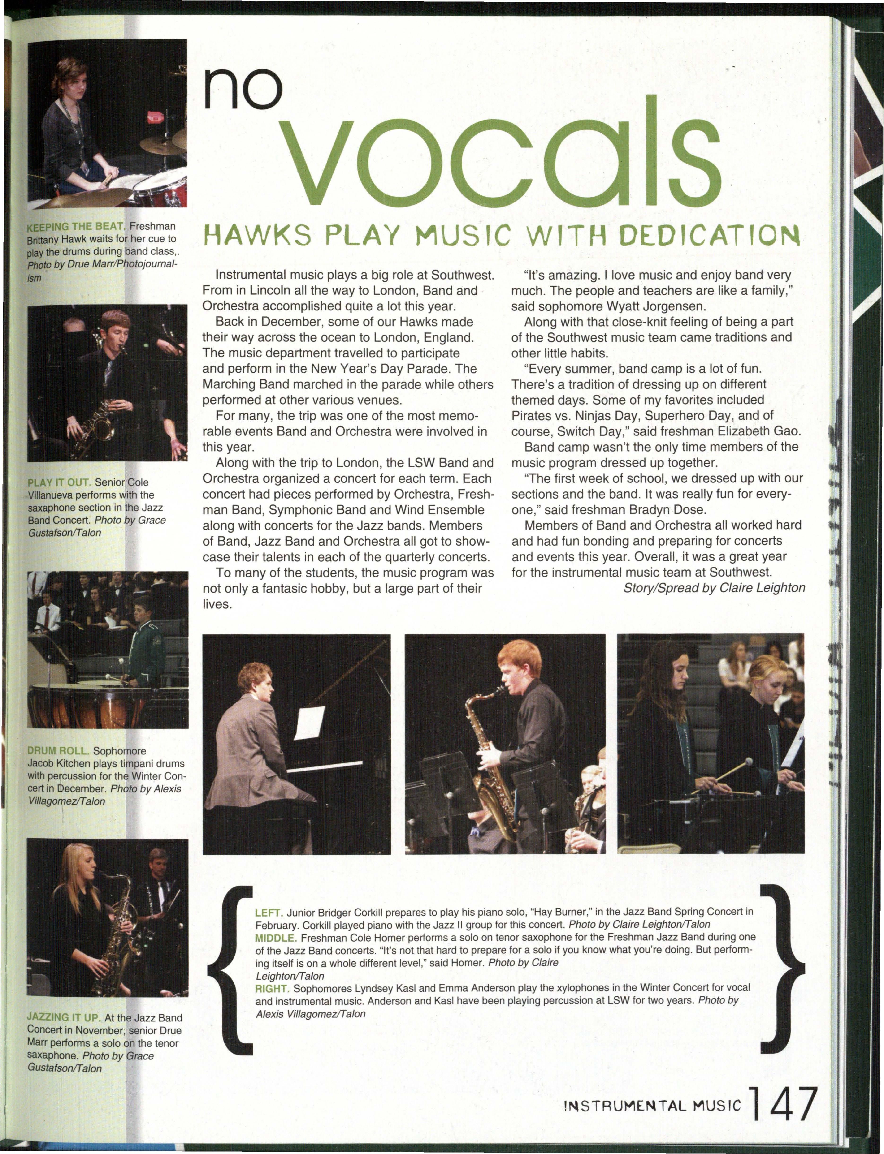 Photo by Jessi Horan/Talon MAKING WAVEc,, Junior Mitchell Charron swims the butterfly at the first swim meet of the season against Lincoln East. Southwest won the meet 103-80 . Photo by Grace Gustafson/Talon FINDING MISSINu PIEr r'" Senior Baleigh Miller works to construct muscles on her " maniken " for Differentiated Anatomy