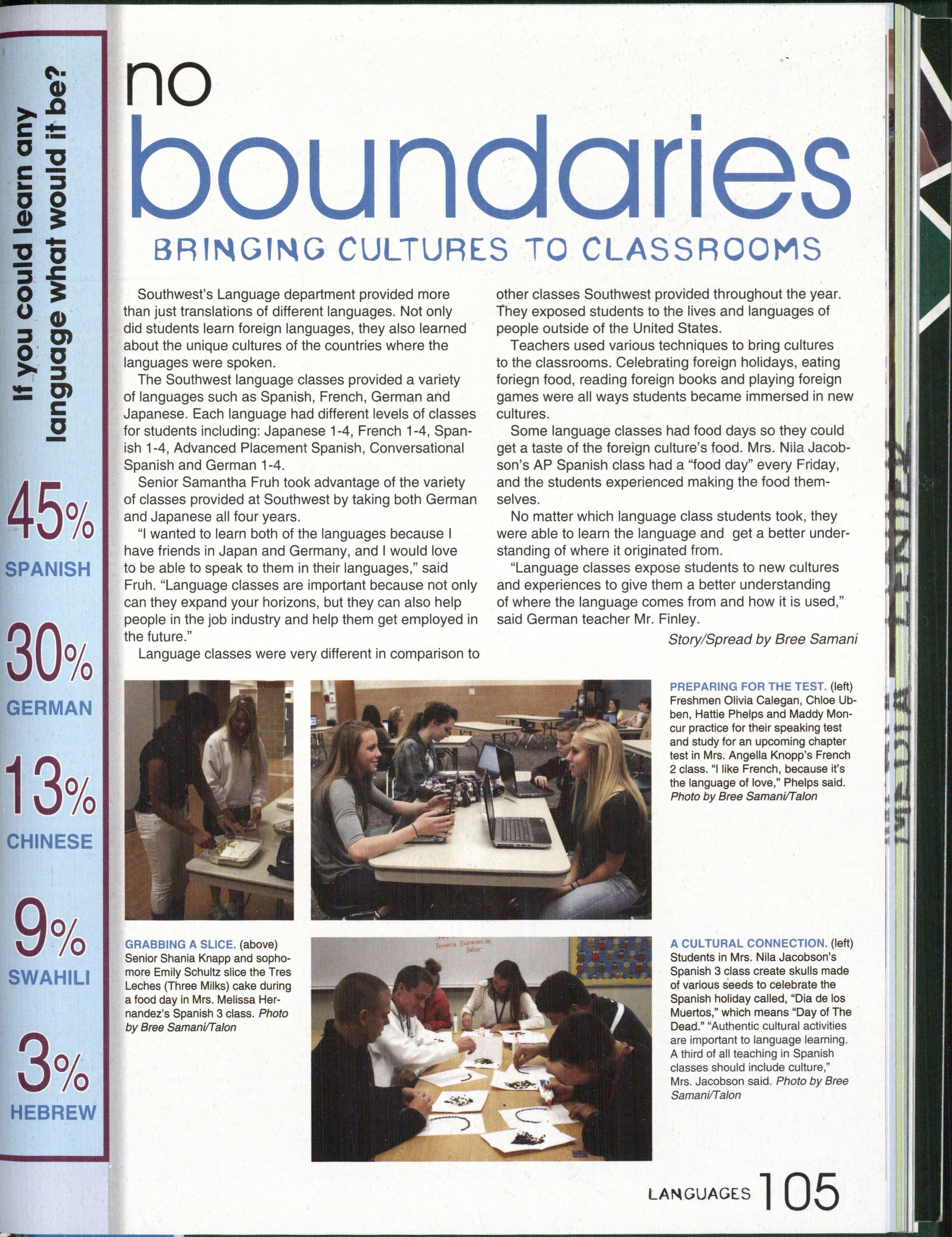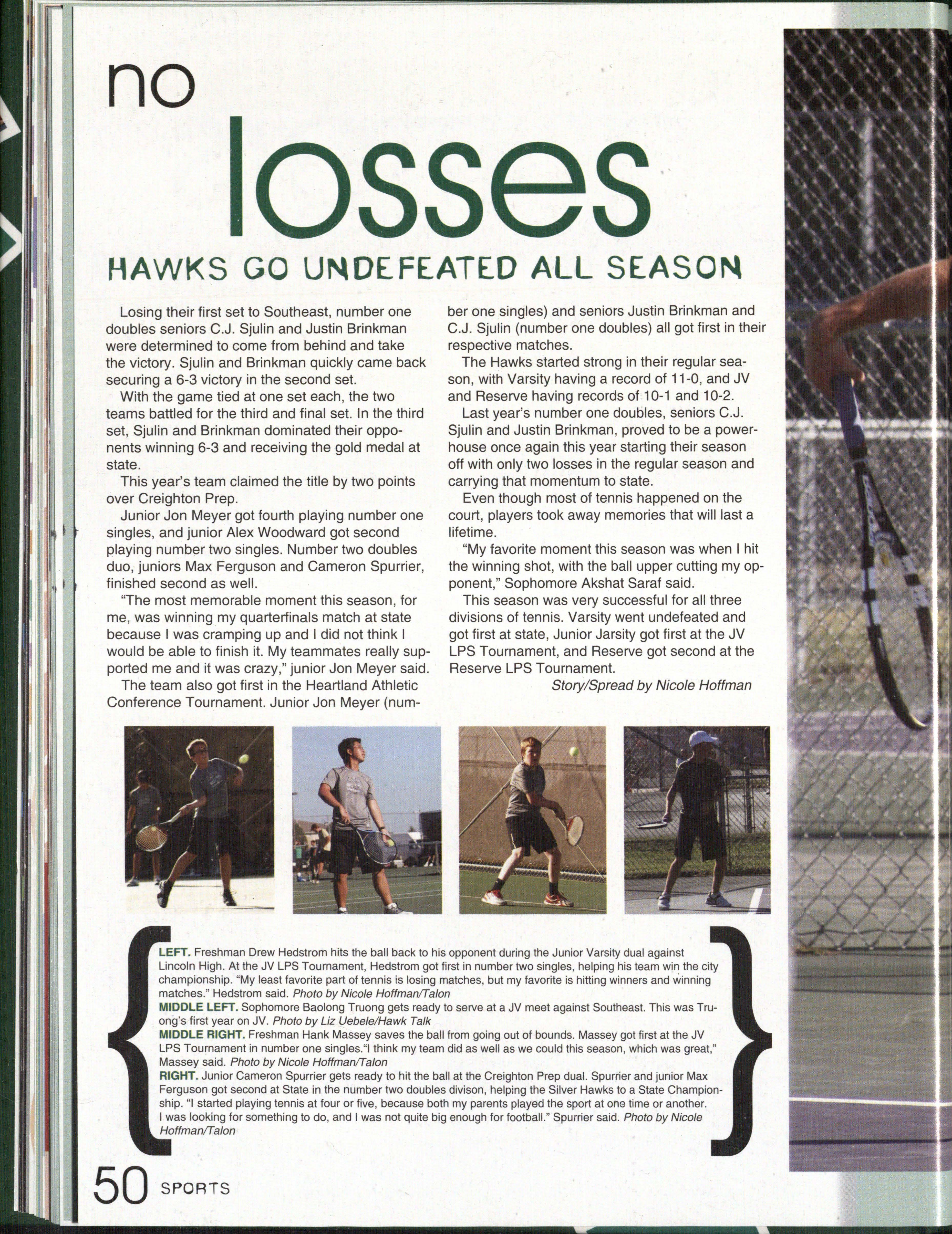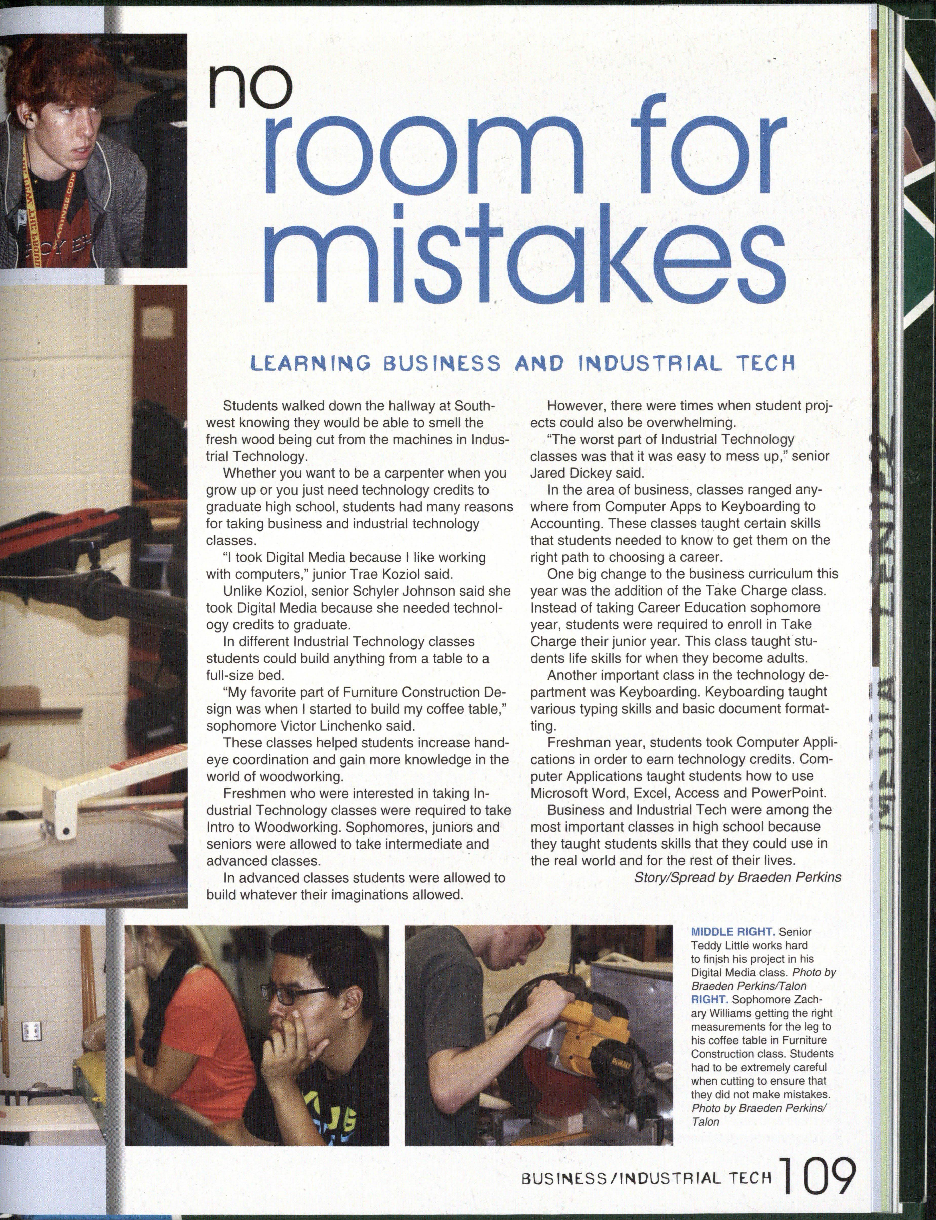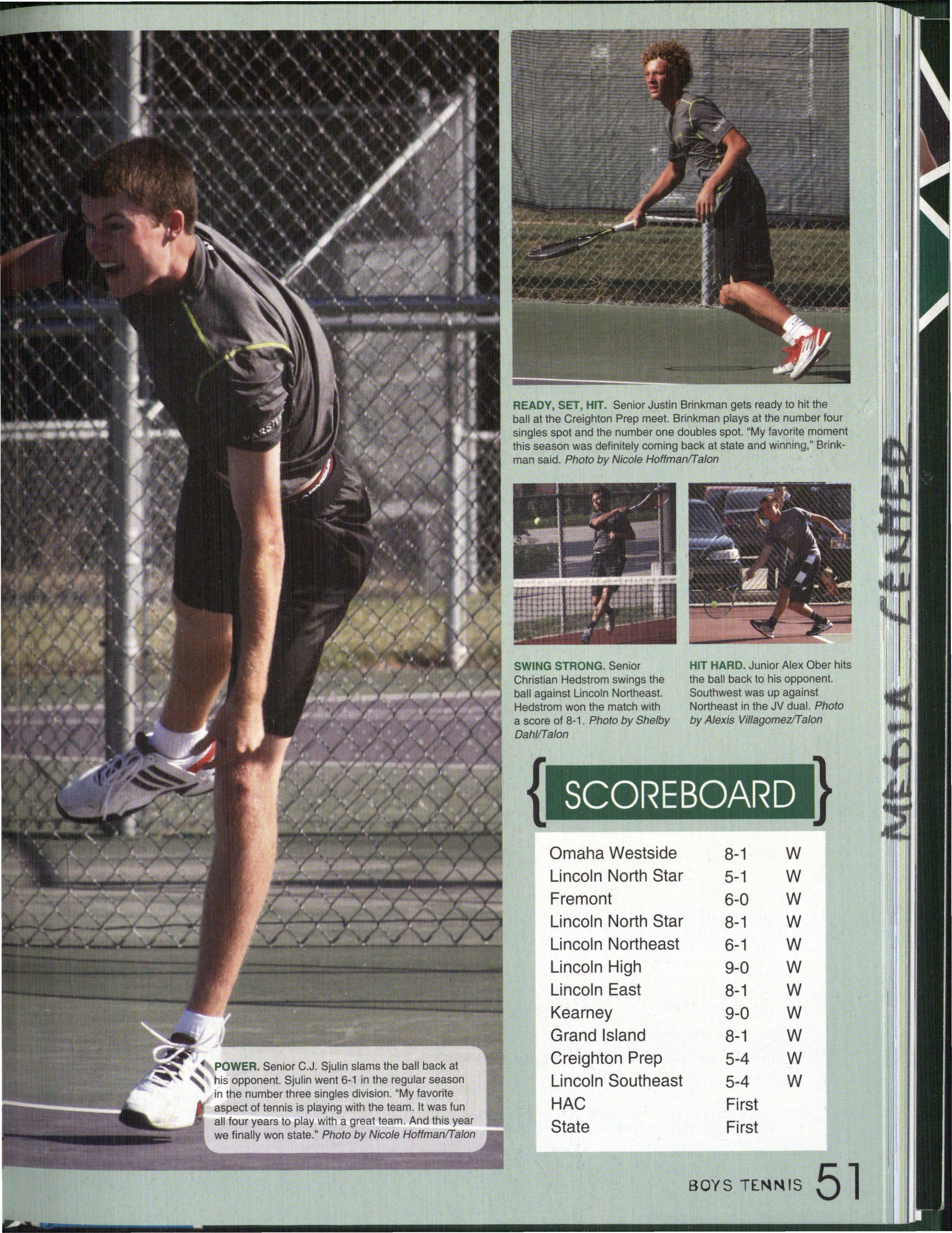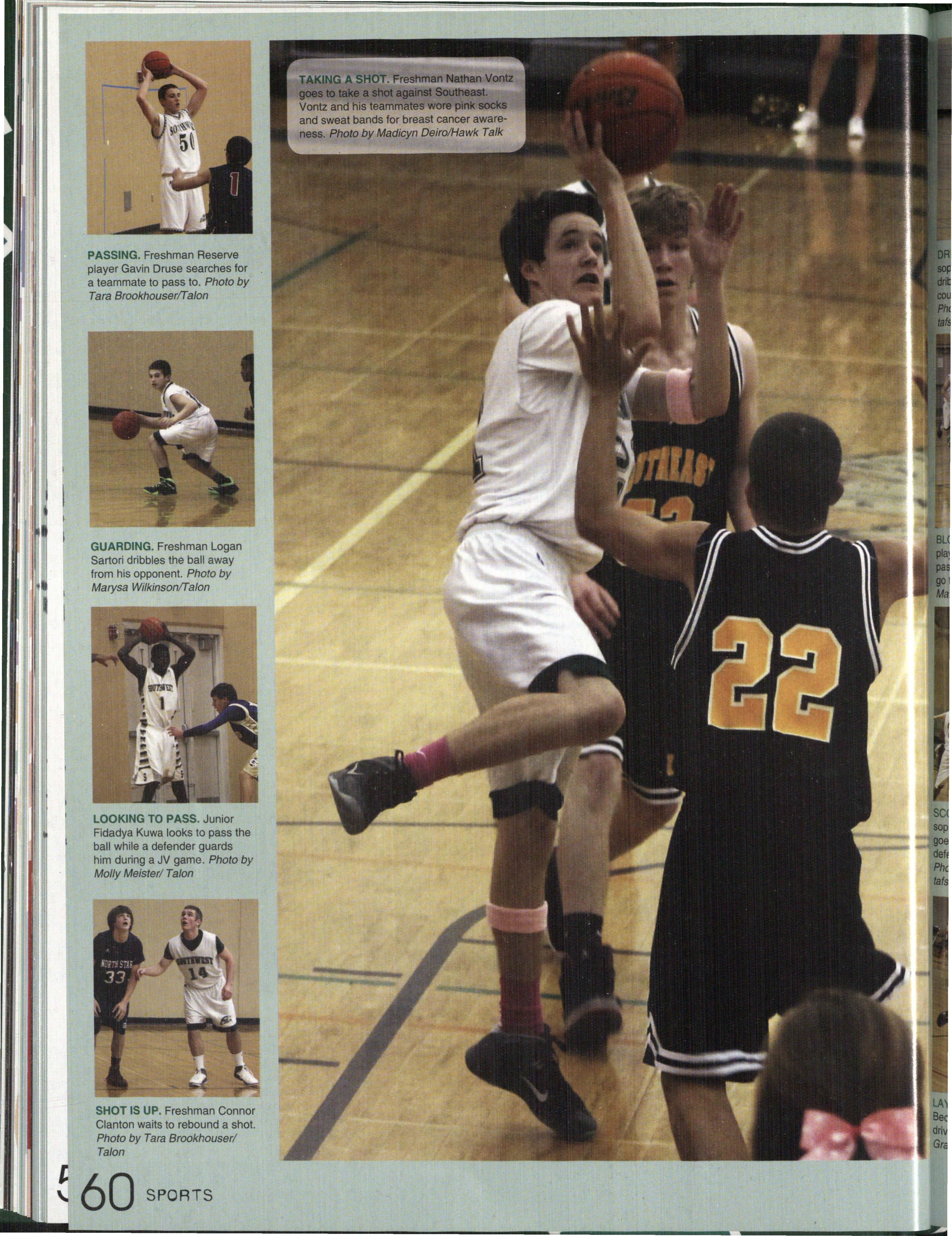 Photo by Jessi Horan/Talon MAKING WAVEc,, Junior Mitchell Charron swims the butterfly at the first swim meet of the season against Lincoln East. Southwest won the meet 103-80 . Photo by Grace Gustafson/Talon FINDING MISSINu PIEr r'" Senior Baleigh Miller works to construct muscles on her " maniken " for Differentiated Anatomy