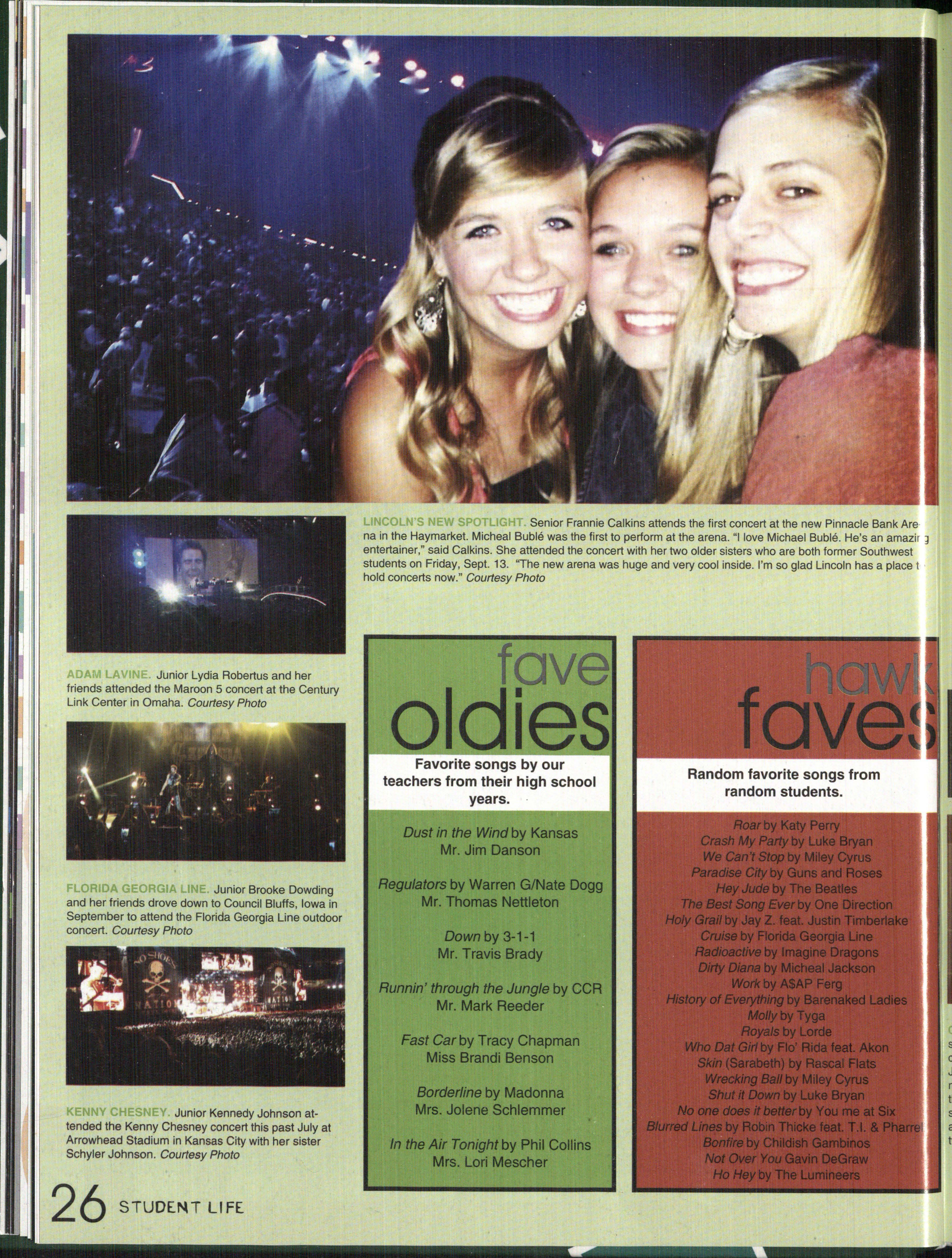 Sophomore Erika Etzelmiller, senior Rachel Burress and sophomores Shelby McKee, Brooke Herbert and AnnMarie Marlow (left) pose before club at Younglife camp. According to the girls, they had the best week