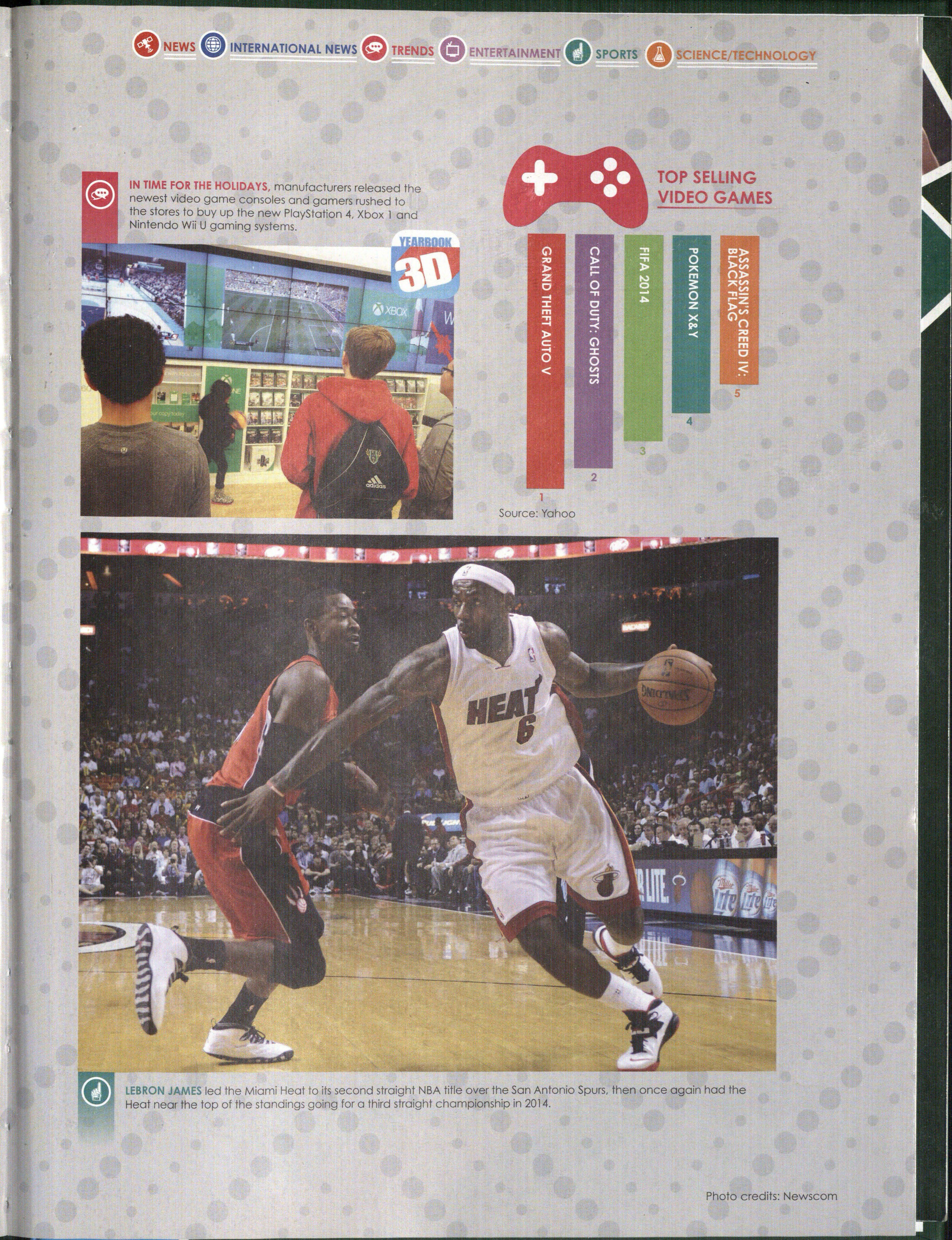 LEBRON JAMES led the Miami Heat to its second straight NBA title o~er th_e ~an Antonio Spurs, then once again had the Heat near the top of the standings going for a third straight champ1onsh1p 1n 2014.