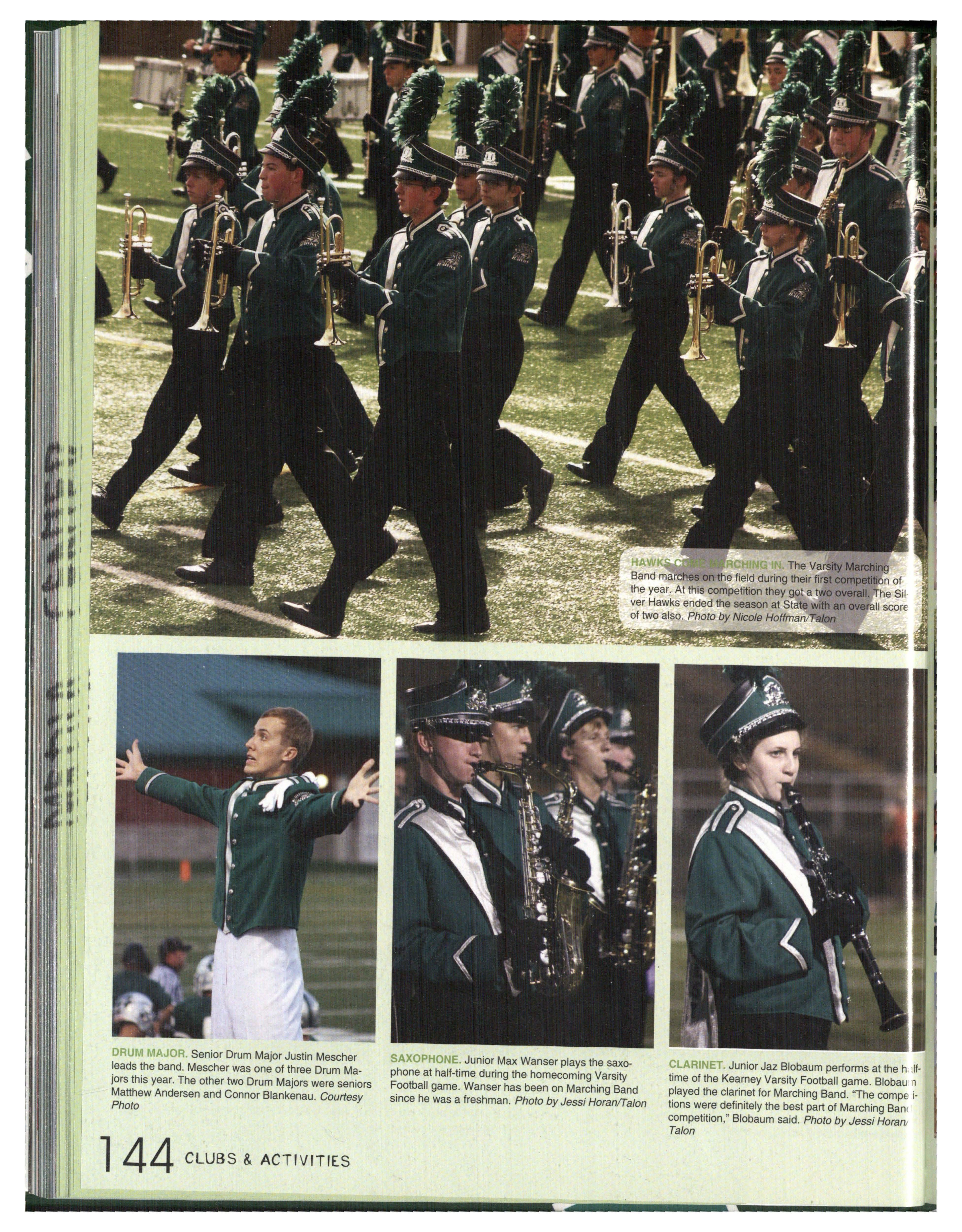 MAJOR TALENTS. Senior Connor Blankenau directs the band at a football game Blankenau and seniors Justin Mescher and Matt Andersen were the Varsity Drum Majors