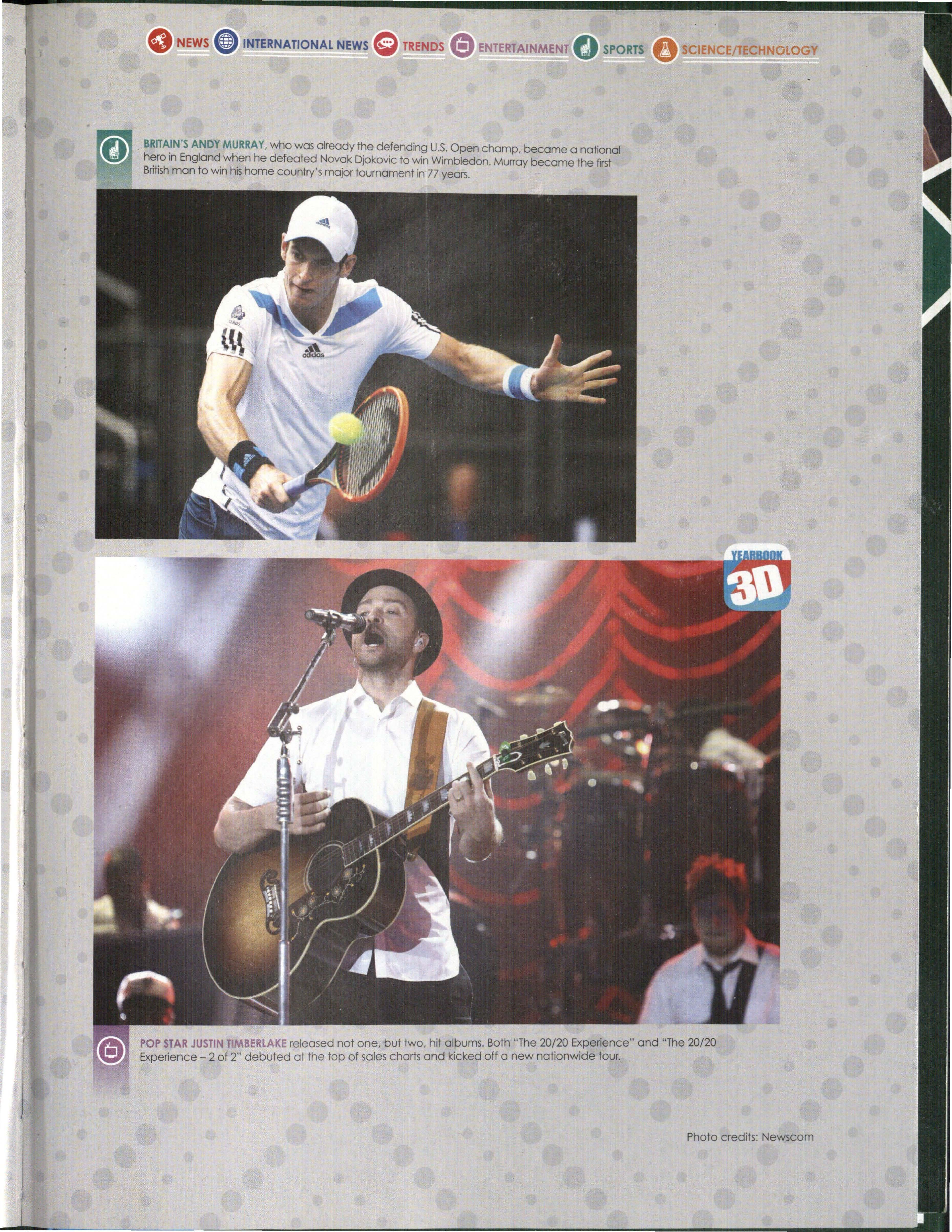 POP STAR JUSTIN BERLAKE released not one, but two, hit albums. Both "The 20~20 E~perience" and "The 20/20 Experience - 2 of 2" debuted at the top of sales charts and kicked off a new nat1onw1de tour.