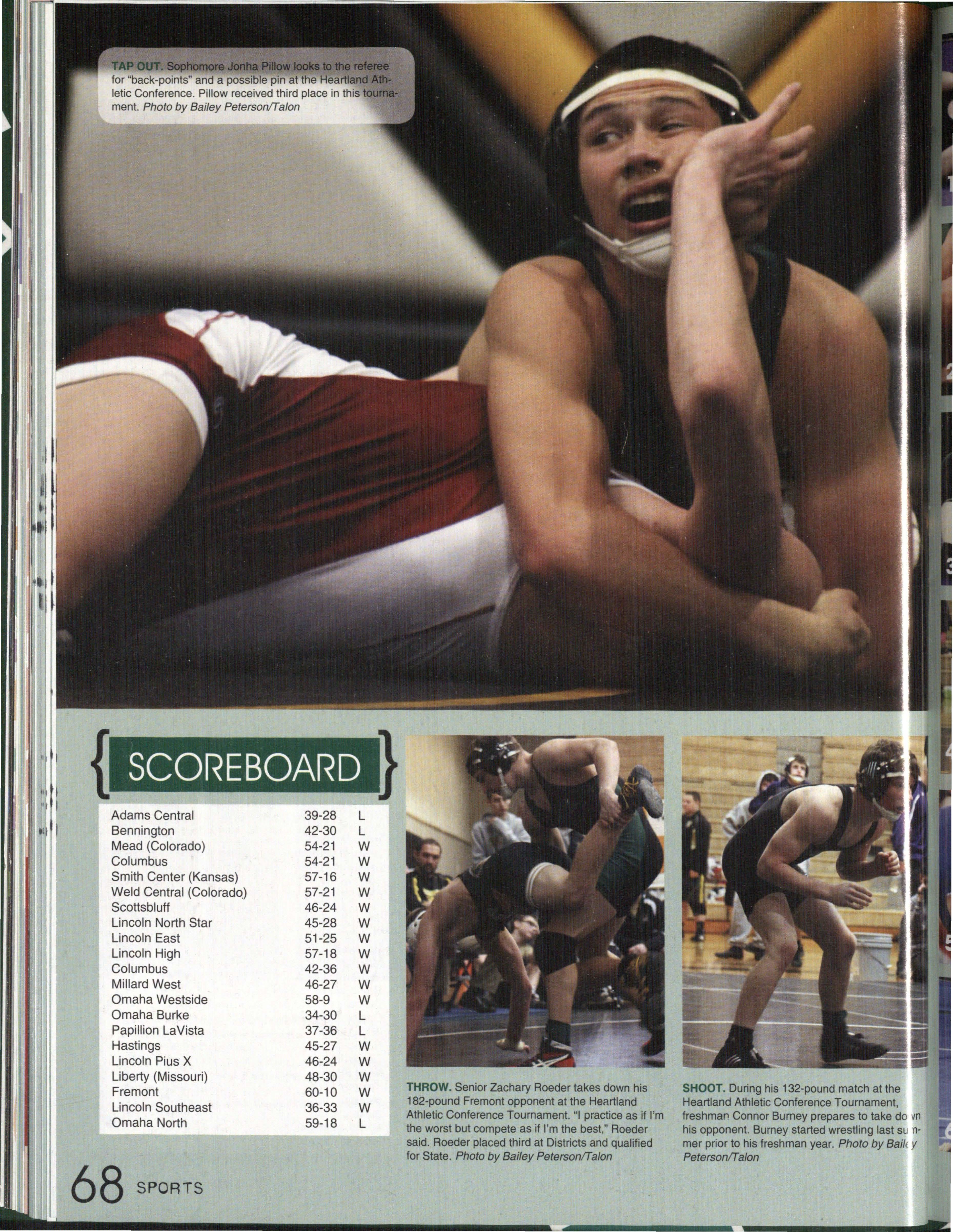 GOING IN FOR THE KILL. Freshman Connor Burney gets ready to wrestle at a meet in Kearney. The Silver Hawks placed fourth out of 10 teams at the invite