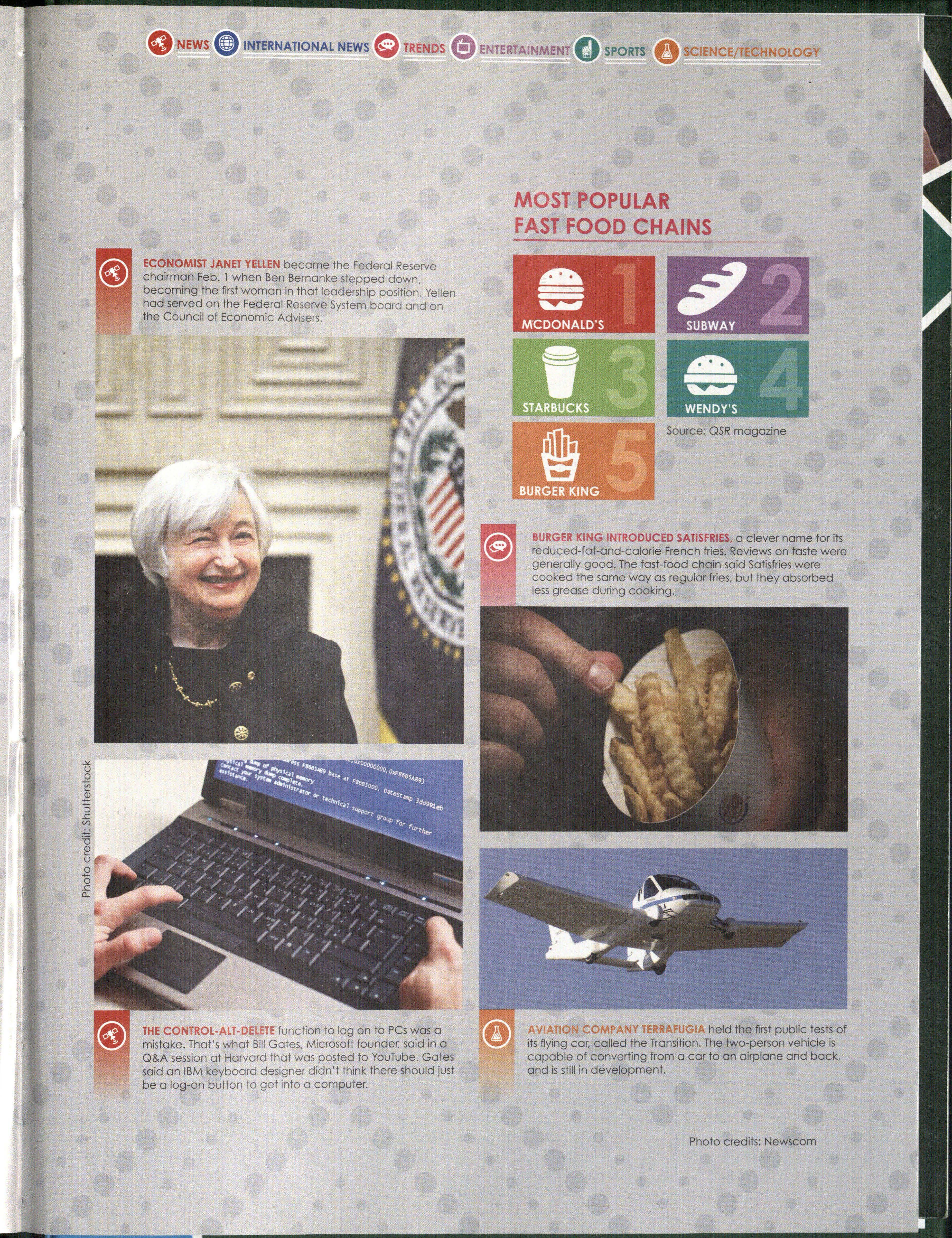 ECONOMIST JANET YELLEN became the Federal Reserve chairman Feb. 1 when Ben Bernanke stepped down, becoming the first woman in that leadership position. Yellen had served on the Federal Reserve System board and on the Council of Economic Advisers.