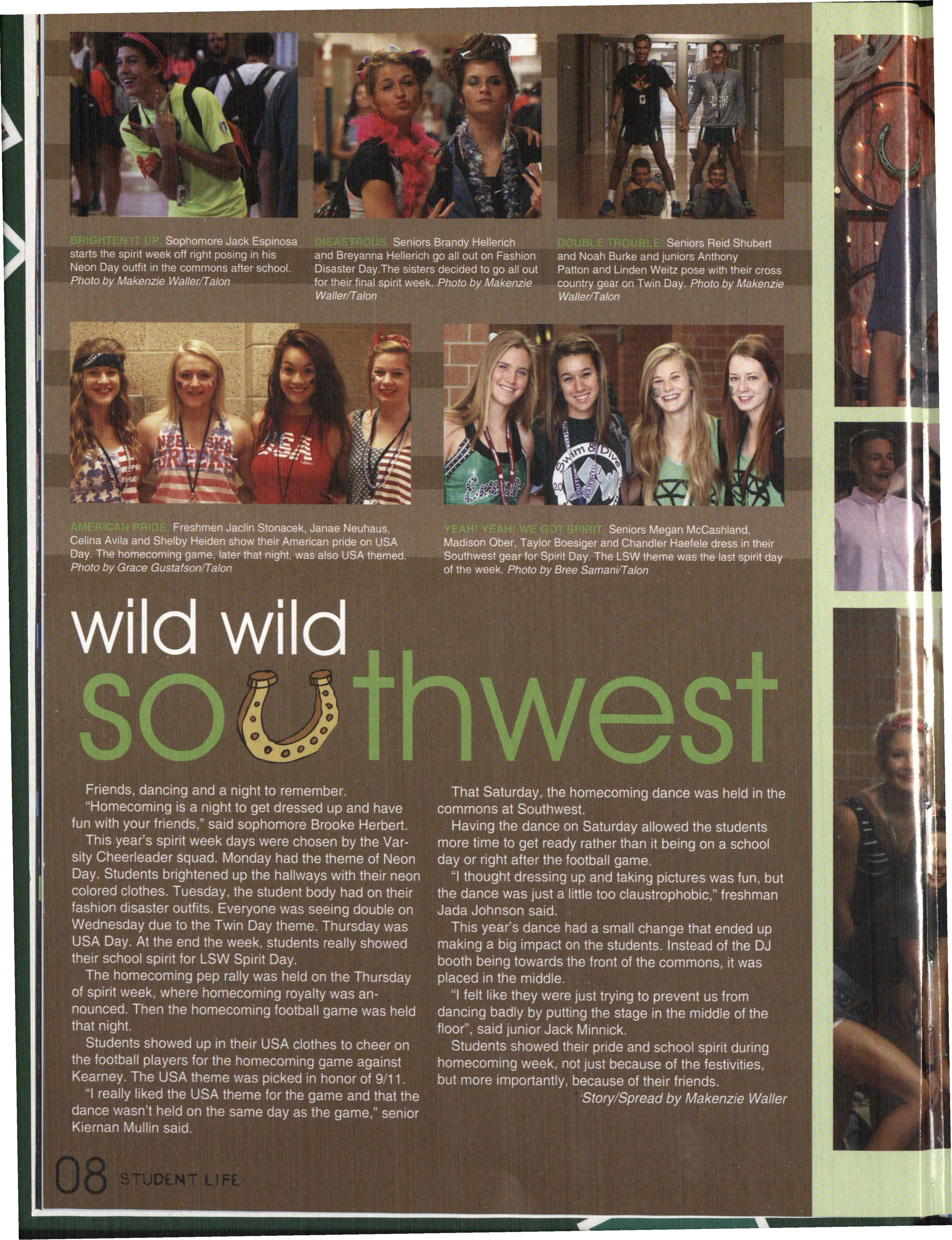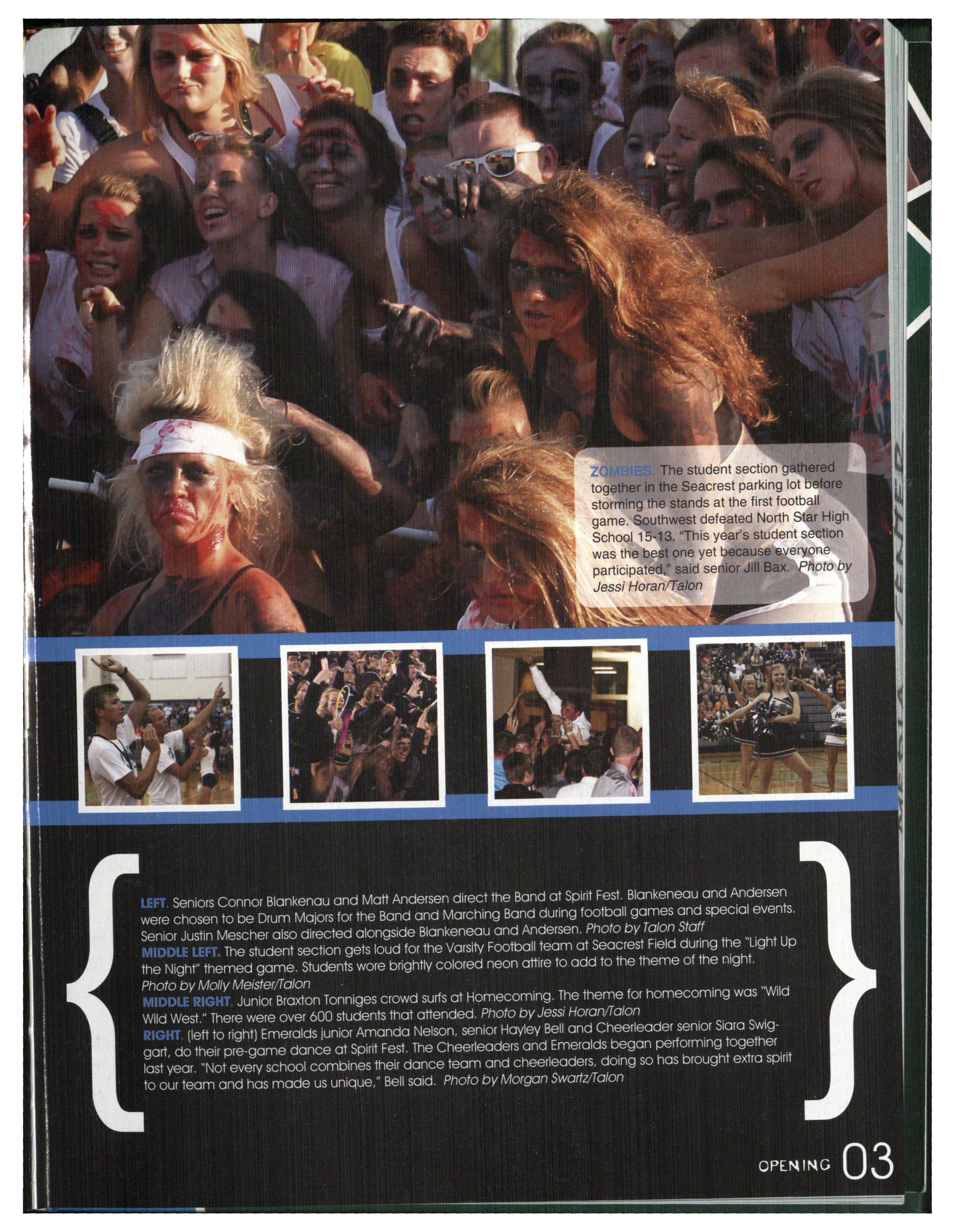 The student section g thered together in the Seacrest parking lot b fore storming the stands at the first football game. Southwest defeated North Star High School 15-13. "This year 's student se tion was the best one yet ecause eryone participat " said se .ior Jill Bax. Jessi Horan/Ta/on