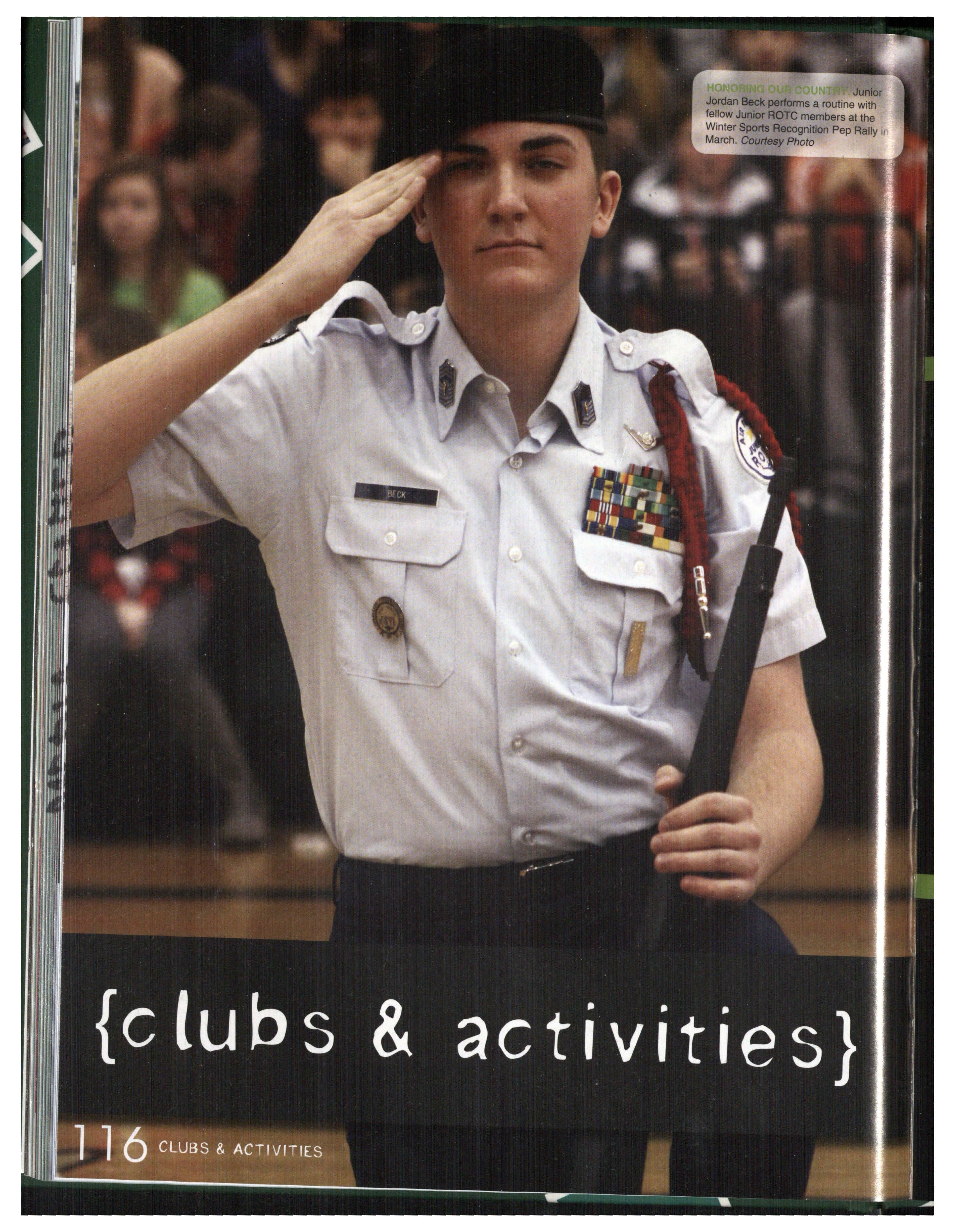 HONORING OUR NATION. Junior Andrew Donald holds the flag during the presentation of the colors at the Fall Pep Rally . Donald was an active member of ROTC Club .