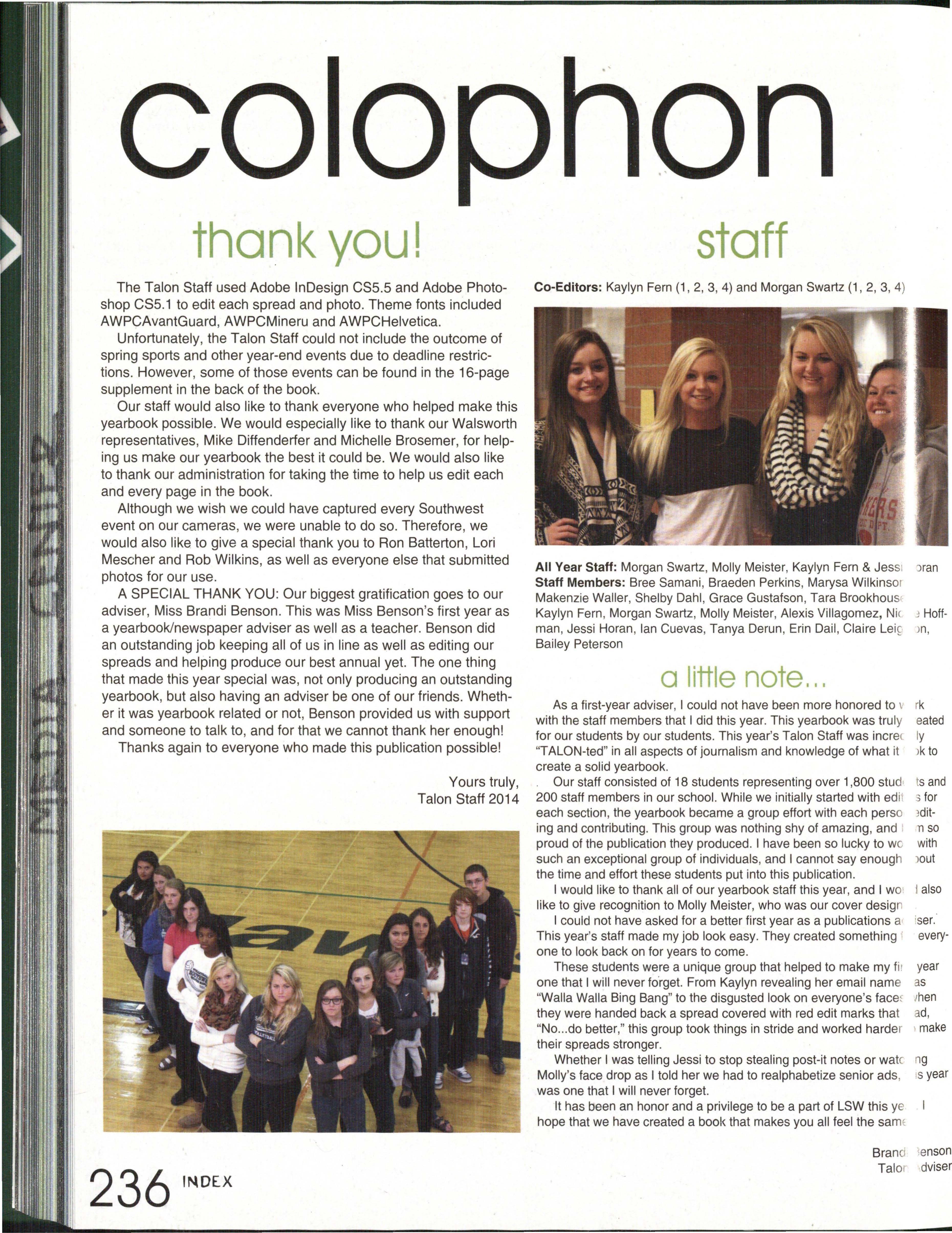 Talon is the name of the yearbook
