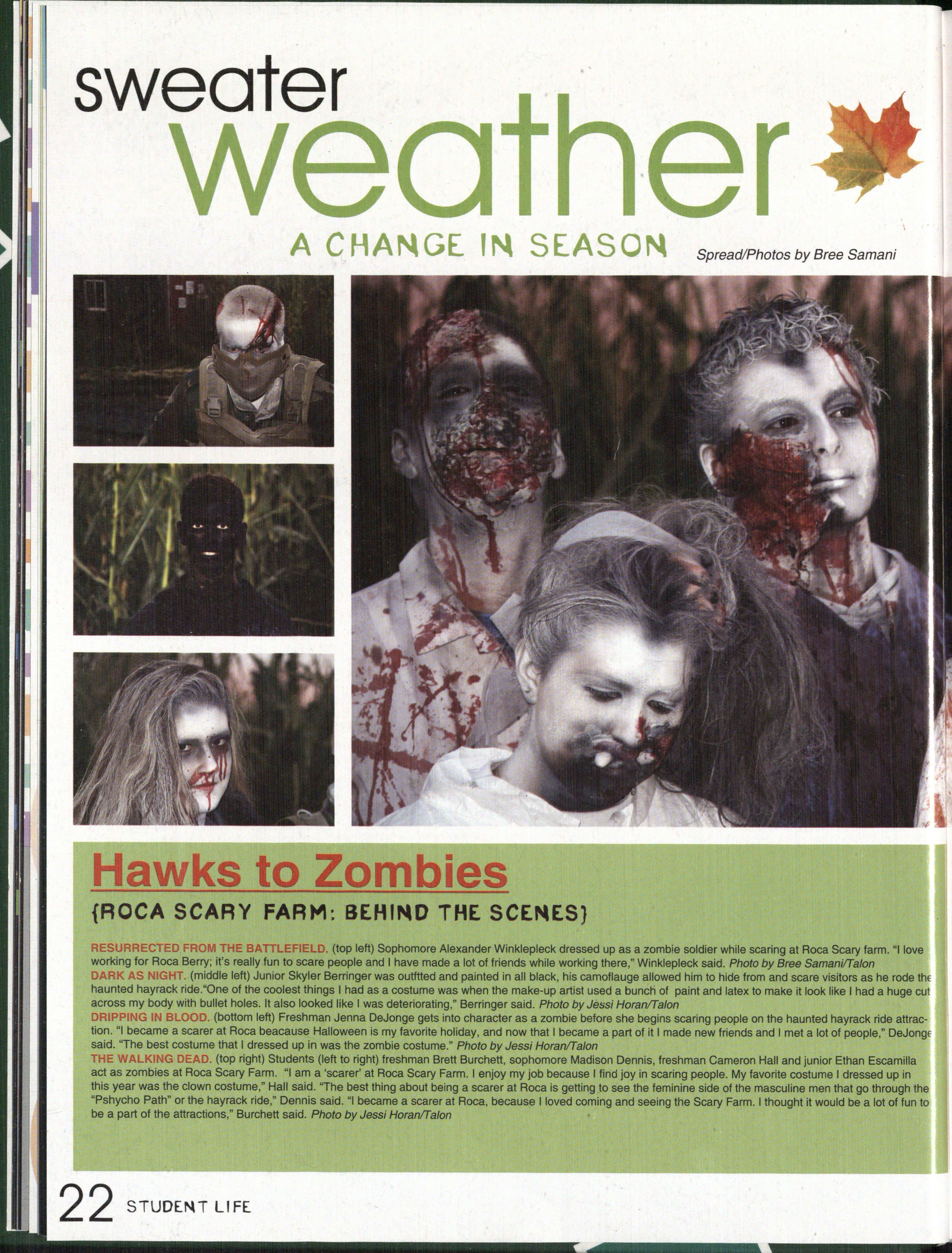 THE LIVING DEAD. Freshman Brett Burchett dresses up with elaborate makeup to be a scarer at Roca Scary Farm during October