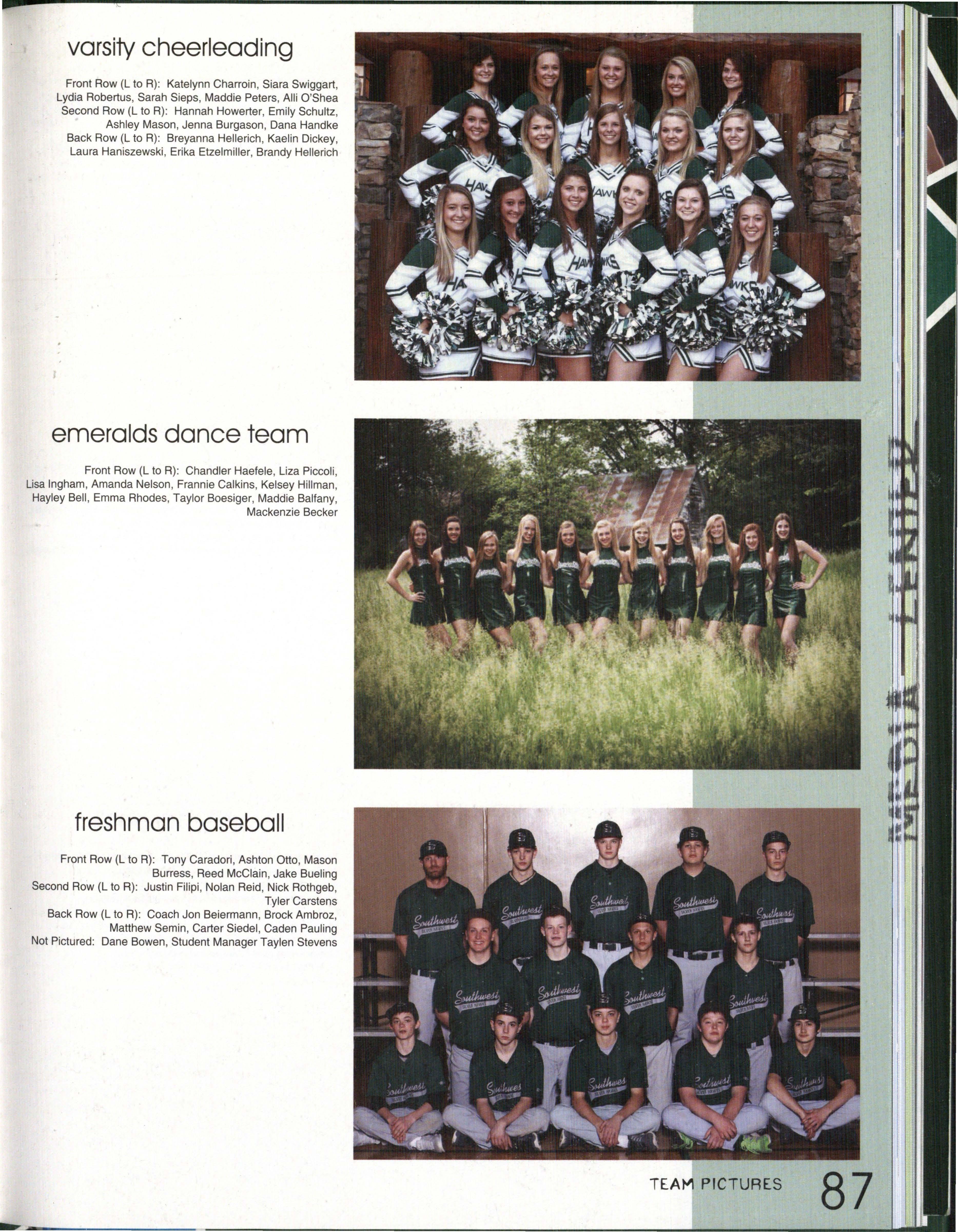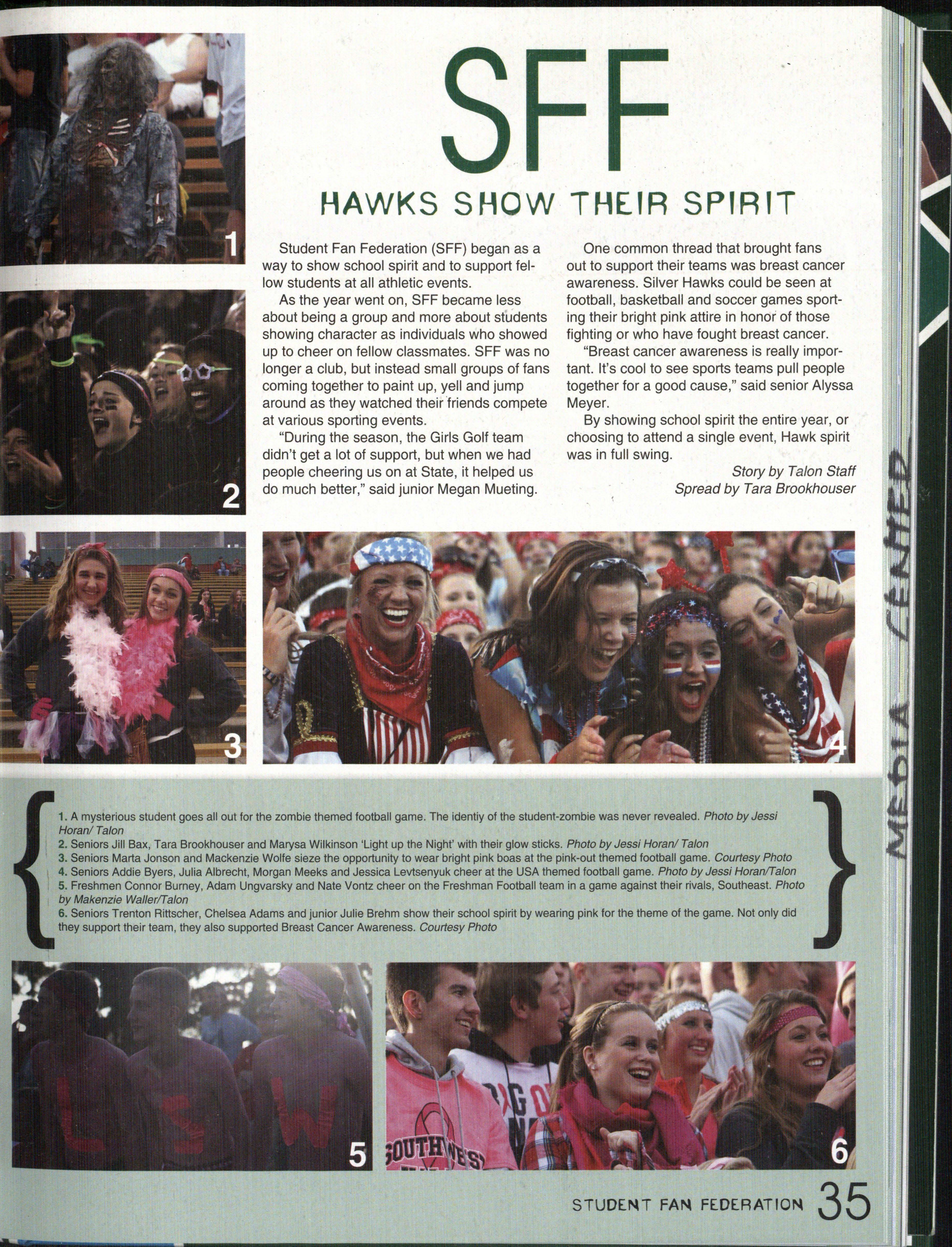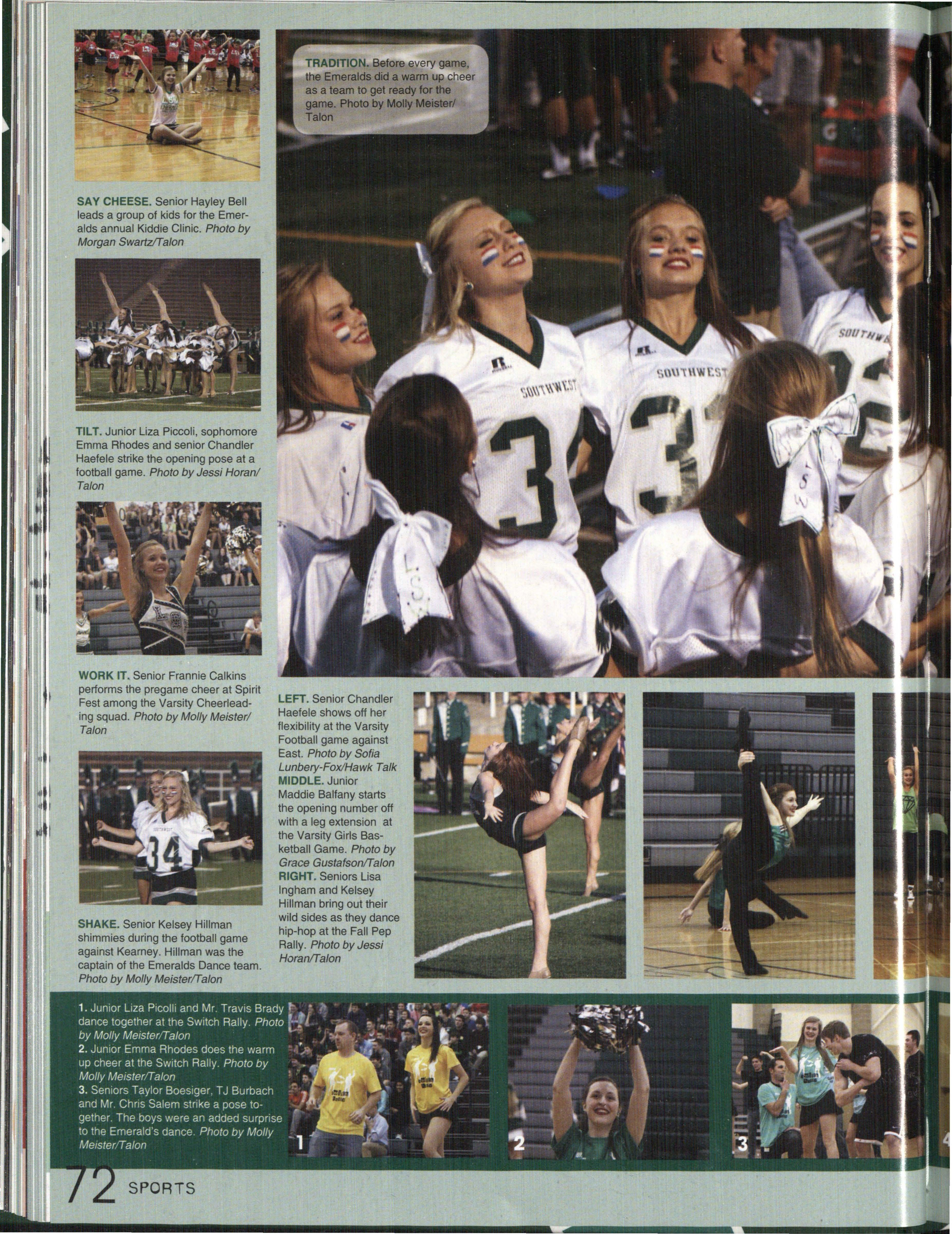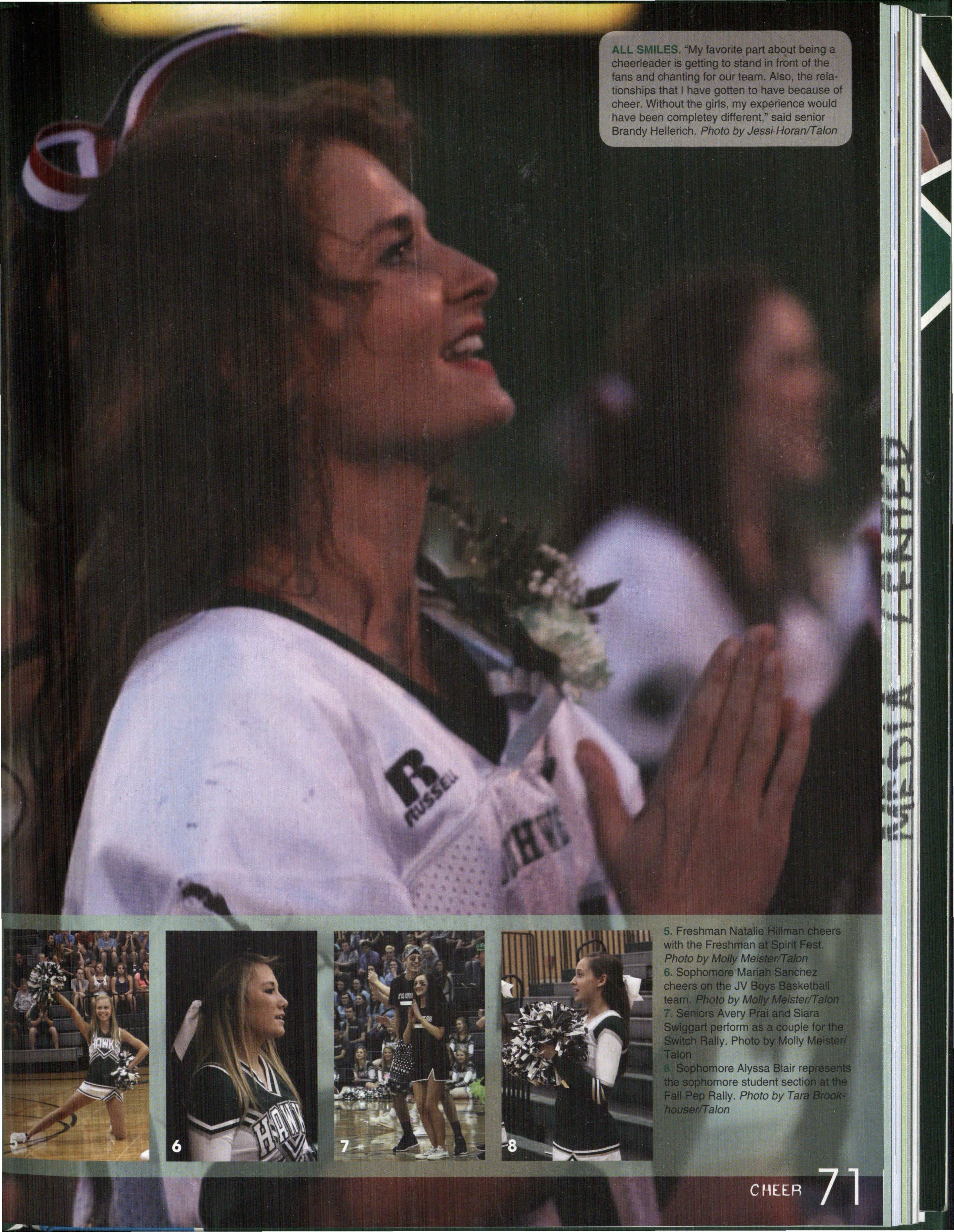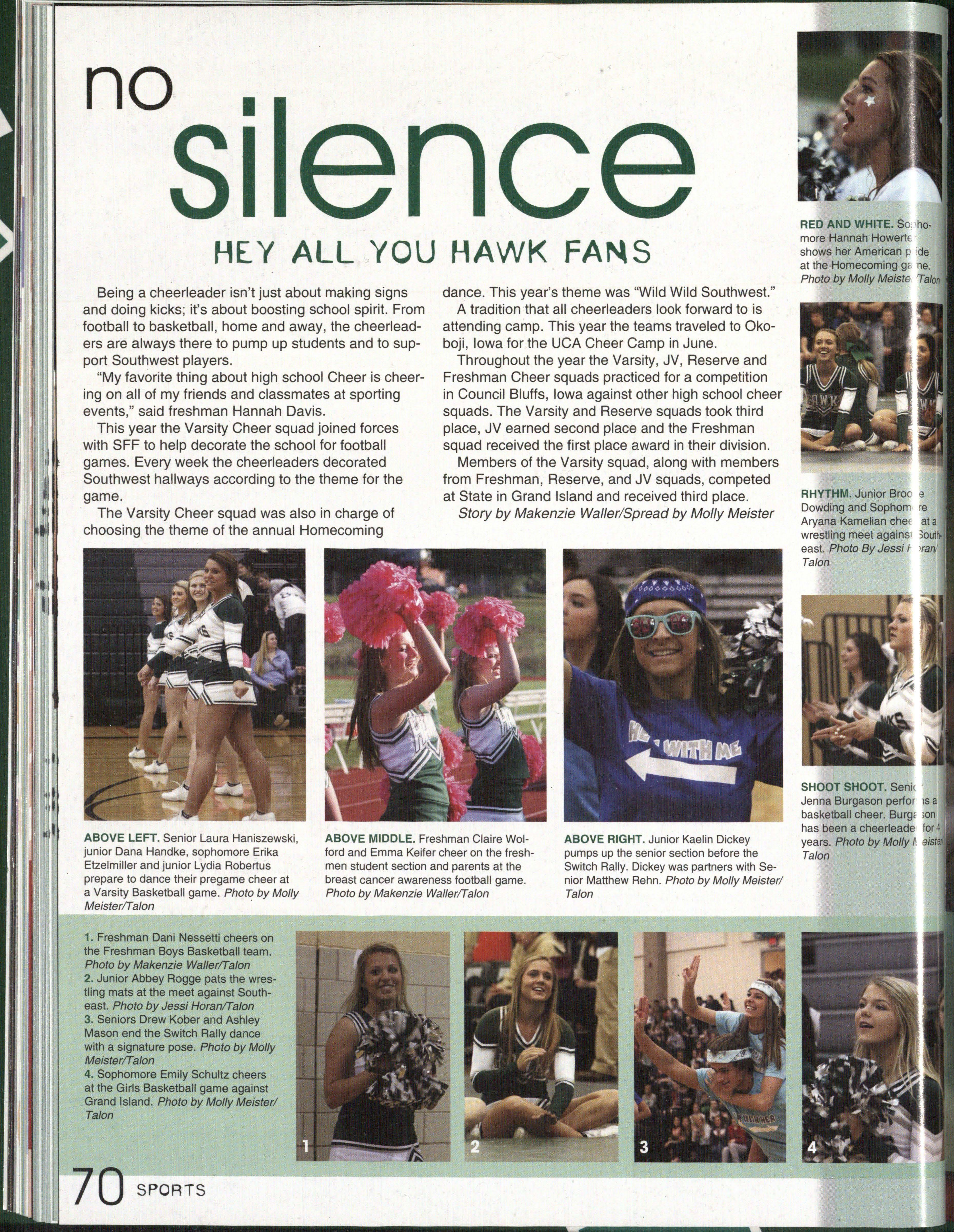 HAWKS TO THE TOP. Sophomore Morgan Means cheers loud at a Reserve Football game . This was Means ' second year being a cheerleader at Southwest. Photo (3y Makenzie Waller/Ta/on