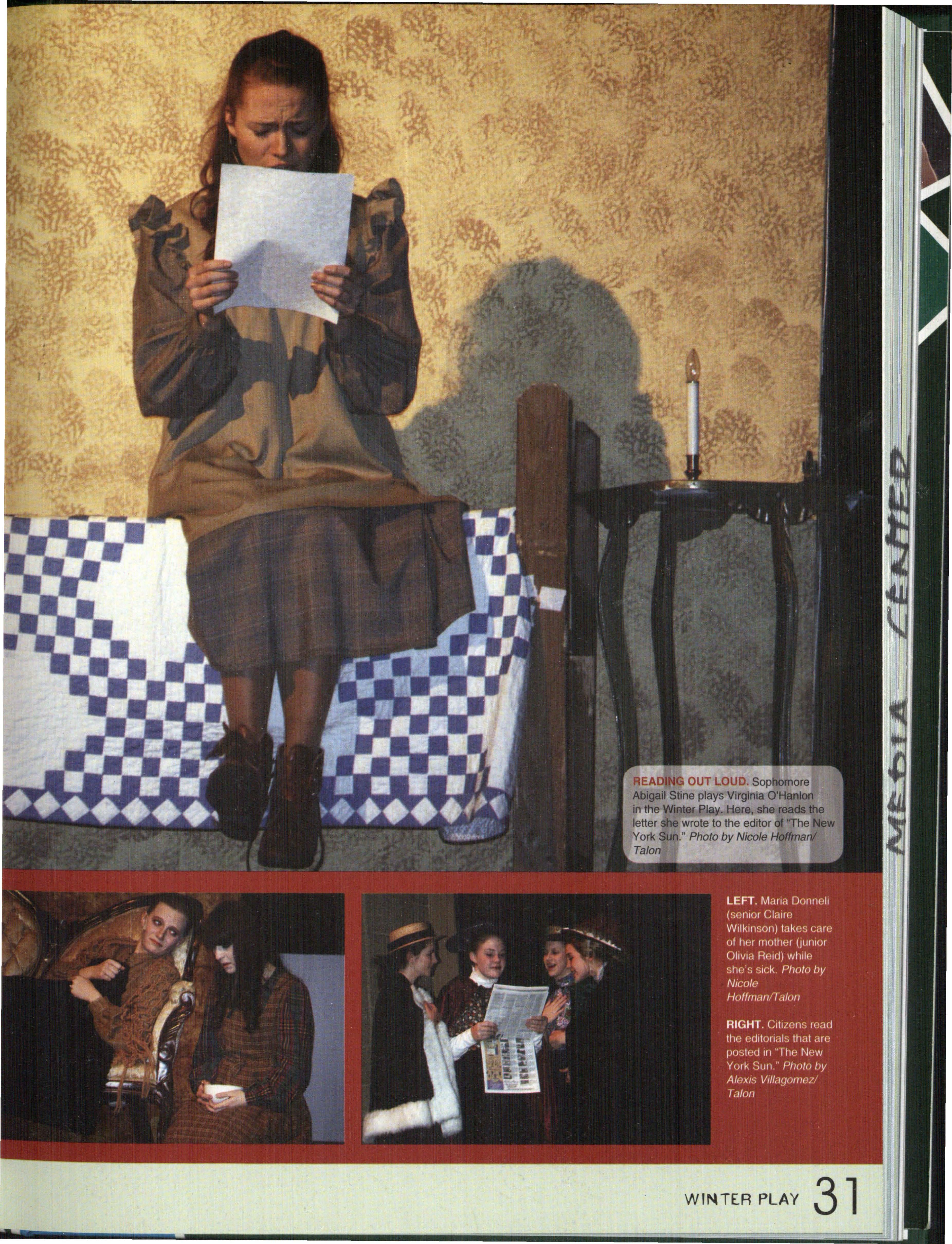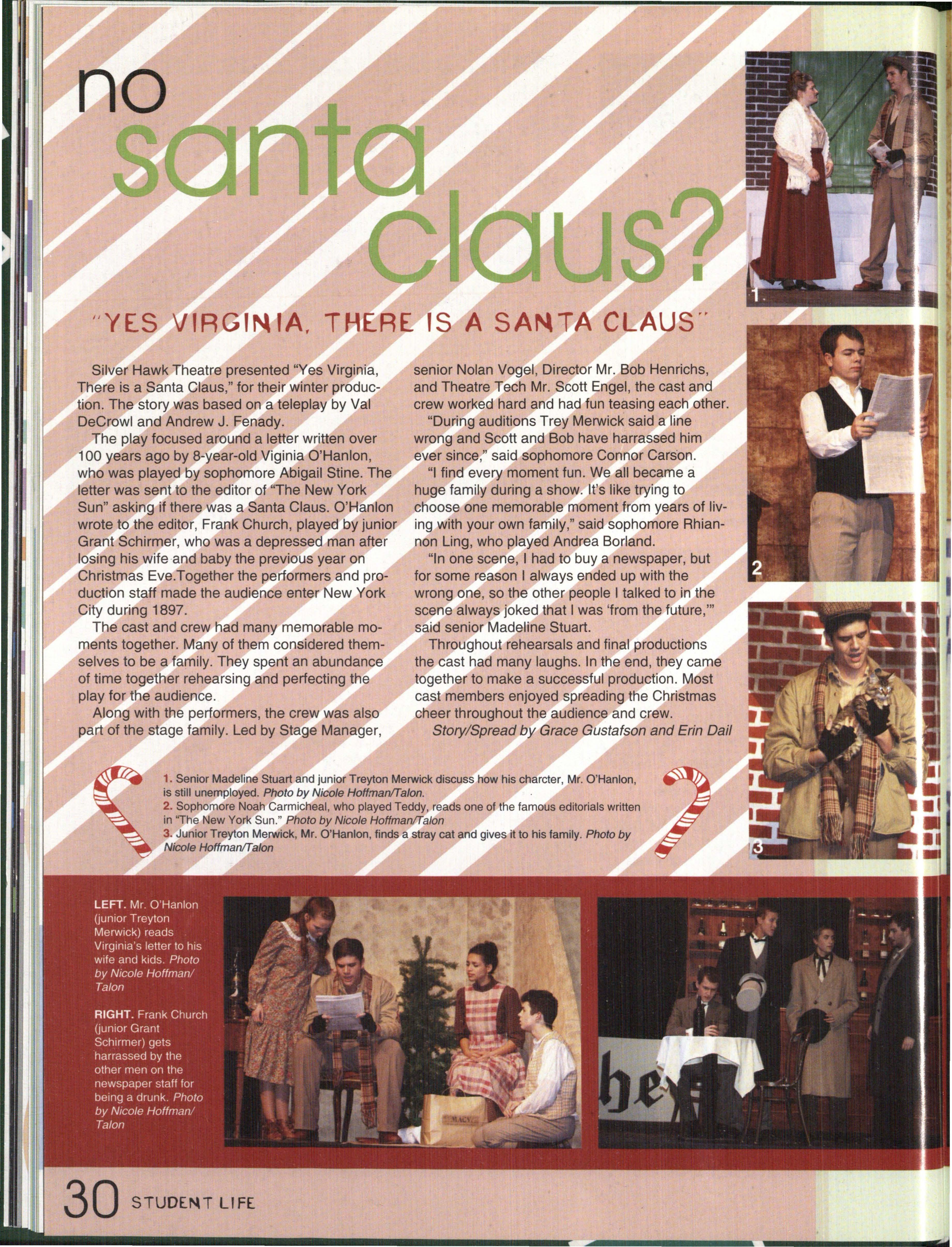 YES, VIRGINIA. Sophomore Abigail Stine and Junior Treyton Merwick were two of the main characters in the Winter Play , " Yes Virginia, There Is a Santa Claus ."