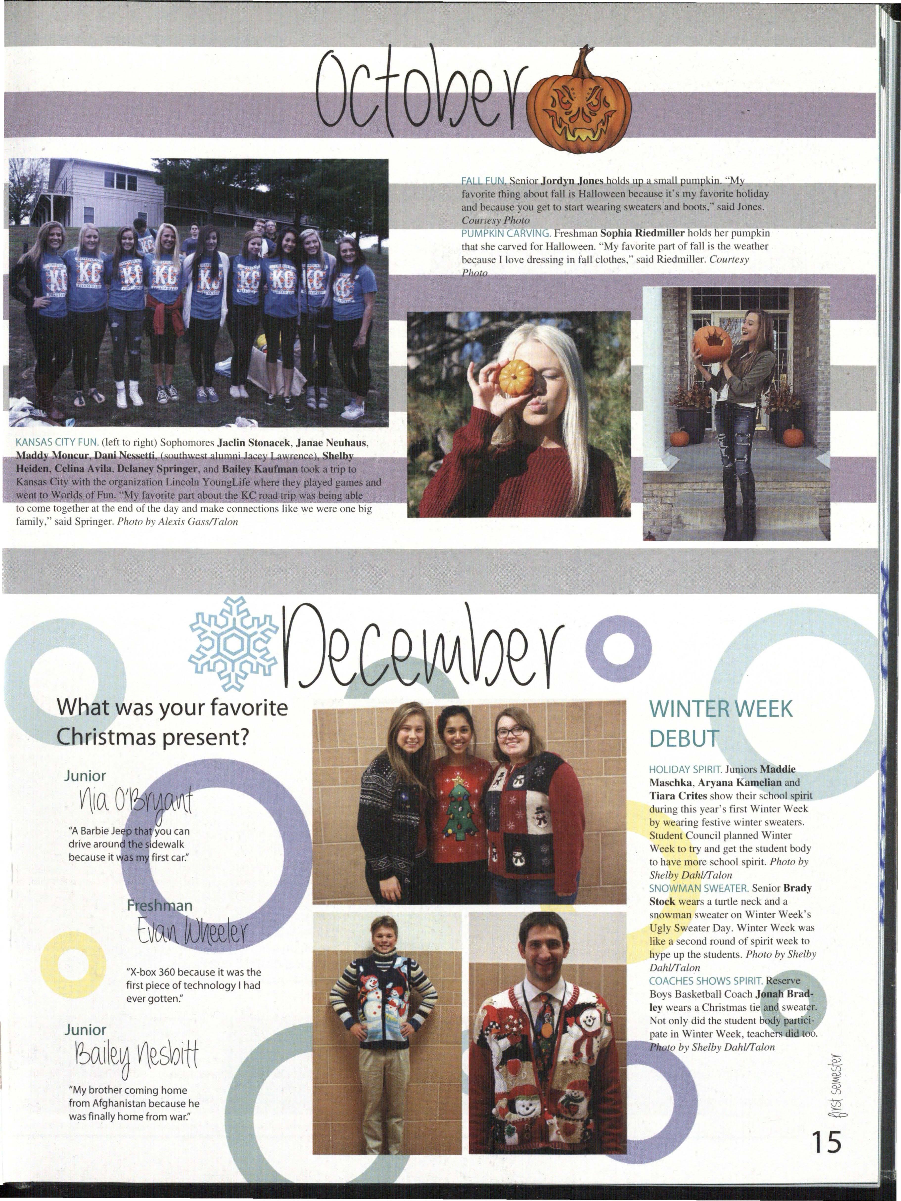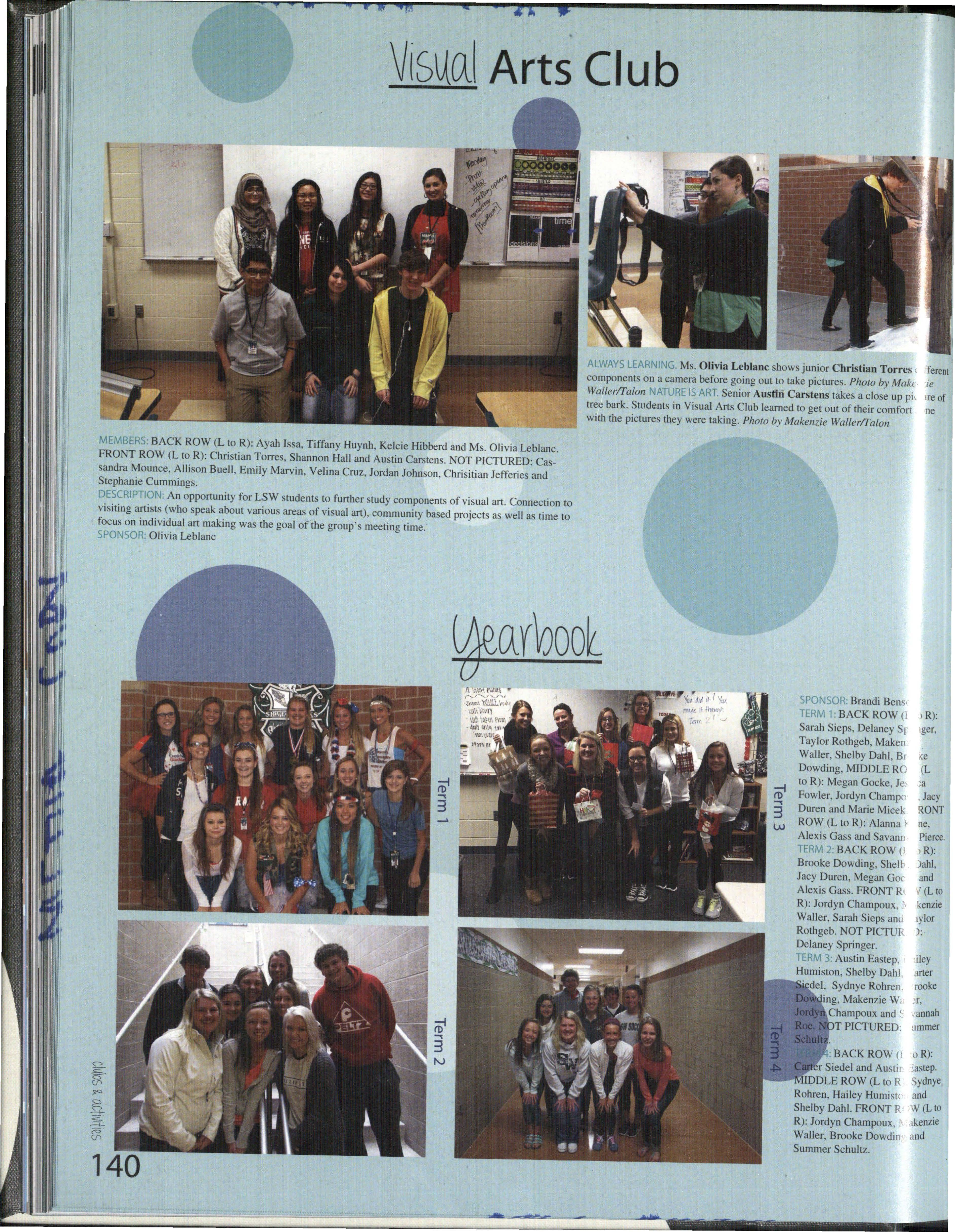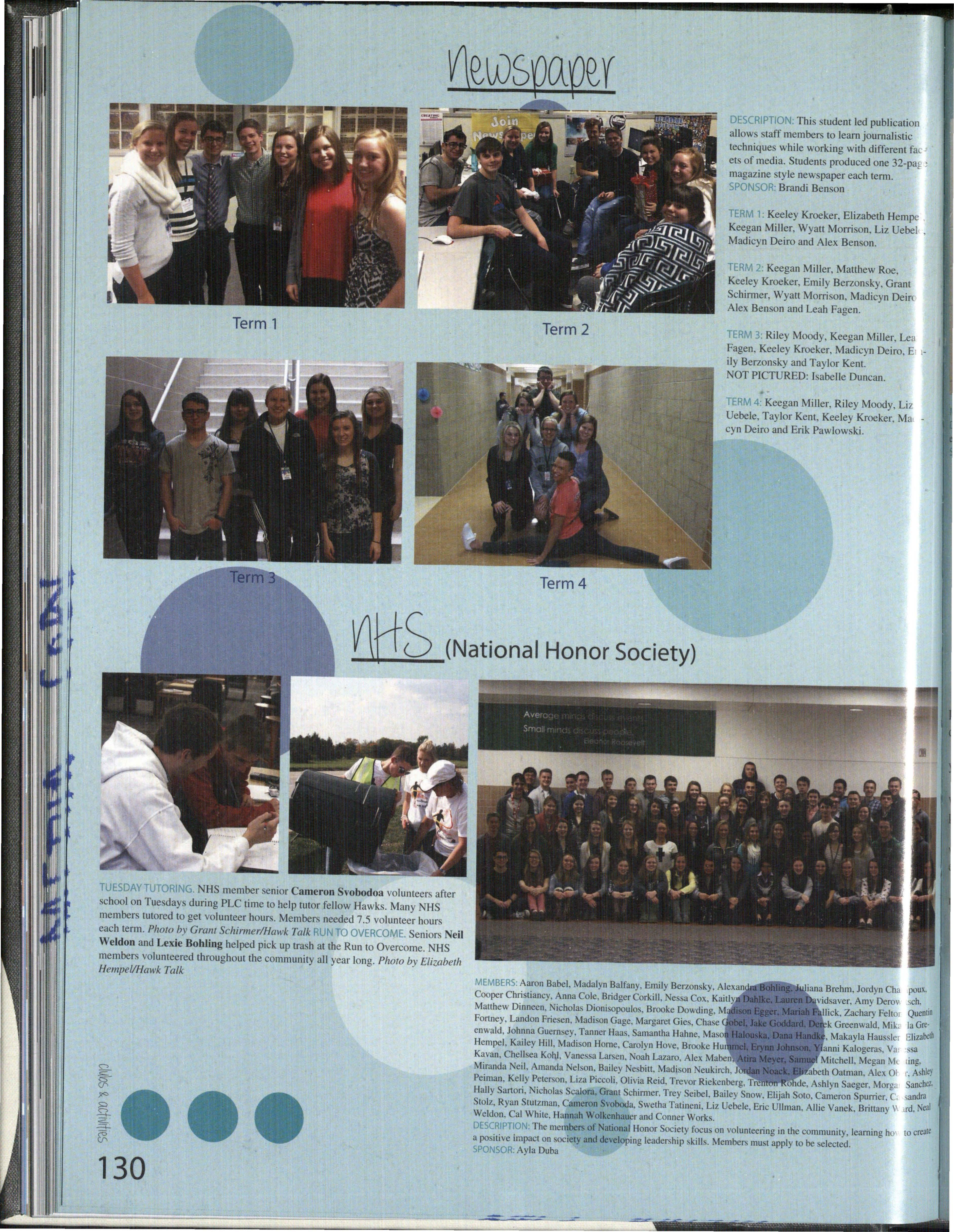 Some yearbook students were only in the class for a term, some for a semester , and a few throughout the whole year. Each person was given pages and was expected to do their absolute best to help create a book that would be remembered for years to come.