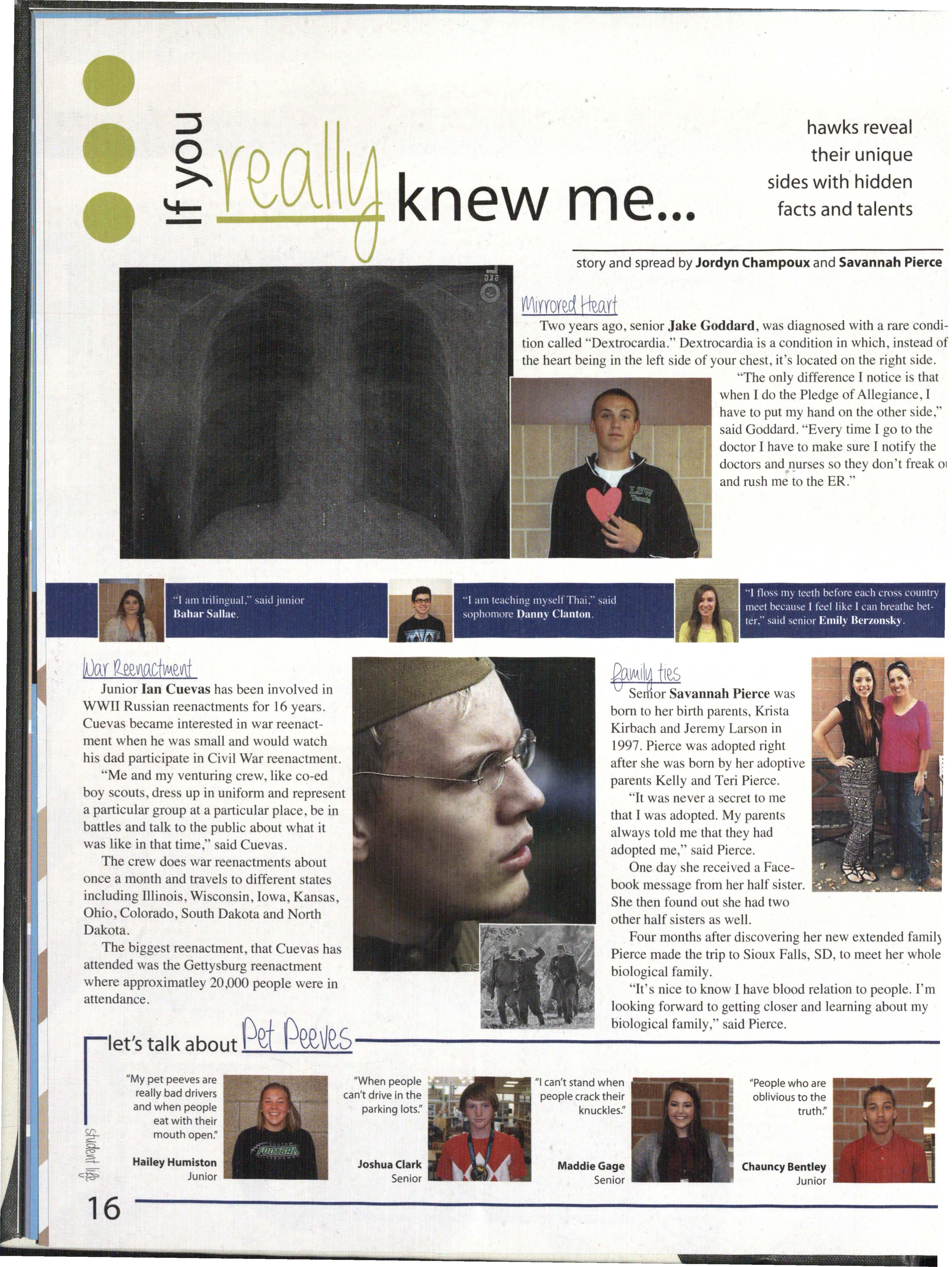 Semor Savannah Pierce was born to her birth parents, Krista Kirbach and Jeremy Larson in 1997. Pierce was adopted right after she was born by her adoptive parents Kelly and Teri Pierce.