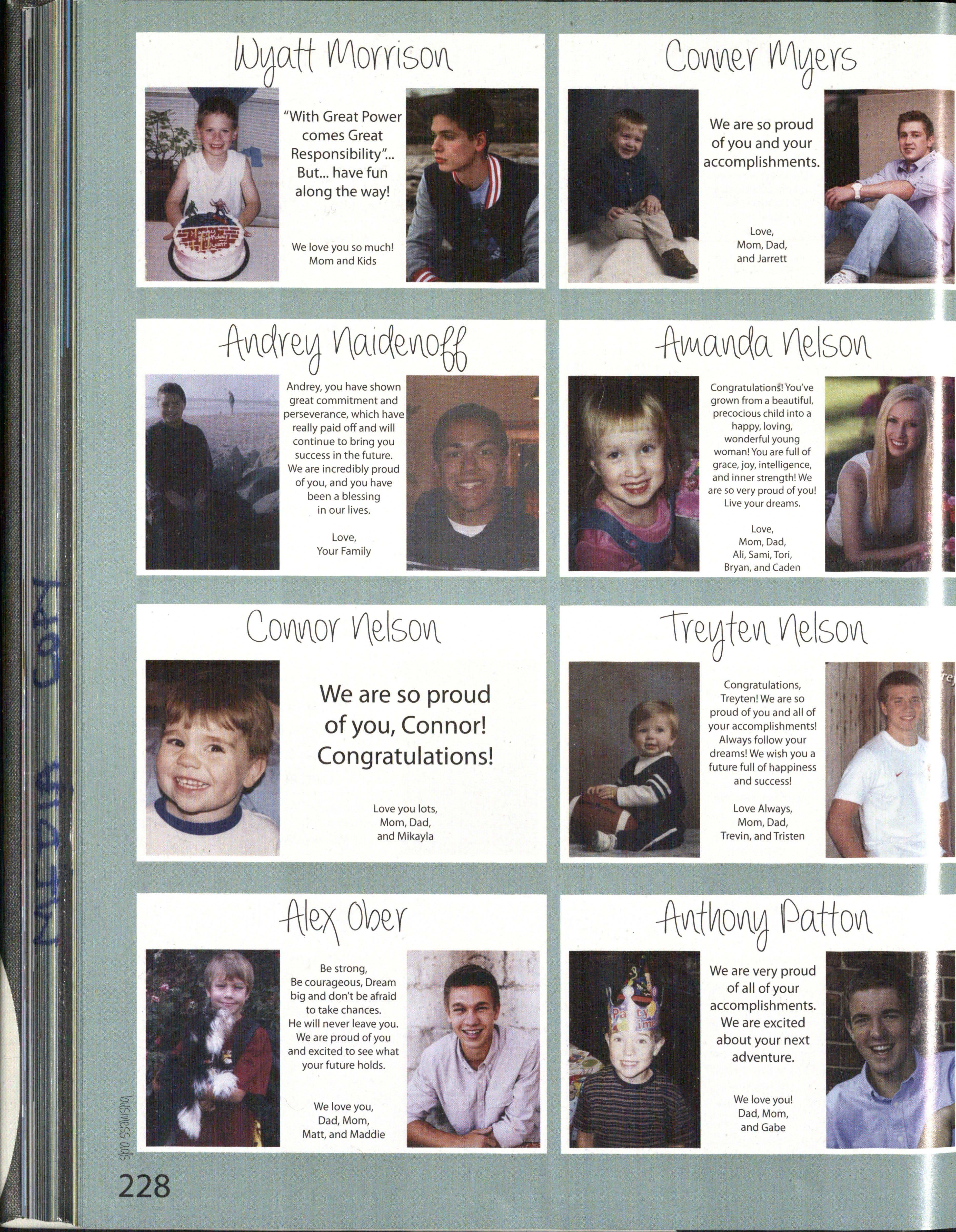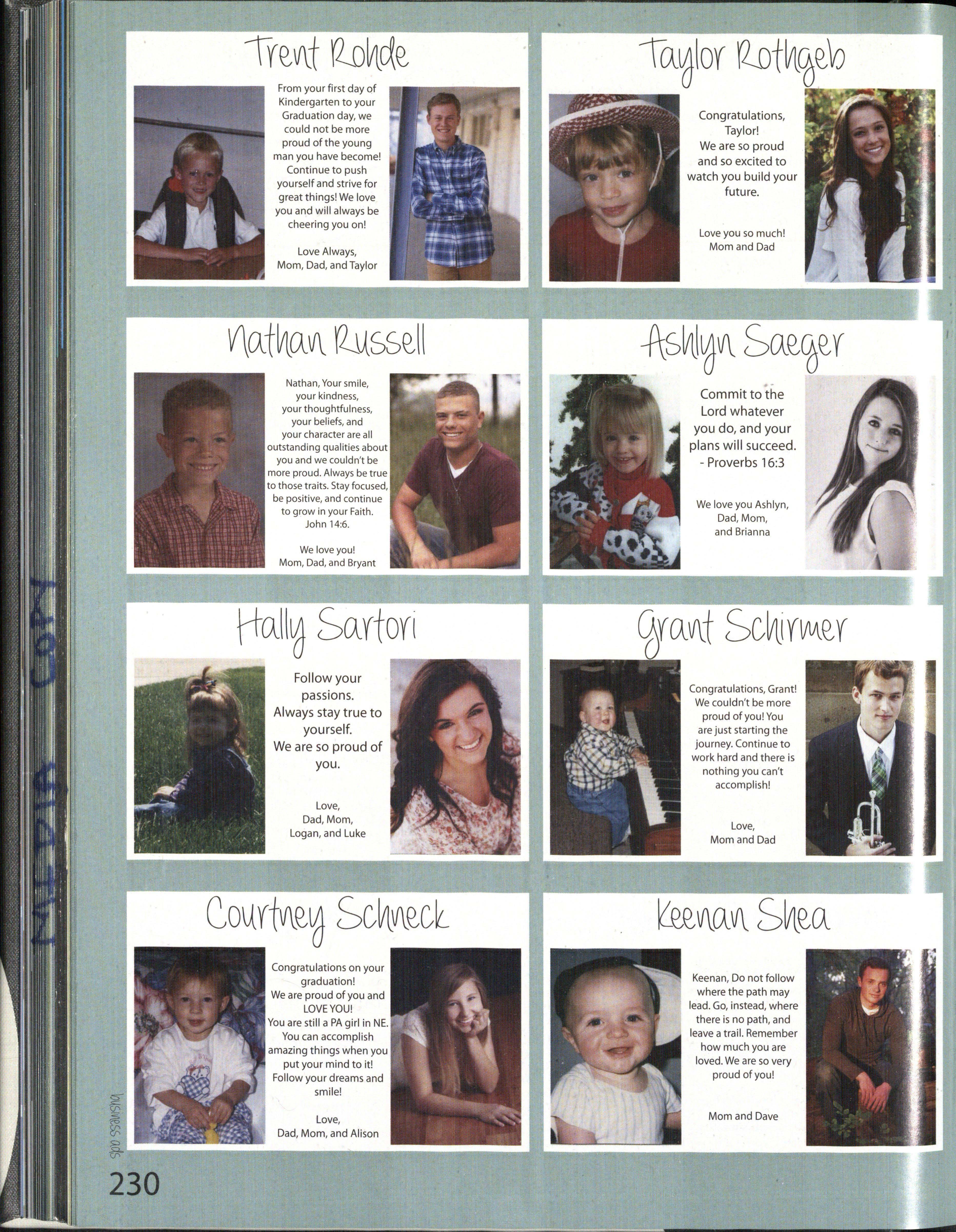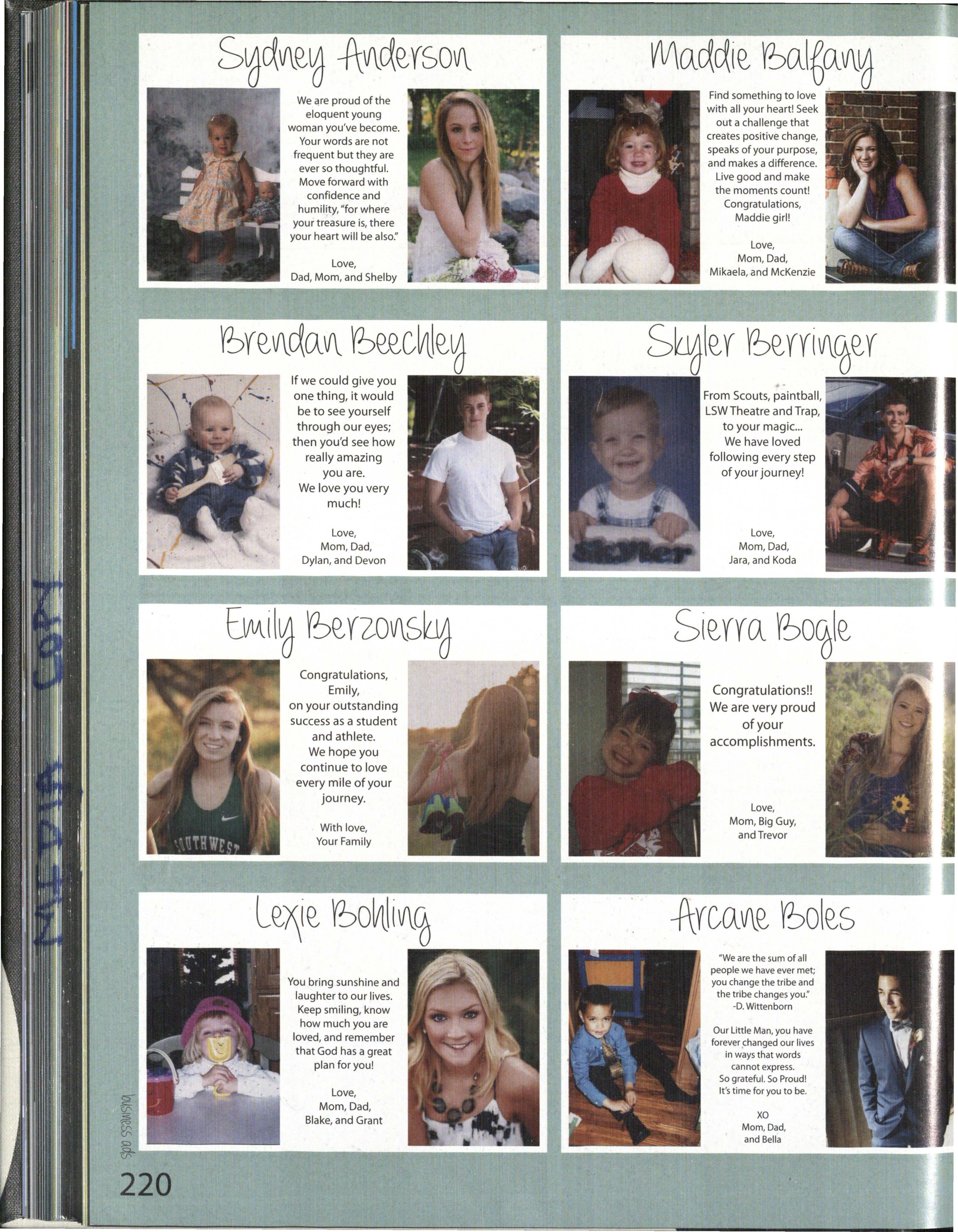 Love, Dad, Mom, Marysa, Bryce, and Aunt Diane