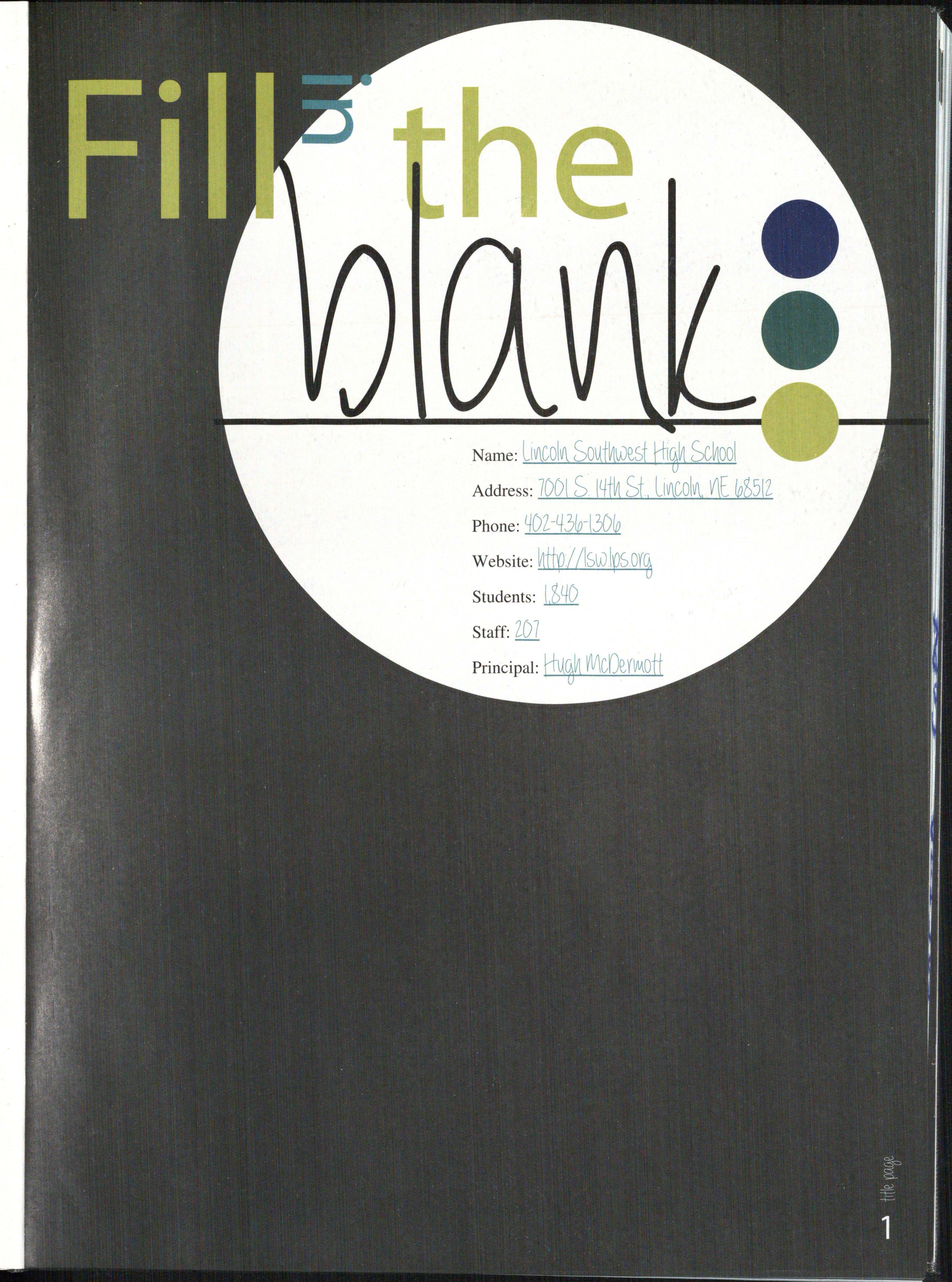 The Term 1 Yearbook class spent day s thinking of a creative theme they c~ul_d portray throu~,hout the whole book. With everyone's help we ~ho~e Fill In The Blank _b~cause each person has a different experience m high school, therefore f1llmg in their own blank. We thou gh t thi s theme would be the best for incorporating every student and giving everyone so mething to relate to.