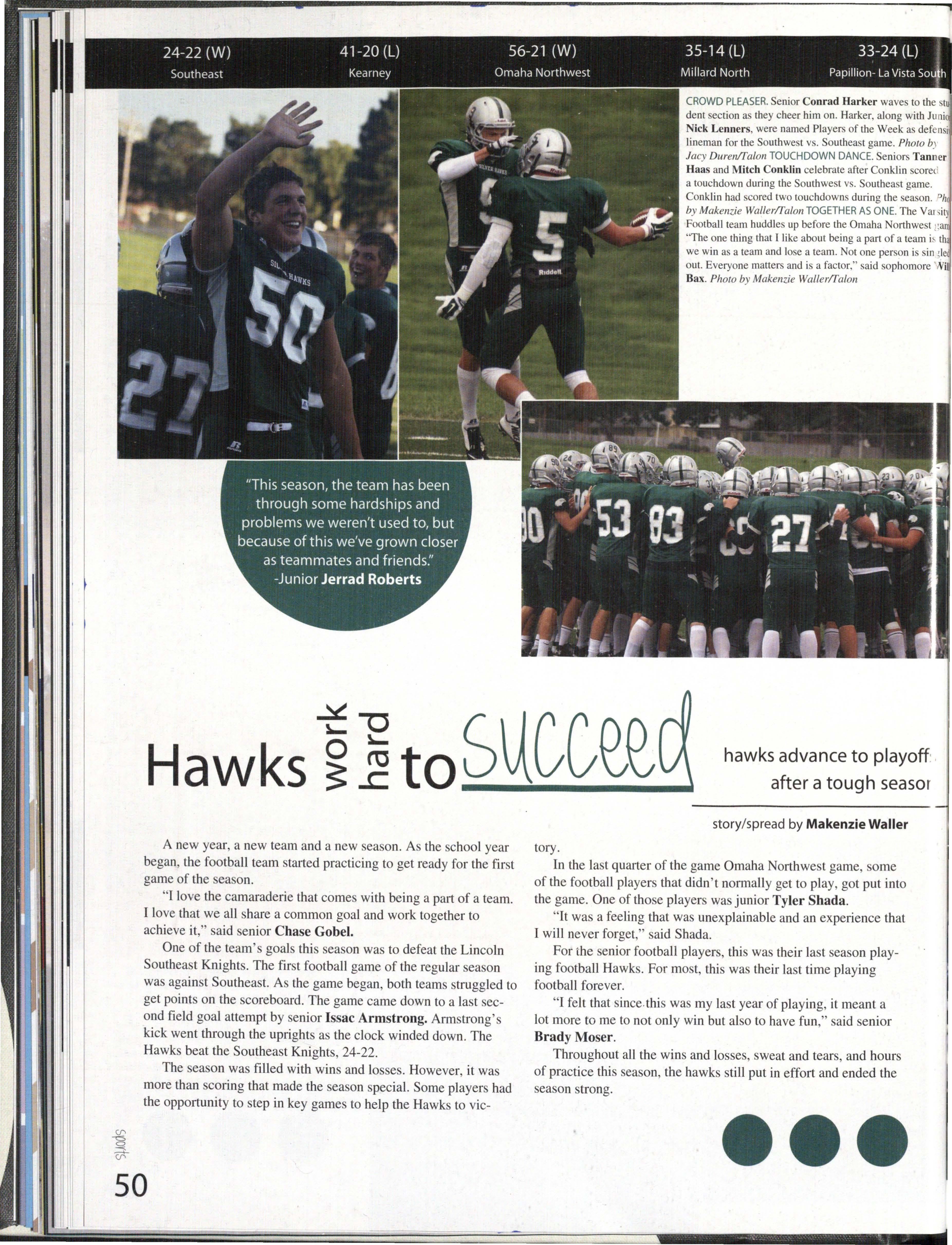 SeV\iOYS left the school different from when they a.rnvect freshman year. UV\cteycla.ss~eV\_ left with the opportunity of V\elO starts and QYOW-lSeS of trying new things in years to come.