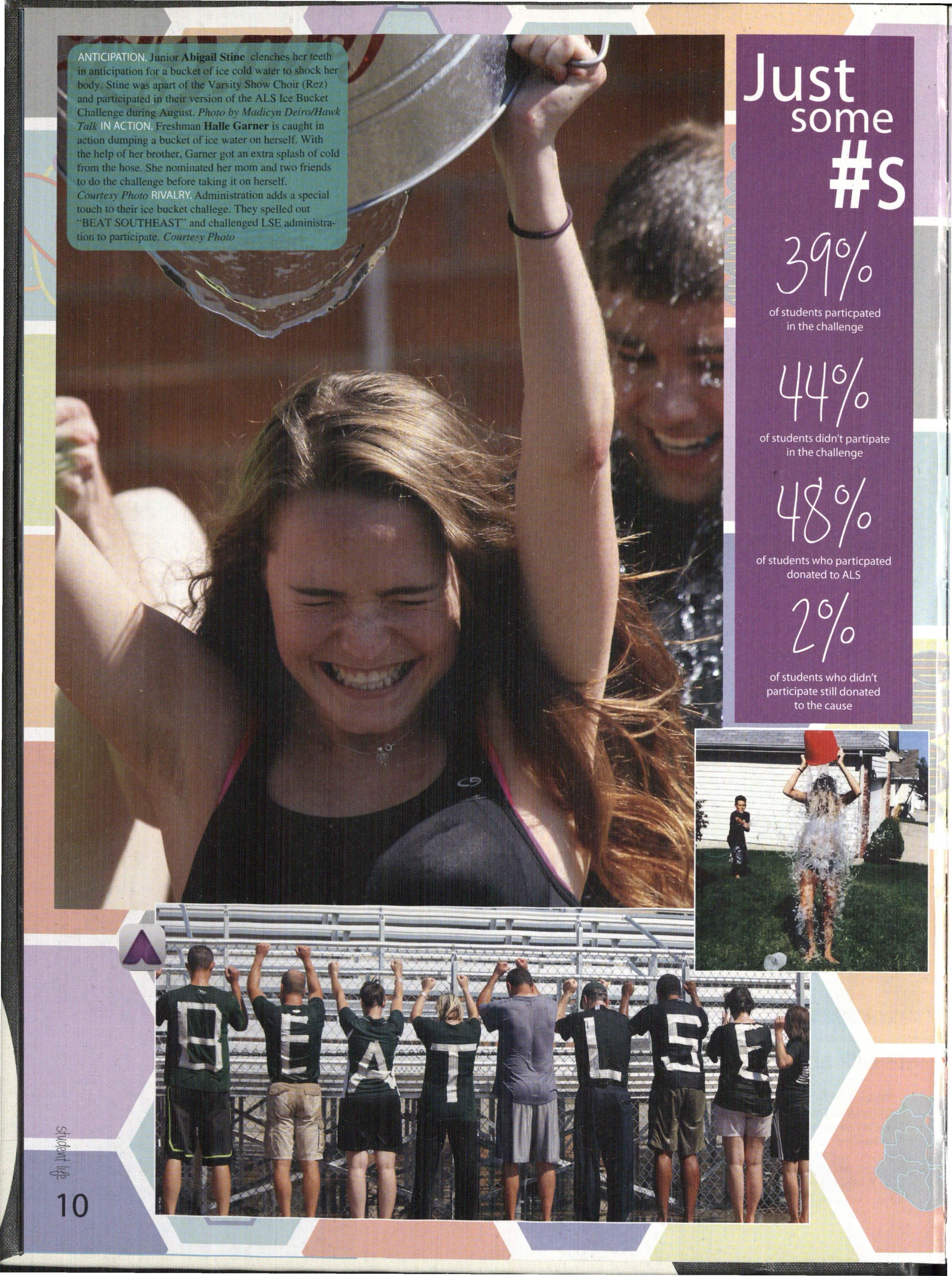 Courtesy Photo • • • Admini tration adds a ·pecial touch to their ice bucket challege. They spelled out ..BEAT SOUTHEAST' and challenged LSE administration to participate. Courte lY Photo